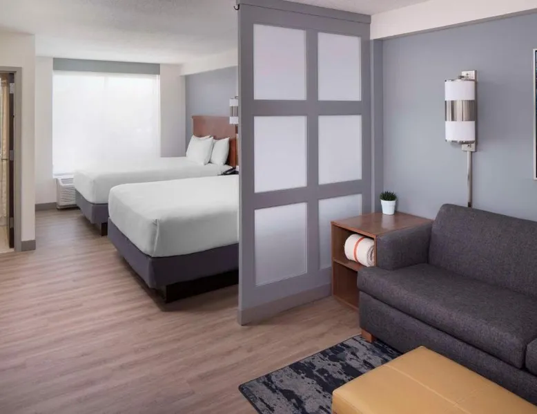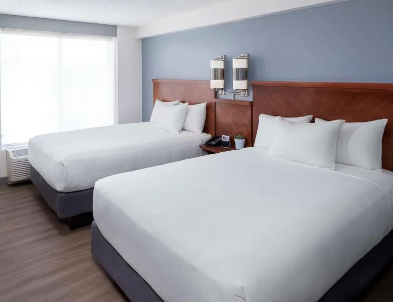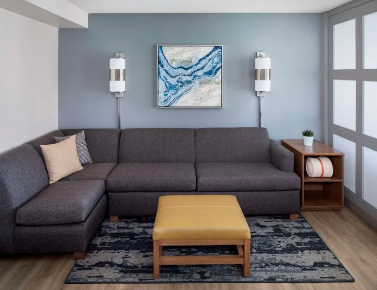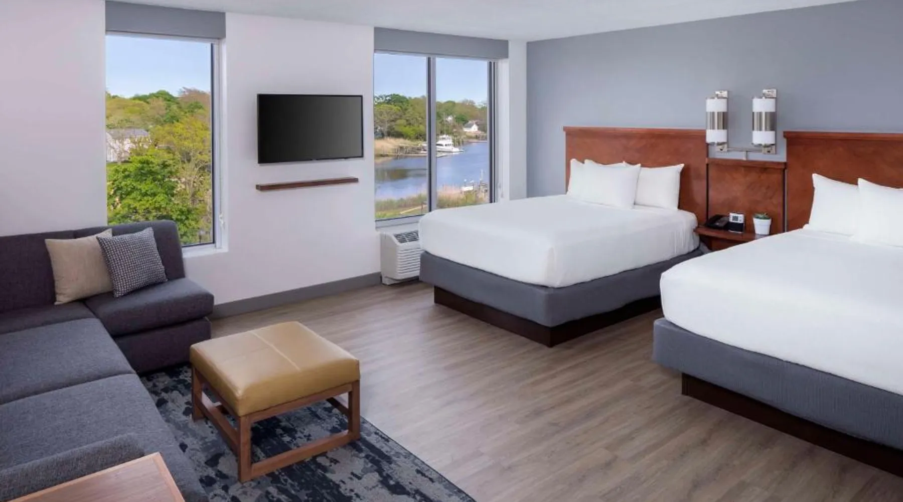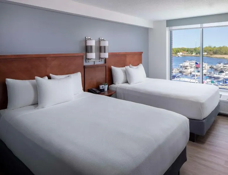 Located on the Peconic River, this hotel features both indoor and outdoor pools and a full service marina. It is directly adjacent to the Long Island Aquarium and Exhibition Center. The Hyatt Place Long Island East End features contemporary guest rooms with a 42-inch flat-screen TV, refrigerator, and sofa bed. Select rooms offer views of the harbor. Starbucks coffee is available at the on-site cafe, while the Guest Kitchen offers American fare, evening beer and wine. Guests can use the 24-hour state-of-the-art fitness center, as well as the business center. Free Wi-Fi is available throughout the Long Island East Hyatt Place. Westhampton Beach is 9.4 mi away. The Tanger Factory Outlet Center is 10 minutes’ drive from the hotel. This air-conditioned quadruple room includes a flat-screen TV with cable channels and a private bathroom. The unit offers 1 bed.