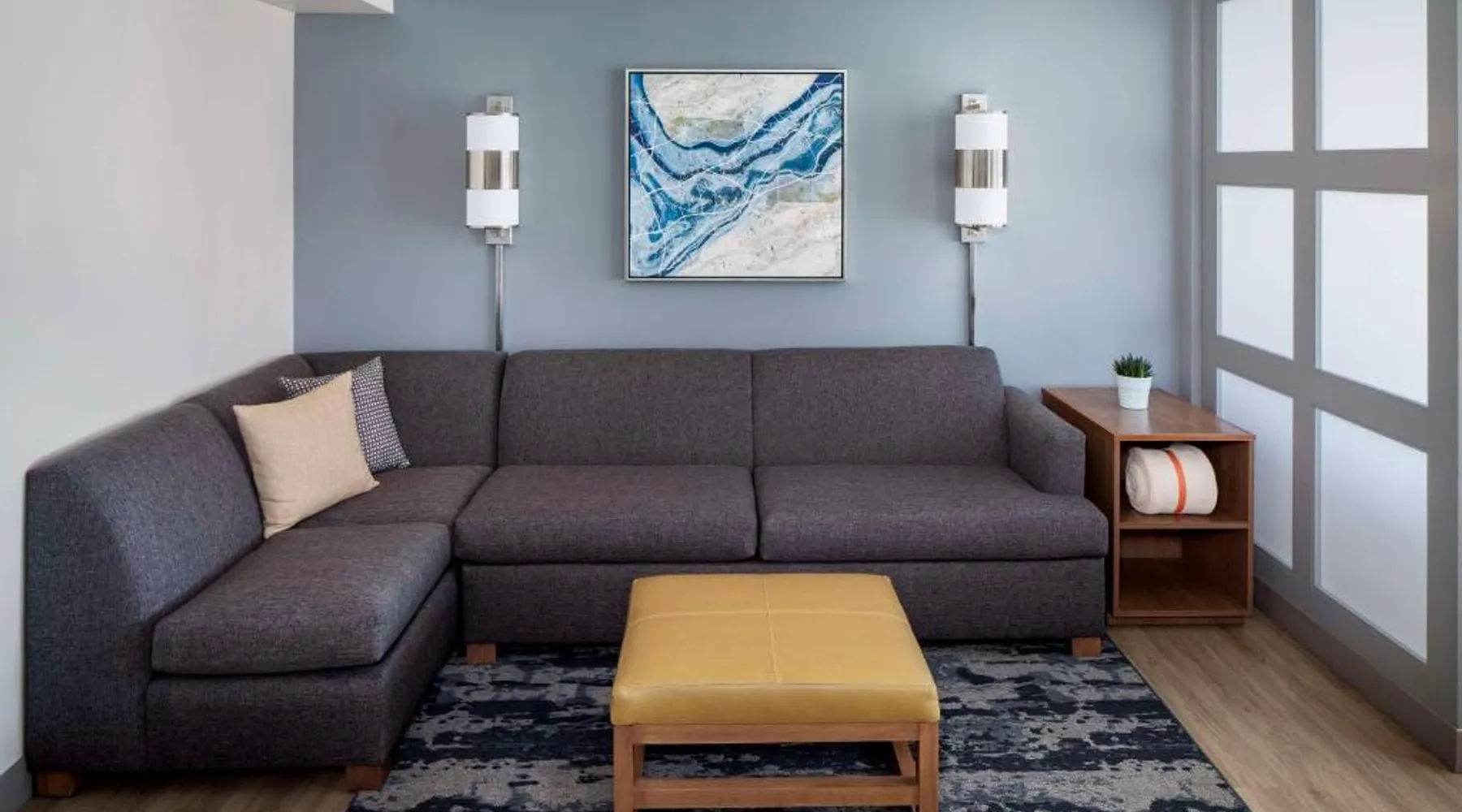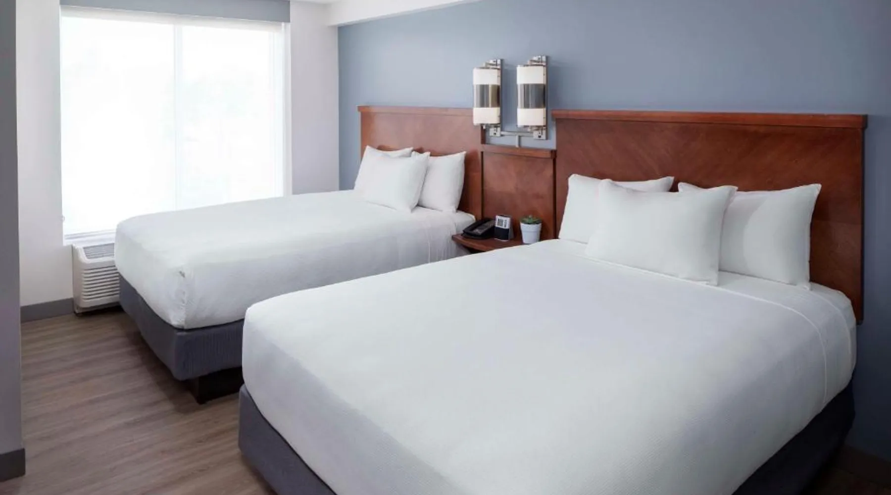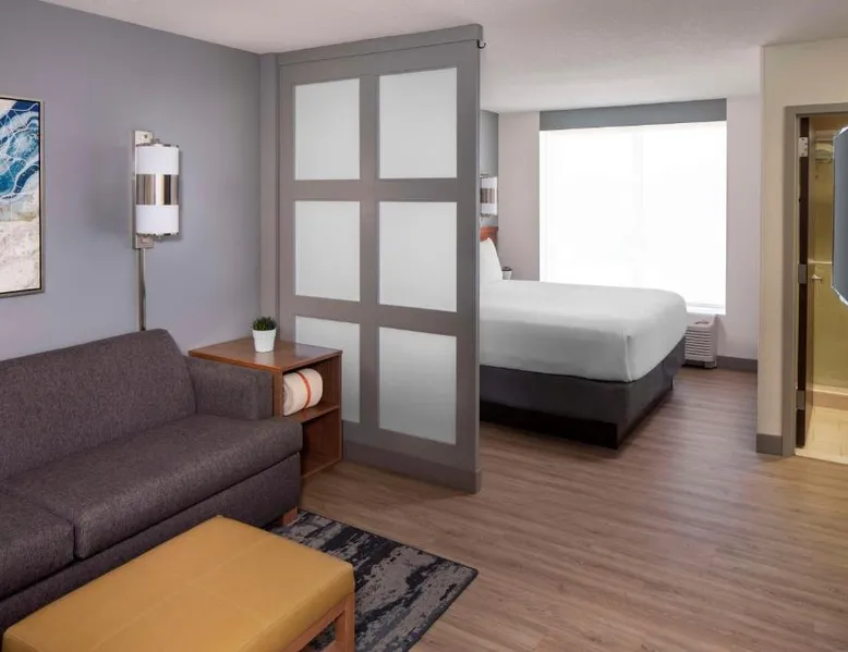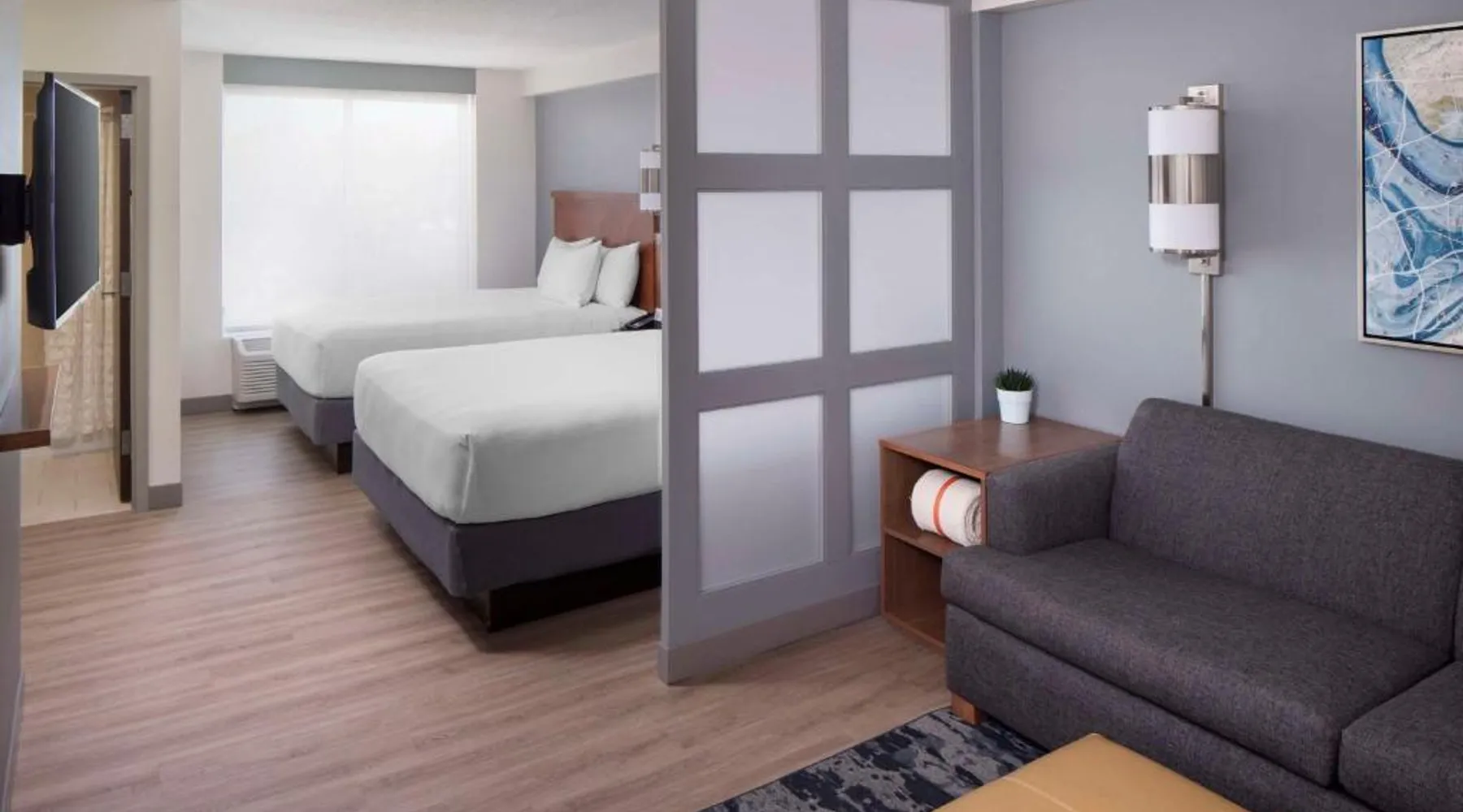 Located on the Peconic River, this hotel features both indoor and outdoor pools and a full service marina. It is directly adjacent to the Long Island Aquarium and Exhibition Center. The Hyatt Place Long Island East End features contemporary guest rooms with a 42-inch flat-screen TV, refrigerator, and sofa bed. Select rooms offer views of the harbor. Starbucks coffee is available at the on-site cafe, while the Guest Kitchen offers American fare, evening beer and wine. Guests can use the 24-hour state-of-the-art fitness center, as well as the business center. Free Wi-Fi is available throughout the Long Island East Hyatt Place. Westhampton Beach is 9.4 mi away. The Tanger Factory Outlet Center is 10 minutes’ drive from the hotel. This air-conditioned quadruple room includes a flat-screen TV with cable channels and a private bathroom. The unit offers 1 bed.