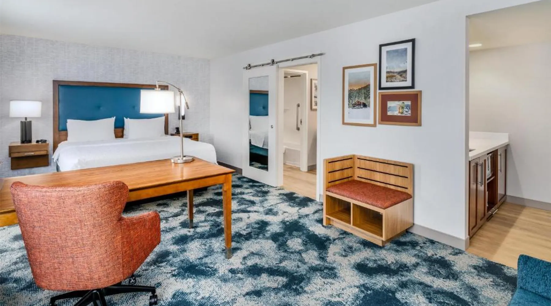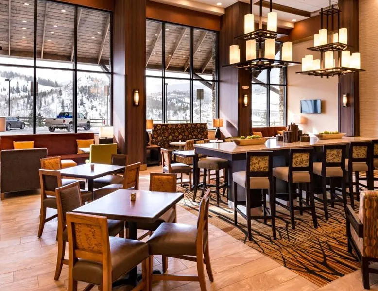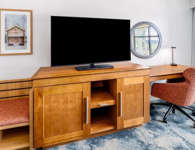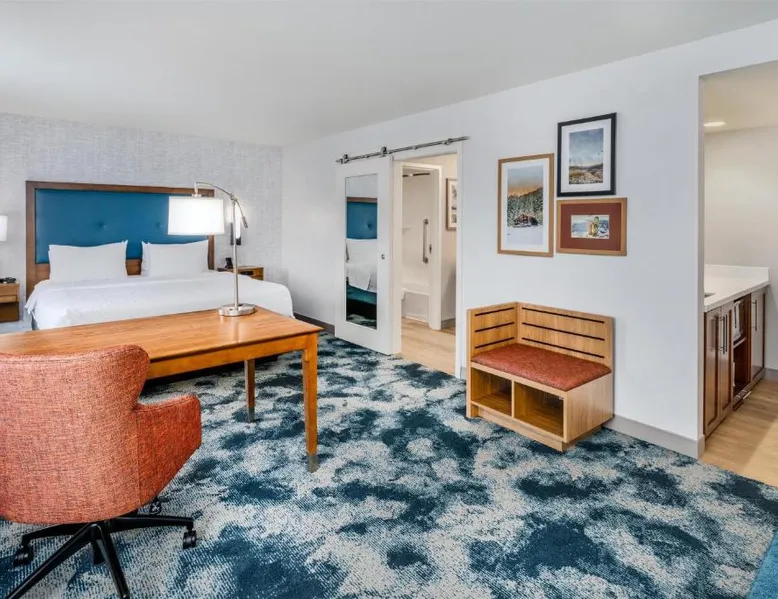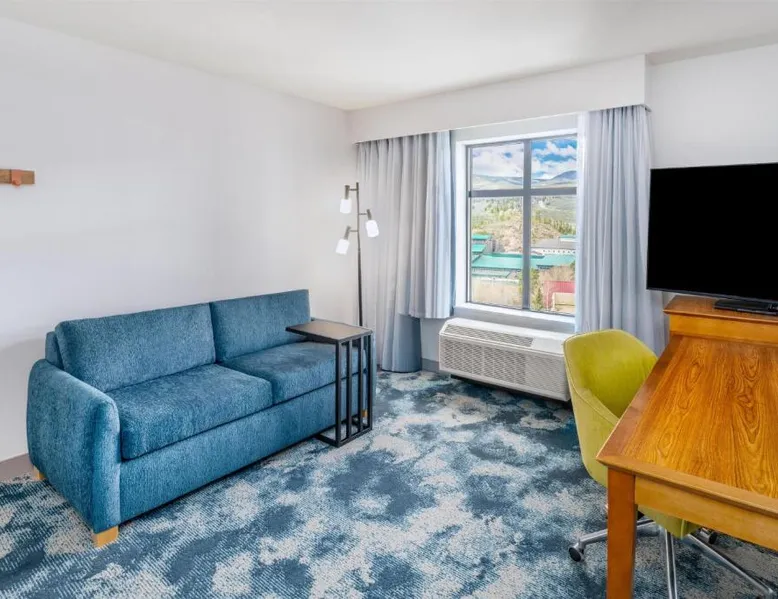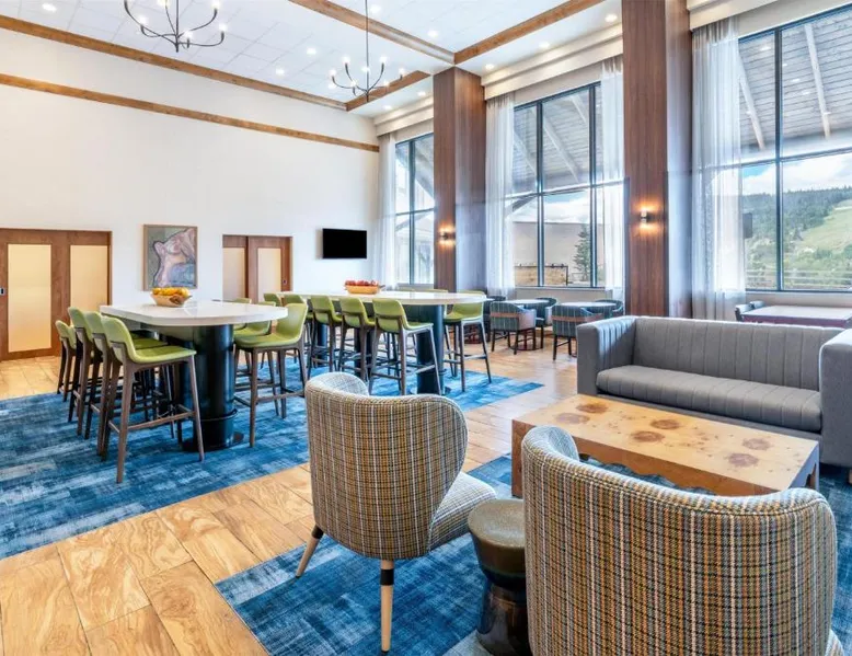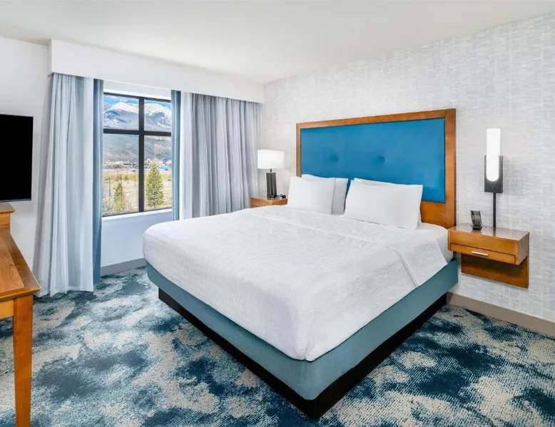 Comfortable Accommodations: Hampton Inn & Suites Silverthorne in Silverthorne offers family rooms with free WiFi, a fitness center, indoor swimming pool, and a hot tub. Guests can relax in the lounge or outdoor fireplace. Convenient Facilities: The hotel features a minimarket, daily housekeeping, electric vehicle charging, bike hire, and ski storage. Additional amenities include a fitness room, elevator, outdoor seating area, and full-day security. Dining Options: A continental, American, and buffet breakfast with warm dishes is served daily. The property also offers a 24-hour front desk, paid on-site parking, and a variety of activities such as fishing, skiing, hiking, and cycling. Nearby Attractions: Located 64 mi from Eagle County Regional Airport, the hotel is close to Frisco Historic Park (5.6 mi), Vail Nordic Center and Vail Golf Club (29 mi each). Highly rated for its convenient location, attentive staff, and breakfast. This studio includes a refrigerator, wet bar and coffeemaker. A flat-screen TV, hairdryer and ironing facilities are also provided.