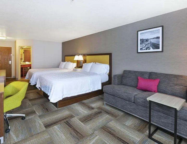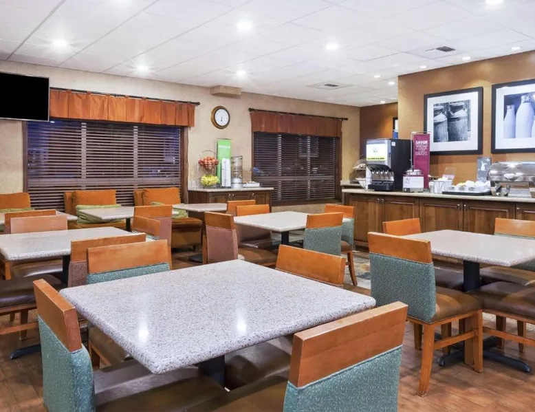 Historic Setting: Hampton Inn Idaho Falls is located in Idaho Falls, housed in a historic building. The property offers a unique and charming environment for guests. Comfortable Accommodations: Rooms feature spacious layouts, comfortable beds, and modern amenities such as a tea and coffee maker, hairdryer, refrigerator, microwave, shower, and TV. Guests appreciate the room comfort and attentive staff. Exceptional Facilities: The hotel includes an indoor swimming pool, hot tub, fitness room, lounge, and business area. Free on-site parking is available for guests. Delicious Breakfast: A continental buffet breakfast is served daily, offering warm dishes, fresh pastries, and juice. Guests highly rate the breakfast and attentive service. Local Attractions: Located 21 mi from Idaho Falls Regional Airport and 29 mi from Eliza R. Snow Performing Arts Center. Activities available include skiing and cycling. Cable TV and coffee and tea making facilities are included.