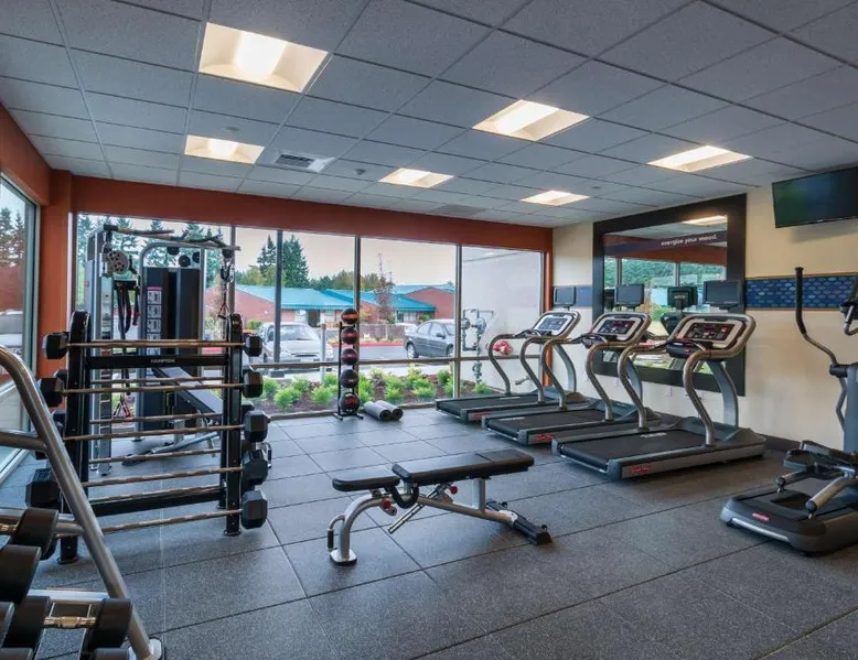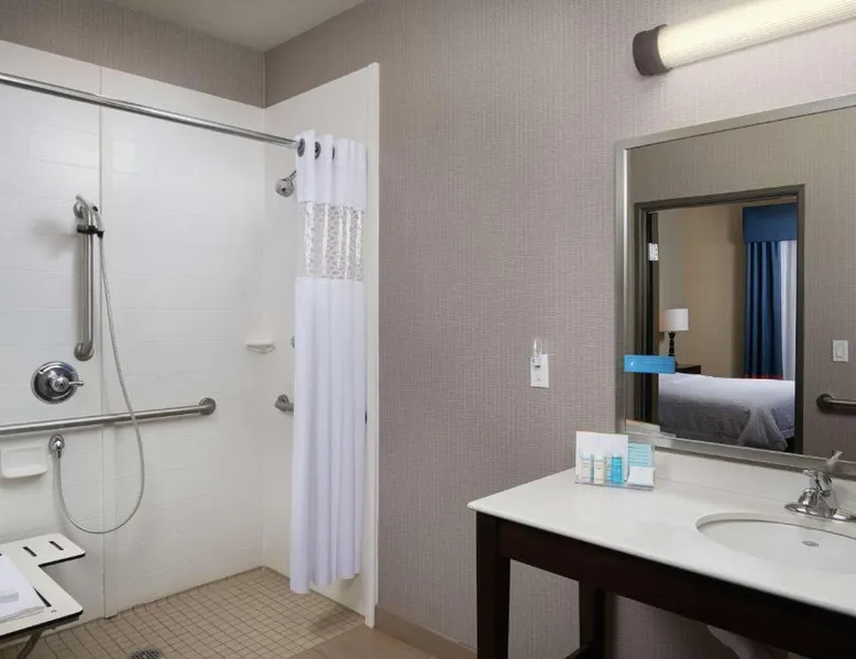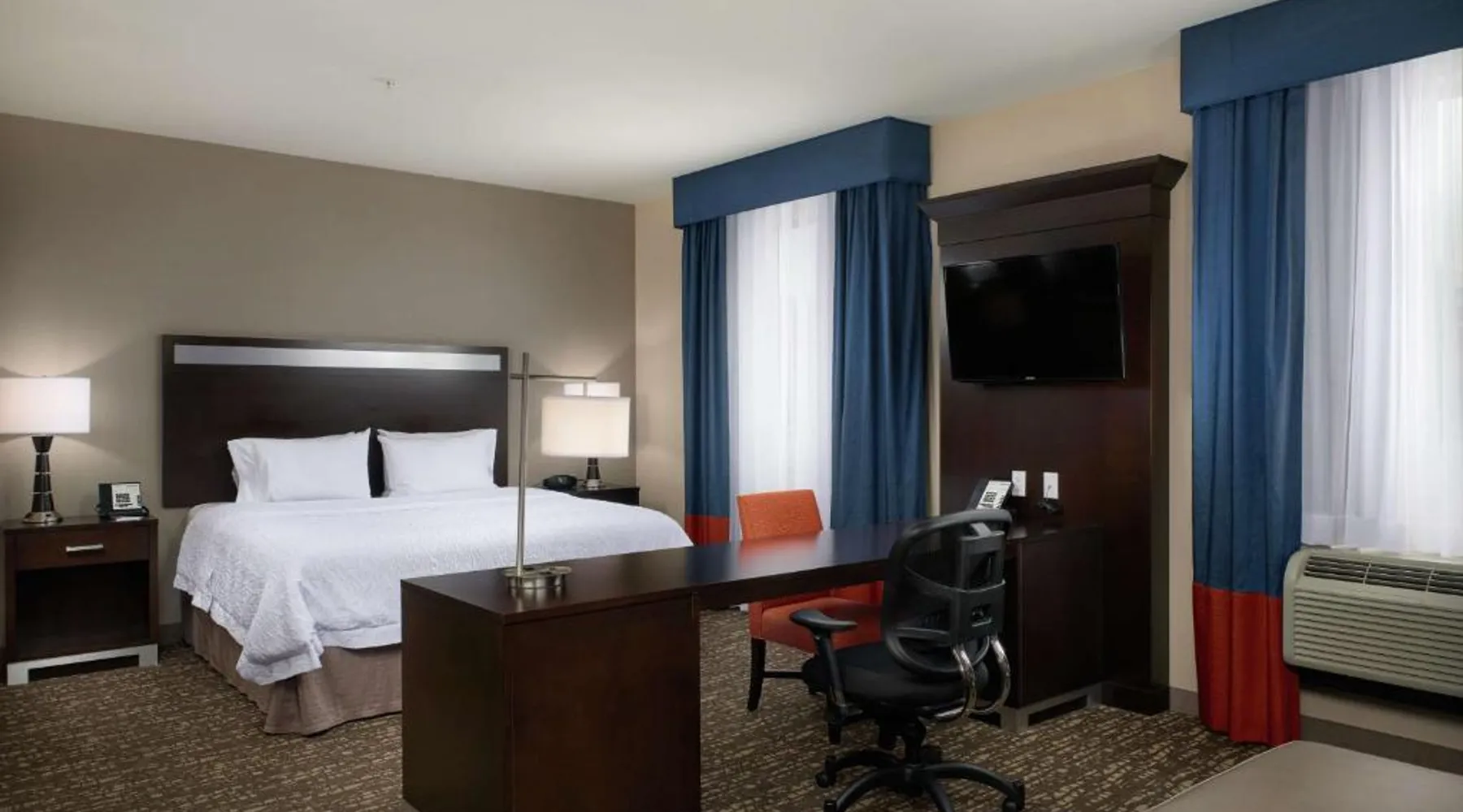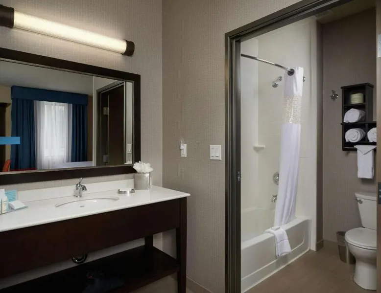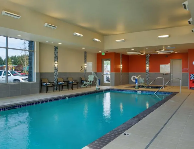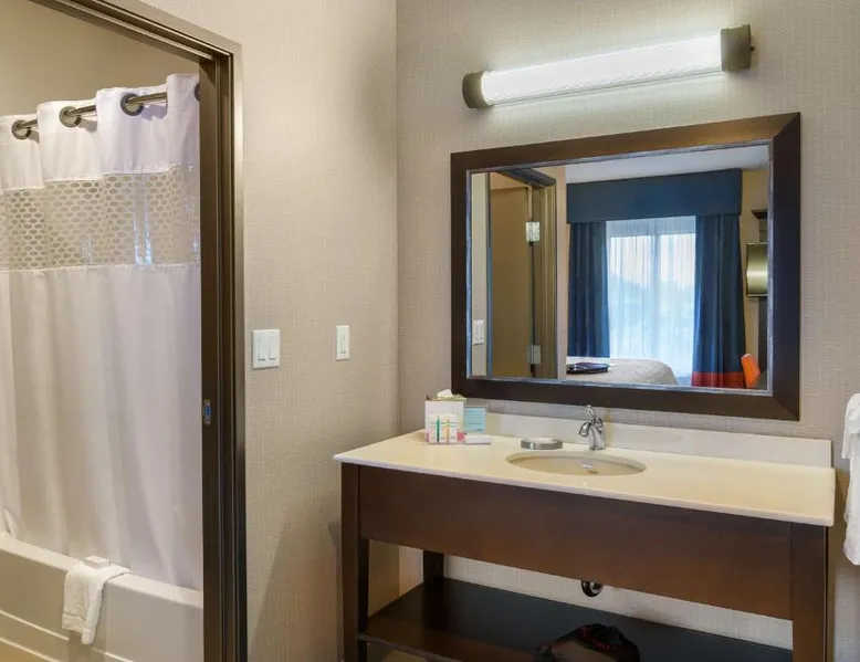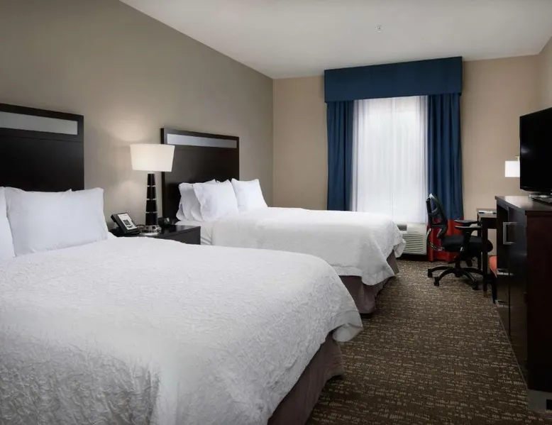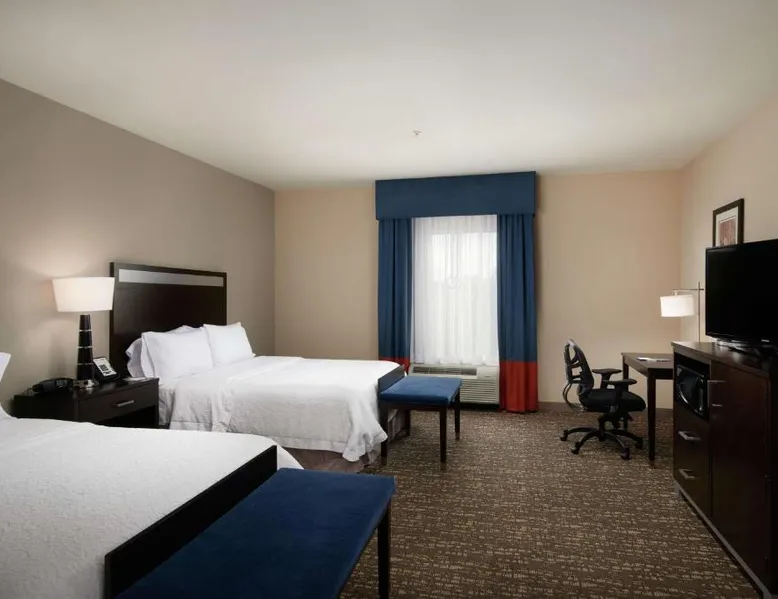 Comfortable Accommodations: Hampton Inn & Suites Portland/Vancouver in Vancouver offers family rooms with air-conditioning, free WiFi, and amenities such as a tea and coffee maker, refrigerator, and TV. Leisure Facilities: Guests can enjoy an indoor and saltwater swimming pool, fitness center, hot tub, and barbecue facilities. Additional services include a 24-hour front desk, minimarket, and electric vehicle charging station. Convenient Location: Located 8.7 mi from Portland International Airport, the hotel is near attractions like Fort Vancouver-Visitor's Center (6.8 mi) and Portland Fairview RV Park (14 mi). An ice-skating rink is also in the vicinity. Guest Satisfaction: Highly rated by guests, the property is praised for its breakfast provided by the hotel. This air-conditioned room offers a flat-screen TV with cable channels, a seating area with a sofa, a microwave, refrigerator, and a coffee machine.