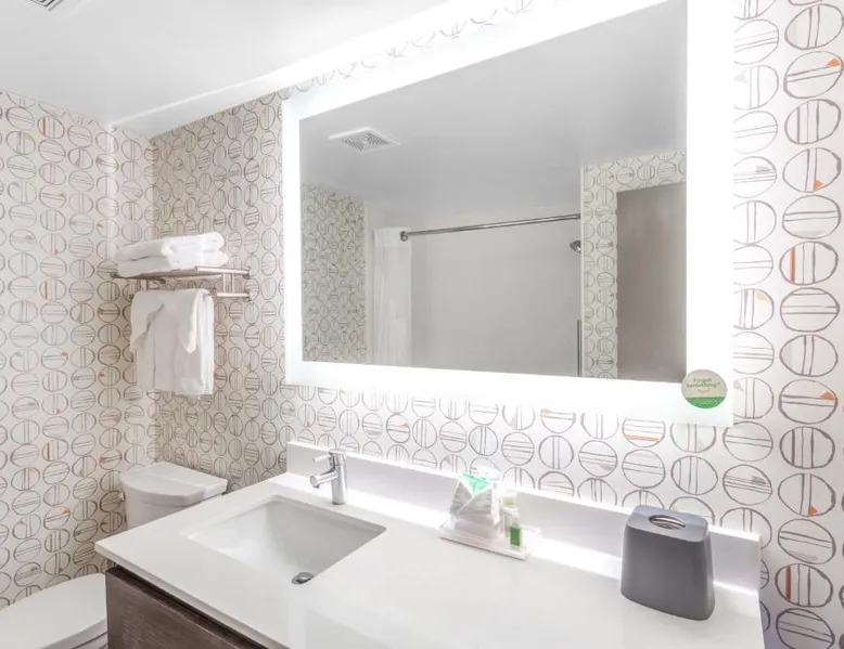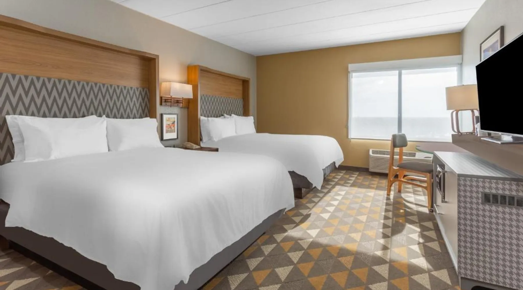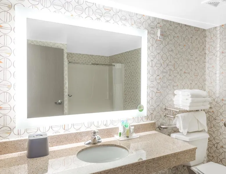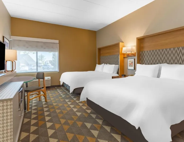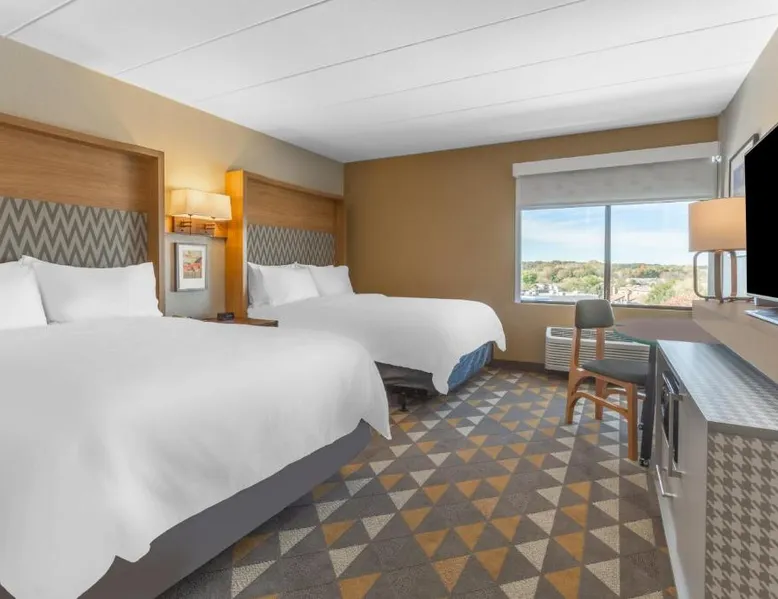 Comfortable Accommodations: Holiday Inn Rockford by IHG in Rockford offers spacious rooms with air-conditioning, private bathrooms, and modern amenities. Guests appreciate the room cleanliness and bed comfort. Exceptional Facilities: The hotel features a fitness center, indoor swimming pool, and free WiFi. Additional services include a free airport shuttle, restaurant, bar, and outdoor seating area. Dining Options: A restaurant serves American cuisine with an à la carte breakfast offering warm dishes, fresh pastries, fruits, and juice. Convenient Location: Located 12 mi from Chicago Rockford International Airport, the hotel is near attractions such as Magic Waters Waterpark (4.3 mi) and Logan Museum of Anthropology (19 mi). The spacious double room provides air conditioning, a tea and coffee maker, a carpeted floor, as well as a flat-screen TV with cable channels. The unit offers 2 beds.