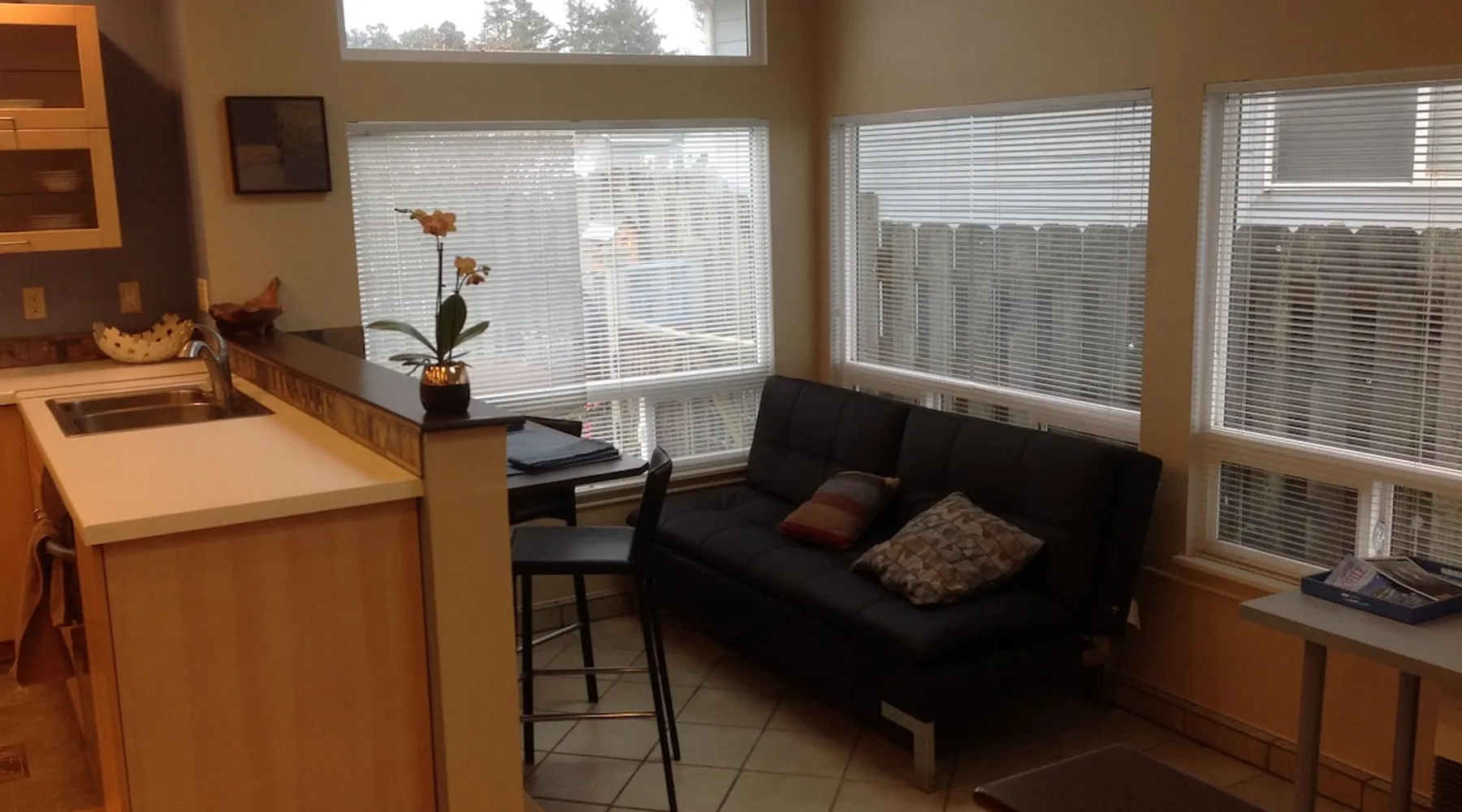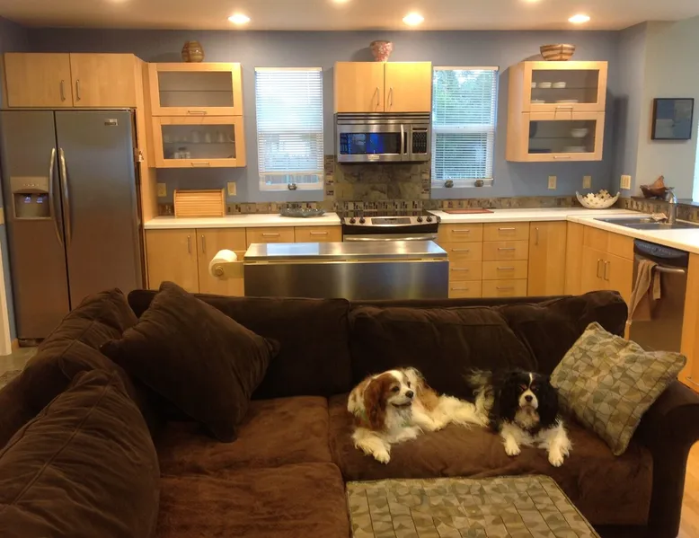 Welcome to Beachfront Studio & Rothbar Puppy Park in wonderful Crescent City, CA. Beautifully furnished for your comfort and the style of the Pacific Ocean in mind, Beachfront Studio features a one bedroom, one bath apartment with a comfortable queen-size bed, an equally relaxing double-size futon/bed, a large sofa and an open-concept living room/kitchen/dining room/sun room with Direct TV and wireless Internet access. The space The apartment has a large kitchen that is fully equipped. The bathroom has a recently remodeled shower and you have access to the laundry room with a 1/2 bath. The property is located on Pebble Beach Drive, with unmatched ocean views from the property or you can head down to the beach - just a short 1/2 block walk away! However, best of all is the breathtaking view of the Pacific Ocean. Directly in front of you lies a grassy area with table and benches to enjoy majestic sunsets, miles and miles of deep blue ocean and sea stacks where you may often see migrating whales and adventurous surfers. The backyard features a landscaped area for your fur babies to potty and equipped with chairs, a portable fire pit and a gas barbecue. Directly behind of our back yard, we own another piece of property which we call the Rothbar Puppy Park. The puppy park is approximately 1/2 acre that is fully fenced, with a small garden and lots of grass and textures for your pups to explore and enjoy. Within the puppy park is a 10x12 ft. puppy spa with warm water and electricity to bathe and dry your 4-legged friends after a romp on the beach. We allow dogs only, no cats. In addition to these wonderful accommodations, my art studio adjoins the studio apartment. I use this studio for art classes and to create various art that includes silk painting, fused glass and mosaics. You may make arrangements to participate in a variety of art classes for a nominal fee. Guest access The apartment is the first level of a 3-level home that faces the Pacific Ocean. There are 2 parking spaces in front of the home and and apartment has its own private entrance. There is one bedroom with a queen size bed, a double size futon/couch in the sun room that sleeps 2 small children or one adult and a large comfortable couch that could sleep 2 children or 1 adult. There is a 58 inch large screen TV with DirectTV and access to the internet. You will be able to use a shared laundry room, the back yard and the puppy park. Other things to note When you initially book our apartment, please indicate the number of guests, the number of beds needed and the number of pets and size of the pets. We allow only dogs, no cats, birds, reptiles, pigs, etc. Canines only. There is an additional $25 fee for pets. We have found that our house keeper requires additional time to thoroughly clean the apartment when guests have pets. We appreciate your understanding. This fee will be requested after you have confirmed your reservation.