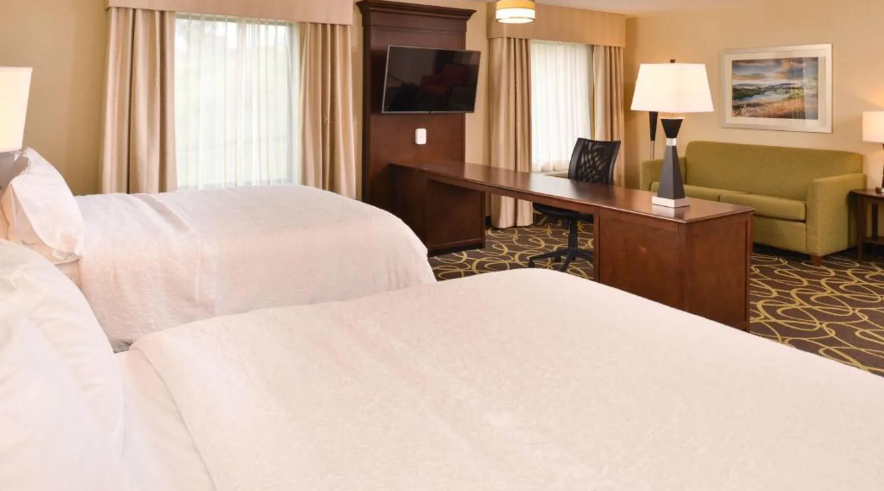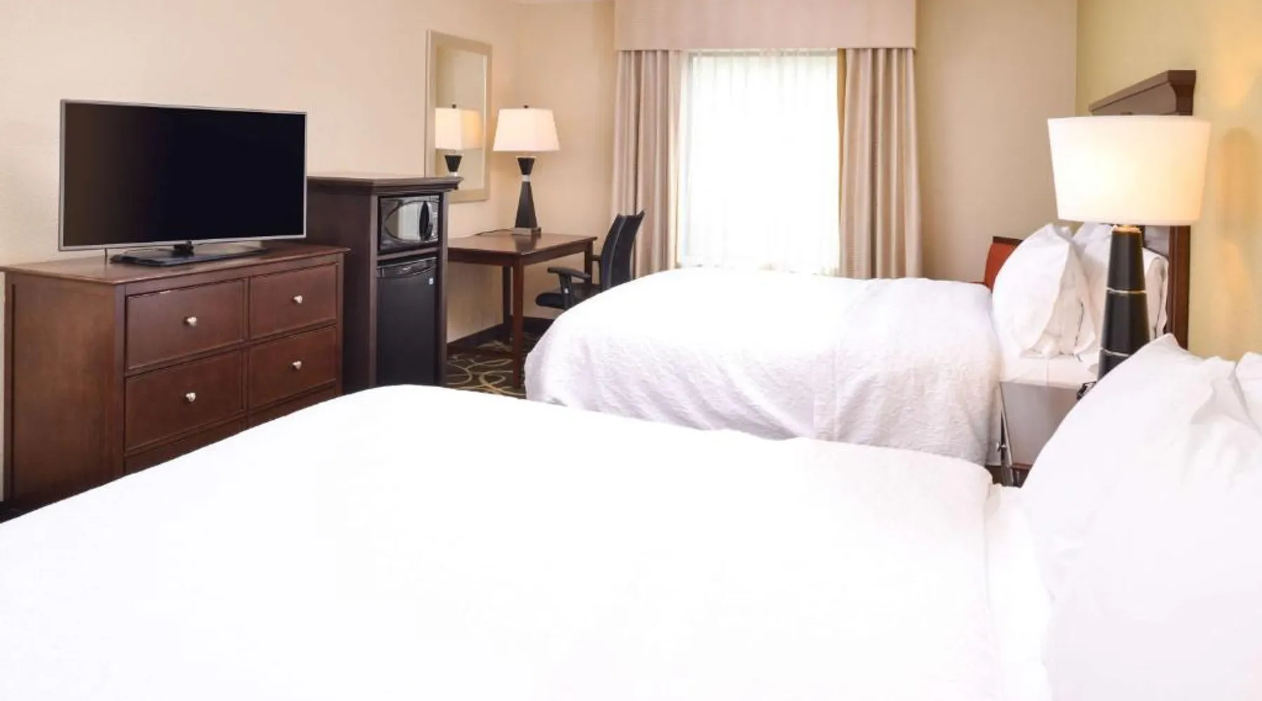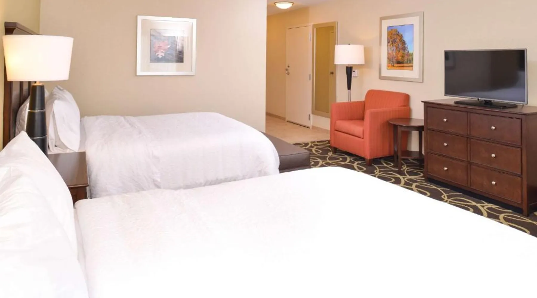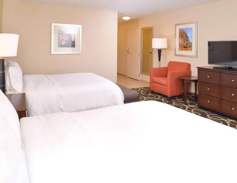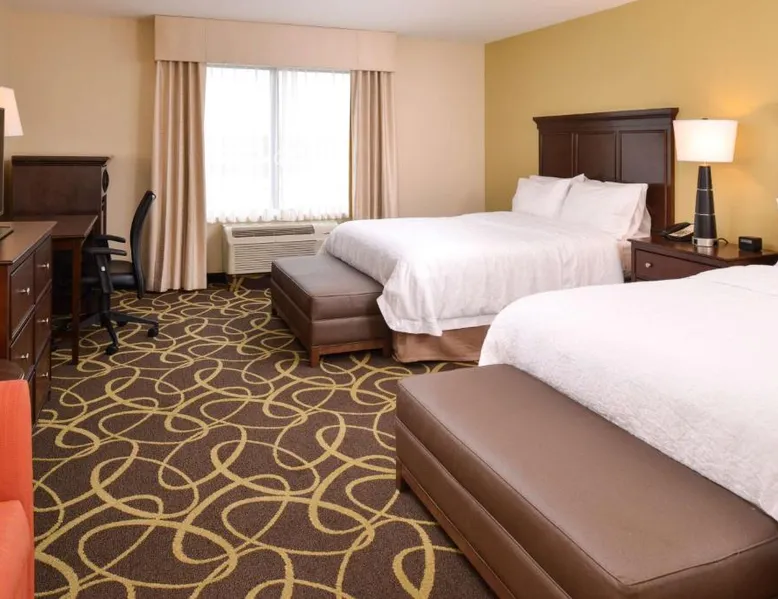Comfortable Accommodations: Hampton Inn Omaha Midtown-Aksarben in Omaha offers family rooms with free WiFi, air-conditioning, and modern amenities. Each room includes a tea and coffee maker, hairdryer, refrigerator, microwave, shower, and TV. Leisure Facilities: Guests can enjoy a fitness center, indoor swimming pool, and hot tub. Additional facilities include a lounge, fitness room, and 24-hour front desk. Free on-site parking is available. Convenient Location: Located 8.1 mi from Eppley Airfield, the hotel is near attractions such as Td Ameritrade Park Omaha (6.2 mi) and Omaha Community Playhouse (1.5 mi). An ice-skating rink is in the surroundings. Guest Satisfaction: Highly rated for its attentive staff, excellent breakfast, and relaxing hot tub. This quadruple room provides a tea and coffee maker and a flat-screen TV. The unit offers 2 beds.