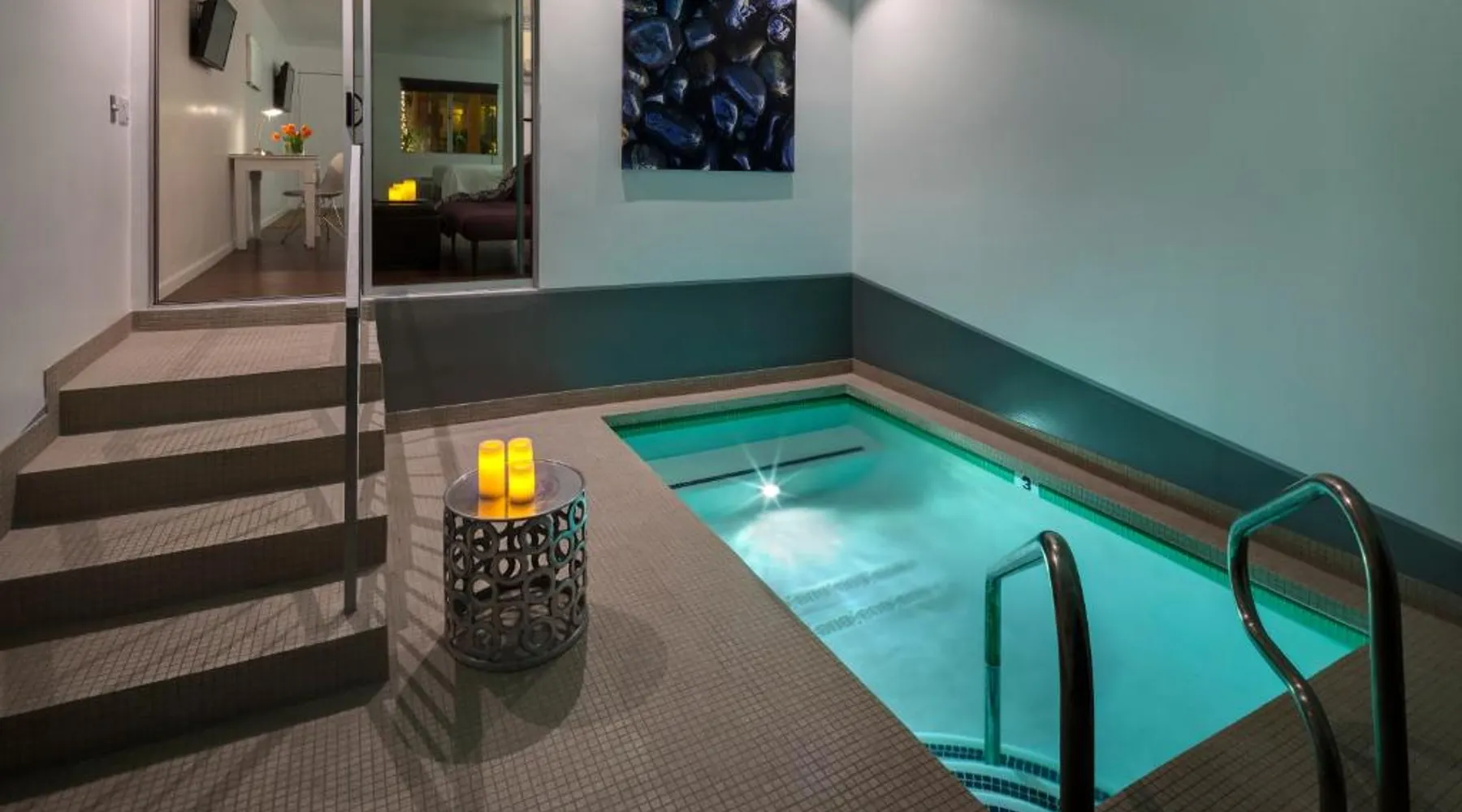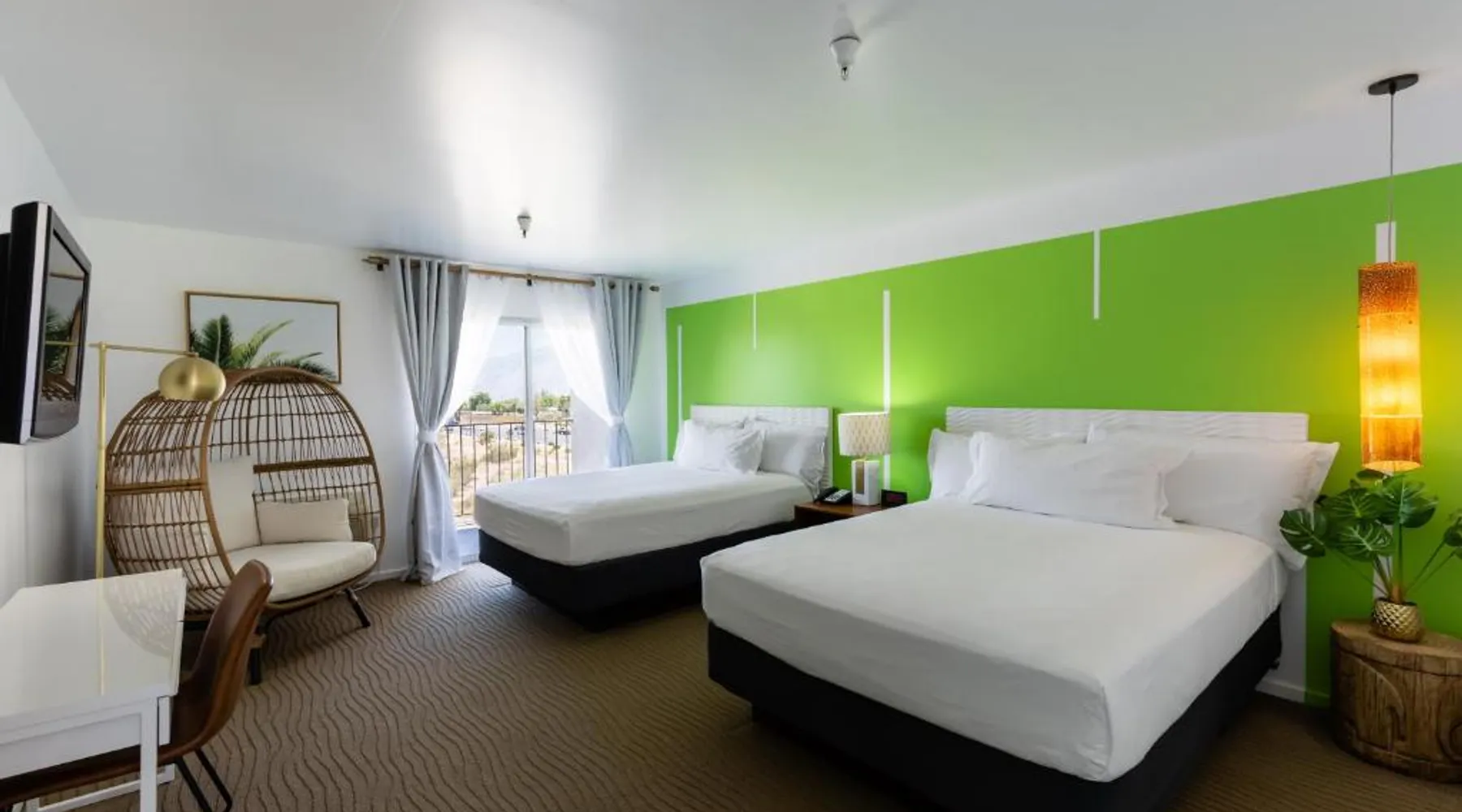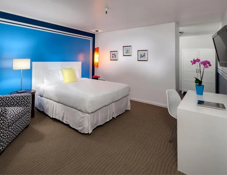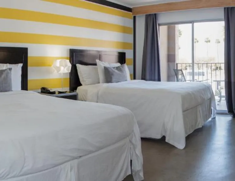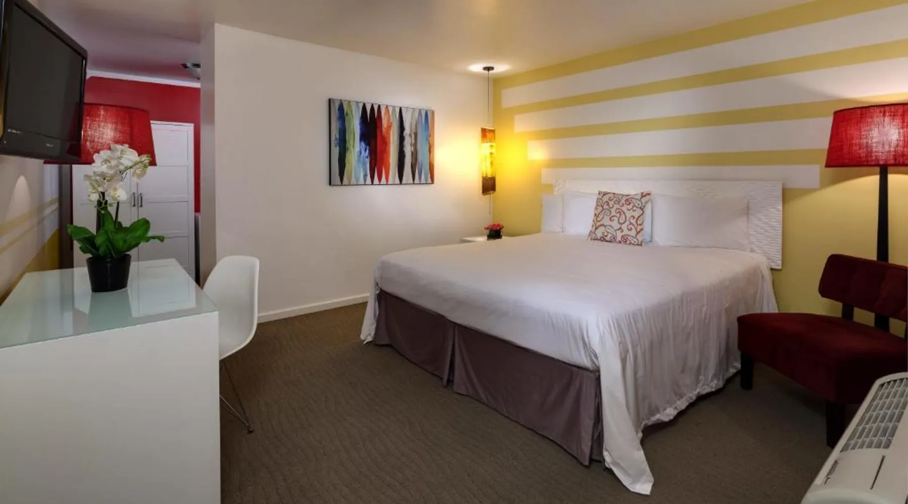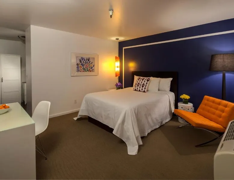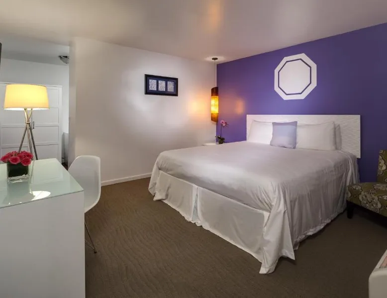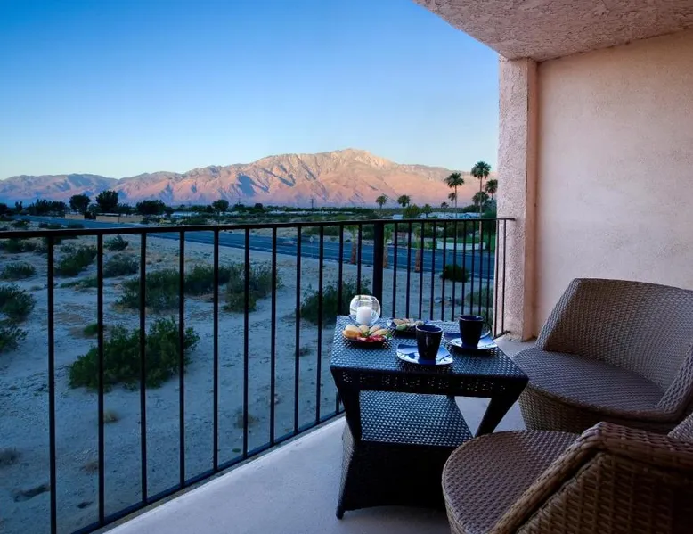 Featuring an outdoor and indoor mineral swimming pool, this Desert Hot Springs, California hotel and spa is 5 minutes’ drive to Desert Dunes Golf Course, 10 miles from downtown Palm Springs and 33 miles from Joshua Tree National Park. Offering flat-screen cable TV, all modern rooms features a compact fridge and an private bathroom at Aqua Soleil Hotel and Mineral Water Spa. Select suites feature a private swimming pool. Guests can enjoy the on-site pool, as well as indoor and outdoor hot tubs that are filled with Desert Hot Spring's mineral water at Aqua Soleil Mineral Water Spa and Hotel. Massage and spa services are available at the on-site spa. Guests have free access to World Gym just 1.8 miles away. Palm Springs International Airport is 20 minutes’ drive from Aqua Soleil Hotel and Mineral Water Spa. Featuring a private balcony, this modern room features a flat-screen cable TV, a compact fridge and an private bathroom. Tea and coffee-making facilities are also provided.