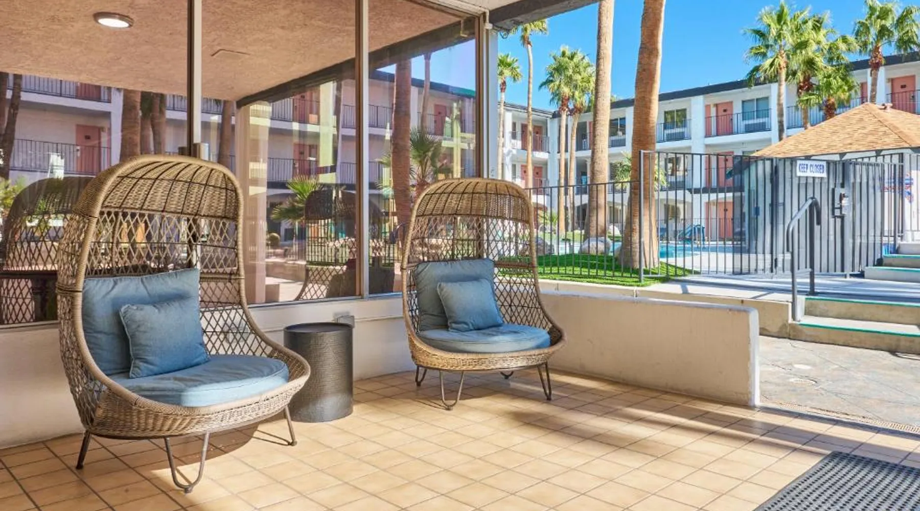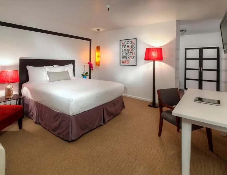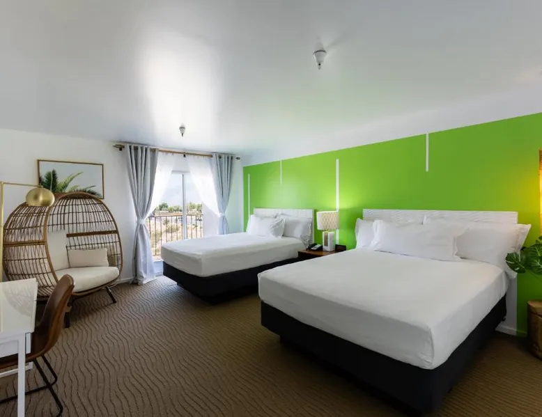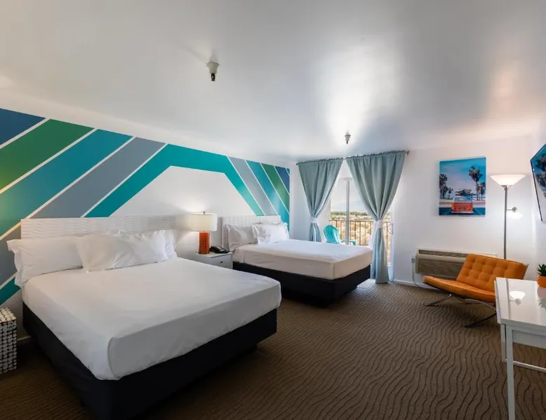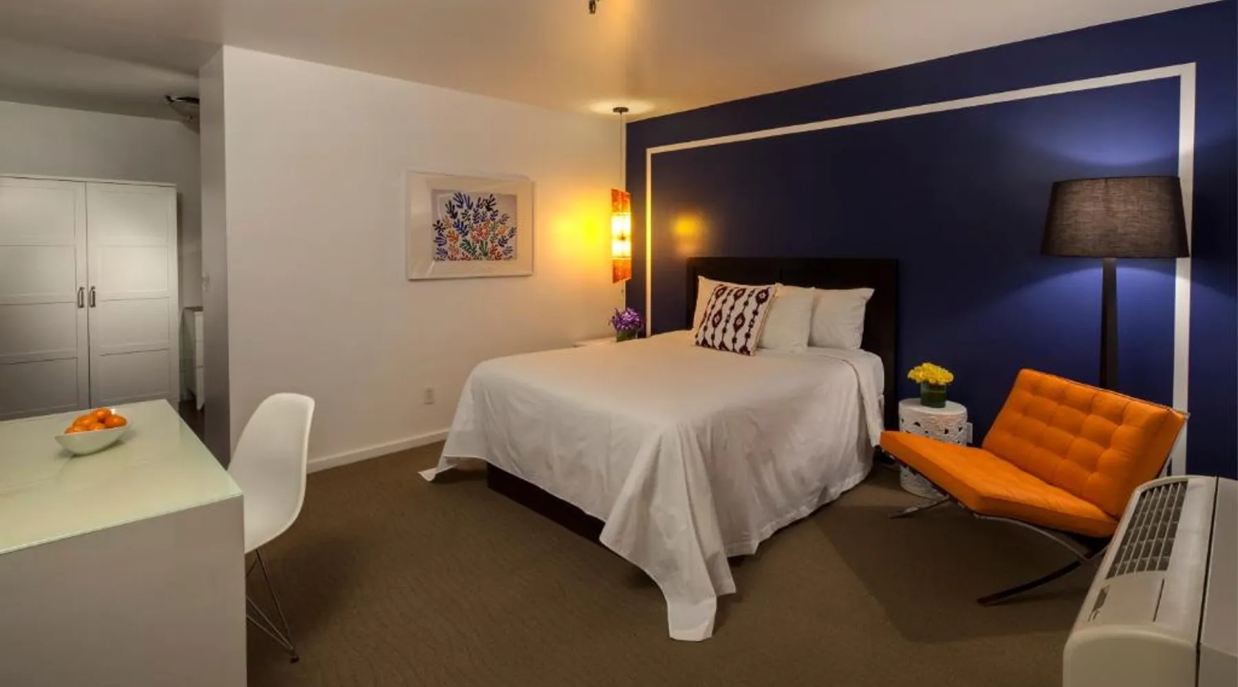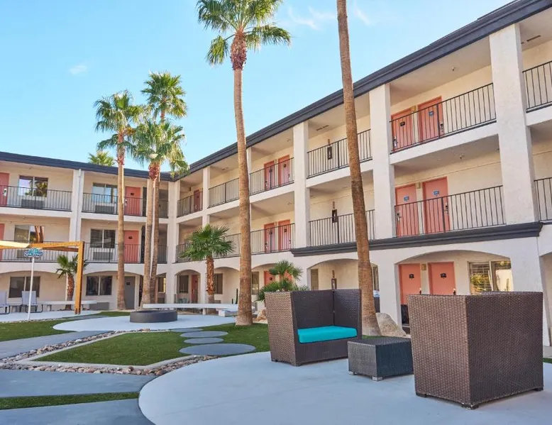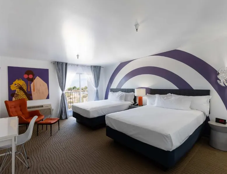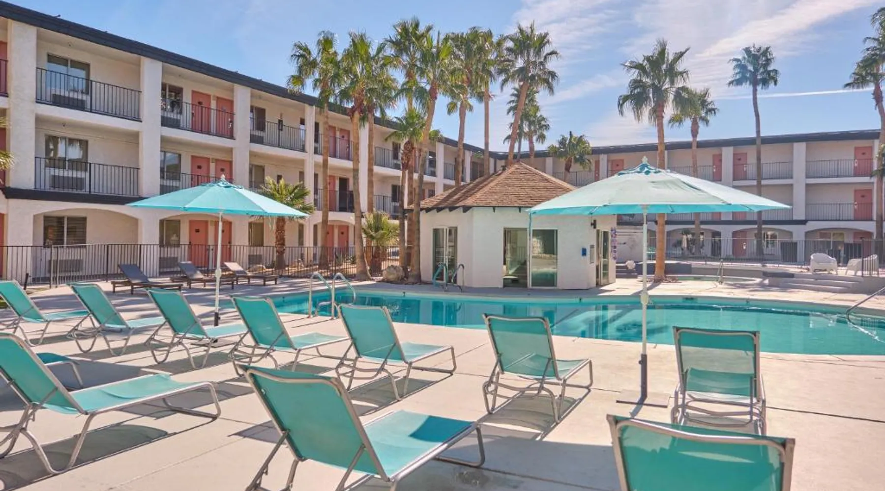 Featuring an outdoor and indoor mineral swimming pool, this Desert Hot Springs, California hotel and spa is 5 minutes’ drive to Desert Dunes Golf Course, 10 miles from downtown Palm Springs and 33 miles from Joshua Tree National Park. Offering flat-screen cable TV, all modern rooms features a compact fridge and an private bathroom at Aqua Soleil Hotel and Mineral Water Spa. Select suites feature a private swimming pool. Guests can enjoy the on-site pool, as well as indoor and outdoor hot tubs that are filled with Desert Hot Spring's mineral water at Aqua Soleil Mineral Water Spa and Hotel. Massage and spa services are available at the on-site spa. Guests have free access to World Gym just 1.8 miles away. Palm Springs International Airport is 20 minutes’ drive from Aqua Soleil Hotel and Mineral Water Spa. Featuring a private balcony, this modern room features a flat-screen cable TV, a compact fridge and an private bathroom. Tea and coffee-making facilities are also provided.