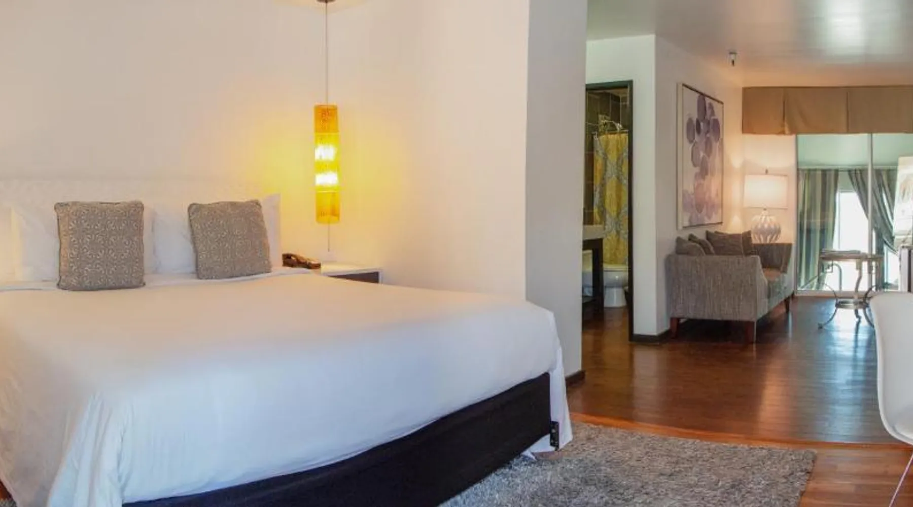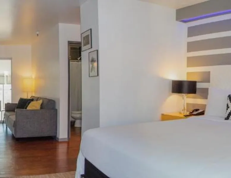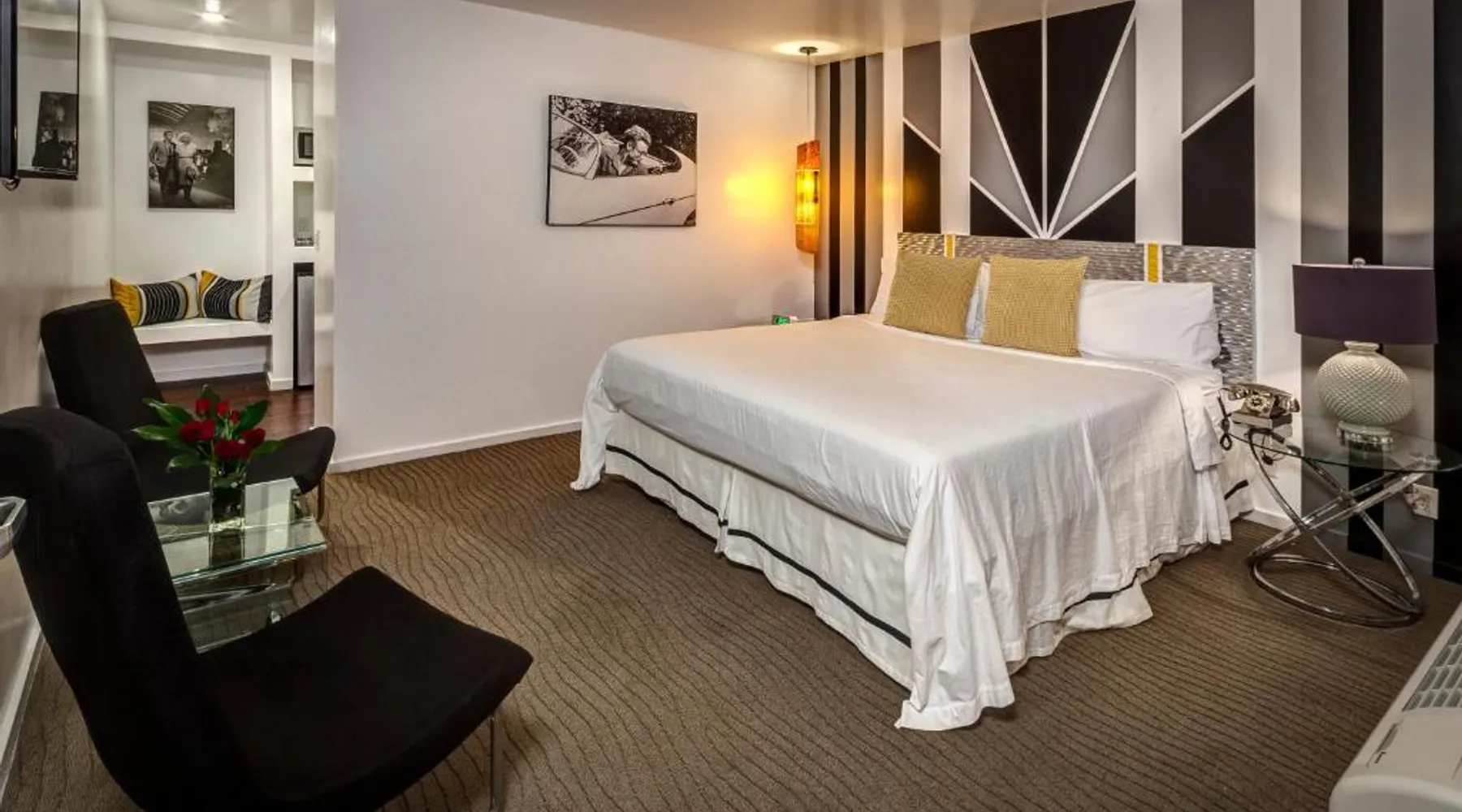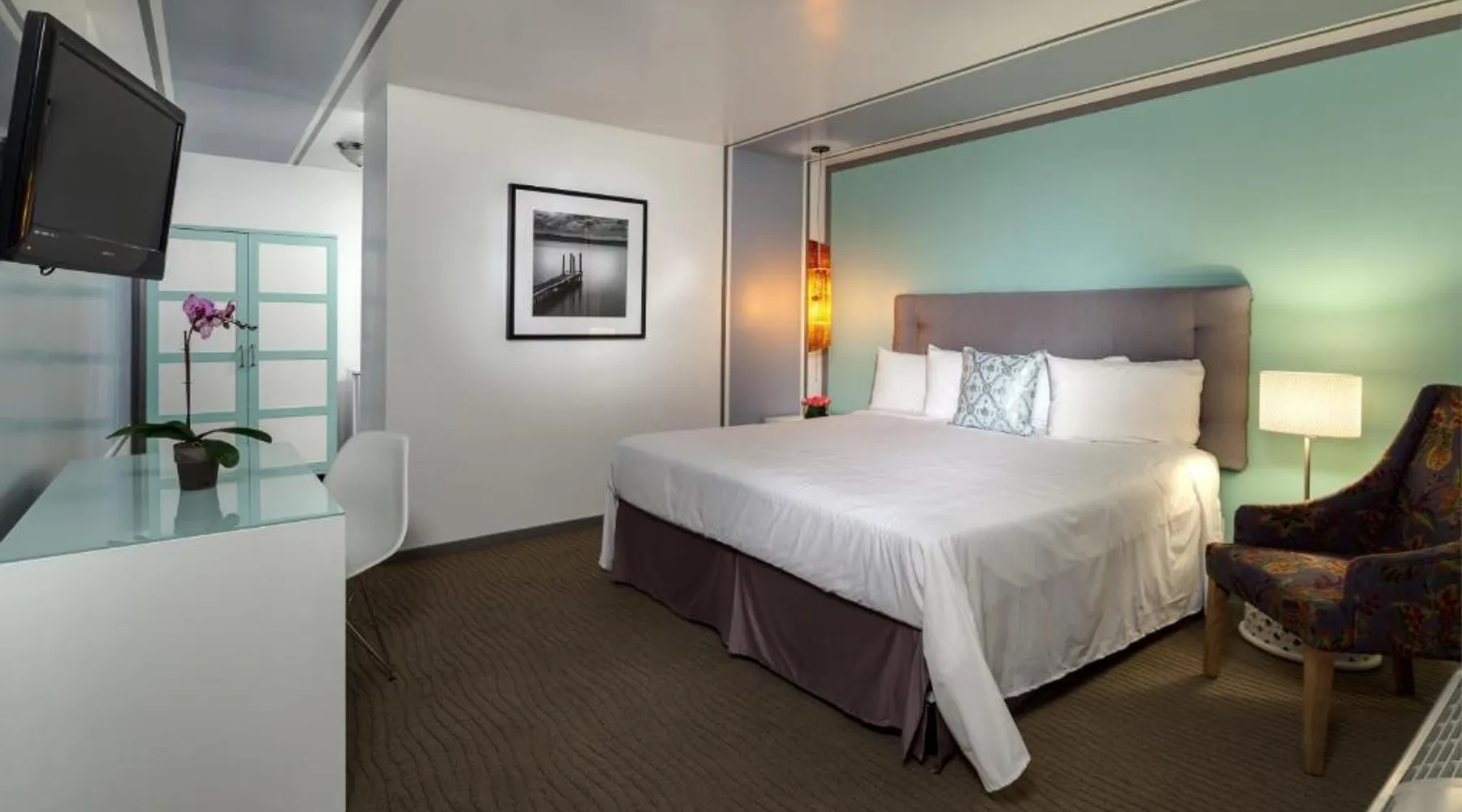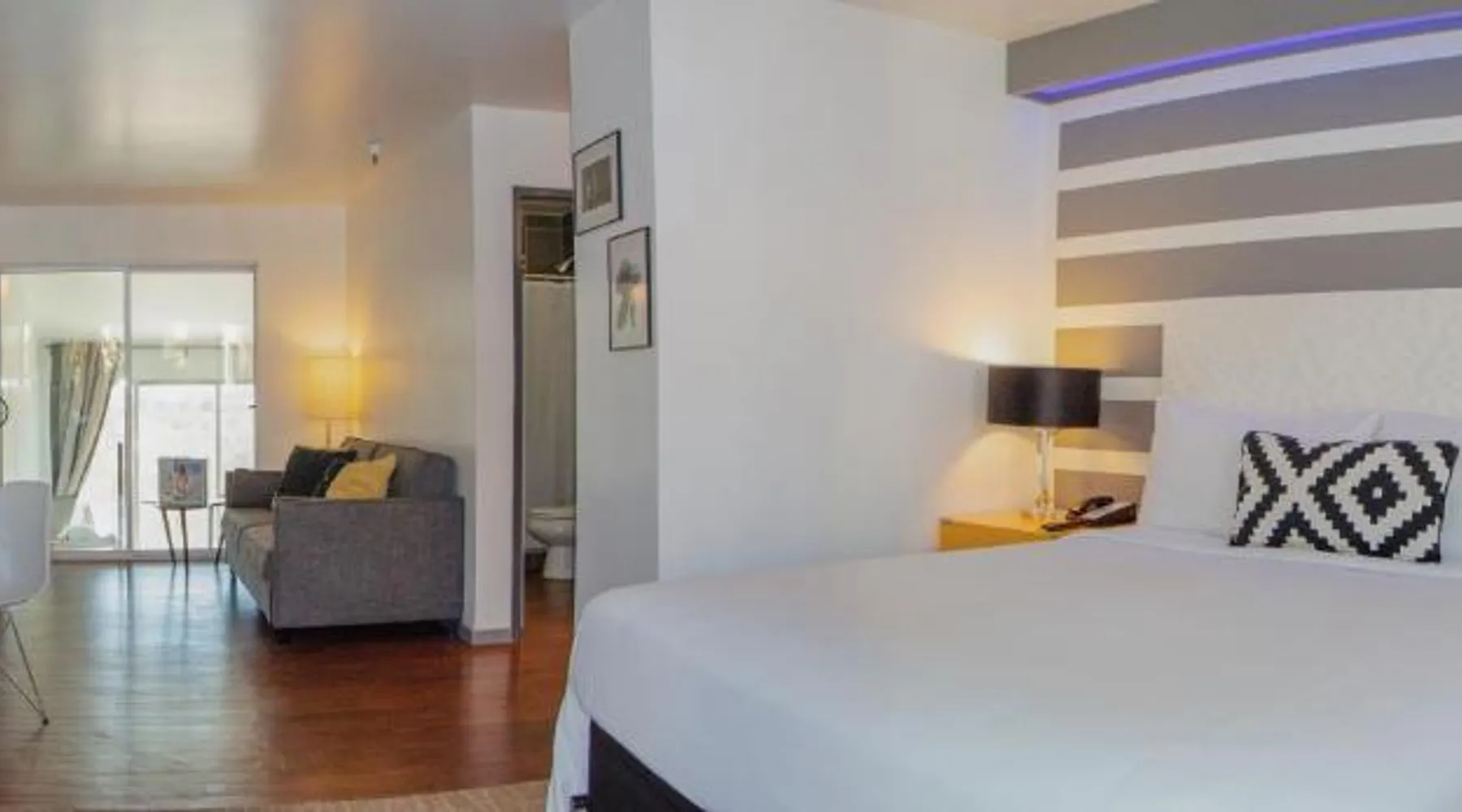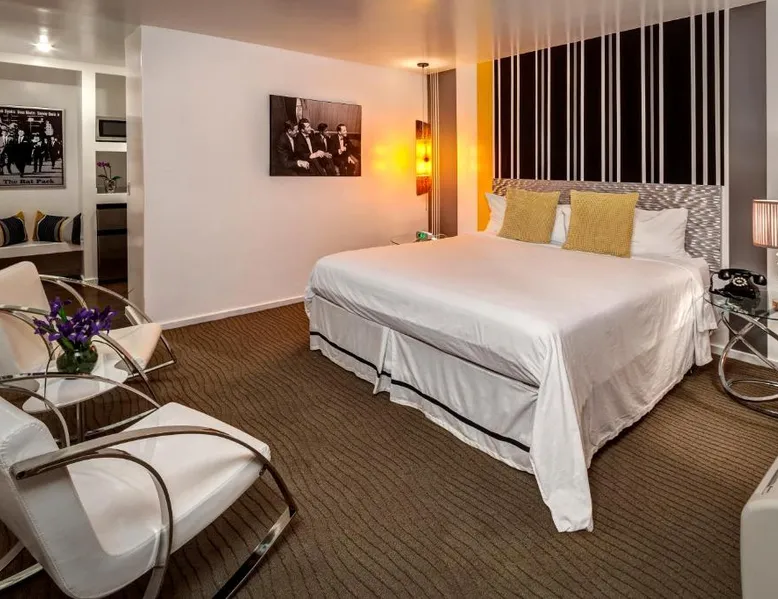 Featuring an outdoor and indoor mineral swimming pool, this Desert Hot Springs, California hotel and spa is 5 minutes’ drive to Desert Dunes Golf Course, 10 miles from downtown Palm Springs and 33 miles from Joshua Tree National Park. Offering flat-screen cable TV, all modern rooms features a compact fridge and an private bathroom at Aqua Soleil Hotel and Mineral Water Spa. Select suites feature a private swimming pool. Guests can enjoy the on-site pool, as well as indoor and outdoor hot tubs that are filled with Desert Hot Spring's mineral water at Aqua Soleil Mineral Water Spa and Hotel. Massage and spa services are available at the on-site spa. Guests have free access to World Gym just 1.8 miles away. Palm Springs International Airport is 20 minutes’ drive from Aqua Soleil Hotel and Mineral Water Spa. Featuring a private balcony, this modern room features a flat-screen cable TV, a compact fridge and an private bathroom. Tea and coffee-making facilities are also provided.