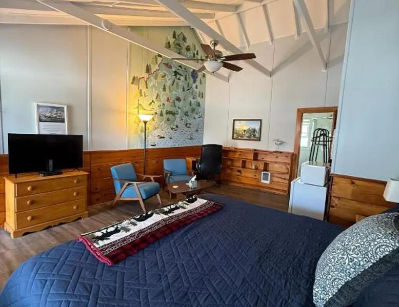 Comfortable Accommodations: Yardarm Motel in Searsport offers family rooms with private bathrooms, air-conditioning, and free WiFi. Each room includes a refrigerator, microwave, TV, and wardrobe. Outdoor Amenities: Guests can enjoy an outdoor fireplace, seating area, and bicycle parking. The property features outdoor furniture and a ground-floor unit. Breakfast and Parking: A continental breakfast with juice, fresh pastries, and fruits is served daily. Free on-site private parking is available. Local Attractions: Mosman Park Beach is 1.1 mi away, Bangor International Airport is 32 mi, and various historic sites are within 26 mi. The spacious family room features air conditioning, a private entrance, as well as a private bathroom boasting a shower and a hairdryer. Featuring outdoor furniture, this family room also provides a wardrobe, heating and a flat-screen TV with satellite channels. The unit has 3 beds.