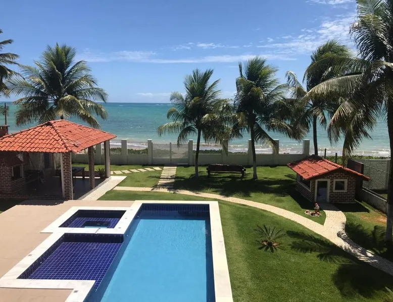 Beachfront Location: Ampla Casa na beira mar de Maragogi in Maragogi offers direct beachfront access with stunning sea views. Guests can relax on the terrace or take a dip in the outdoor swimming pool. Spacious Accommodations: The holiday home features six bedrooms and six bathrooms, ensuring ample space for all visitors. The living room includes a sofa and TV, while the fully equipped kitchen provides modern amenities. Leisure Facilities: Guests can enjoy free use of bicycles, a hot tub, and a children’s playground. The property also features a garden, barbecue facilities, and free WiFi, catering to all ages. Nearby Attractions: Peroba Beach is just a few steps away, while Gales Natural Pools are 5.6 mi distant. Other points of interest include Saltinho Biological Reserve (17 mi) and Tamandaré Fort (22 mi). Recife International Airport is 70 mi from the property. This holiday home's special features are the pool with a view and the hot tub. Featuring a private entrance, this spacious holiday home also consists of 2 living rooms, 6 separate bedrooms and 6 bathrooms with a shower. Guests will find a stovetop, a refrigerator, kitchenware and an oven in the well-equipped kitchen. The holiday home also provides guests with a barbecue. The air-conditioned holiday home provides a flat-screen TV, a washing machine, a seating area, a dining area as well as sea views. The unit offers 14 beds.
