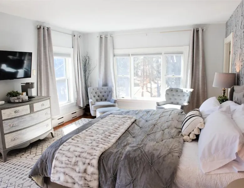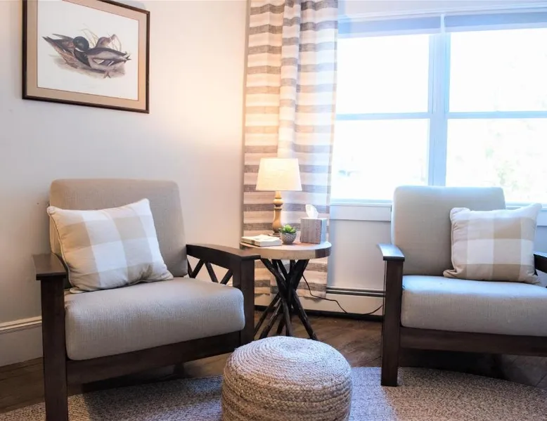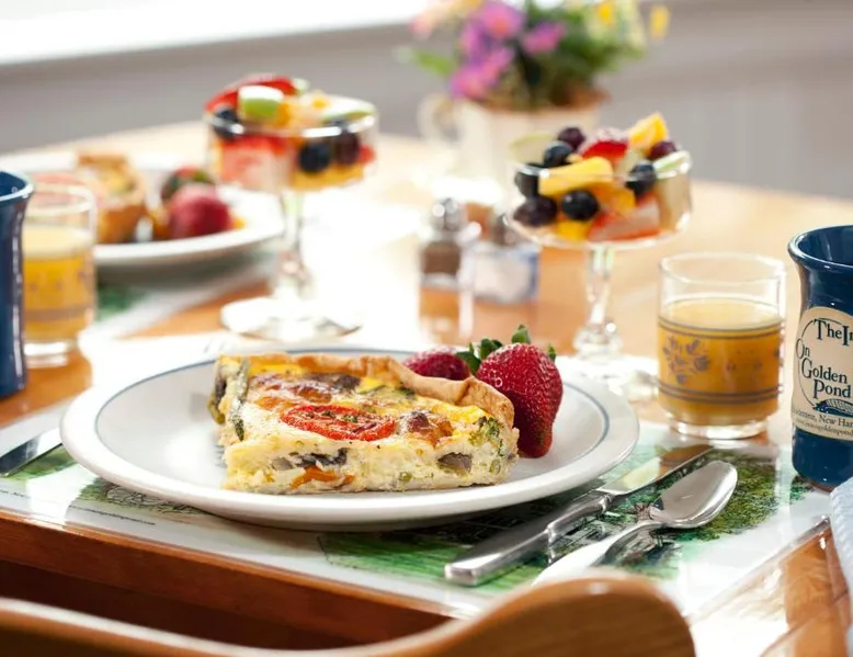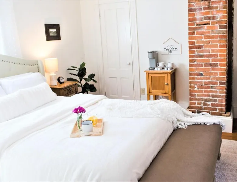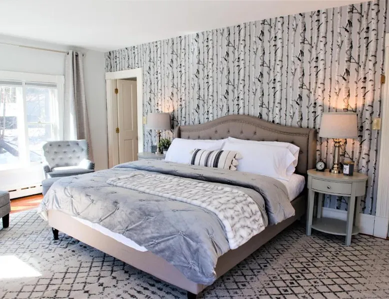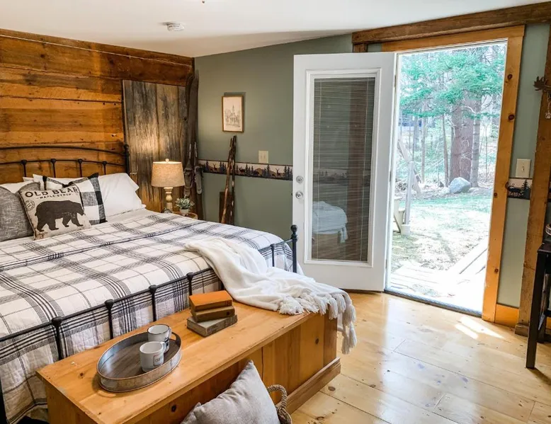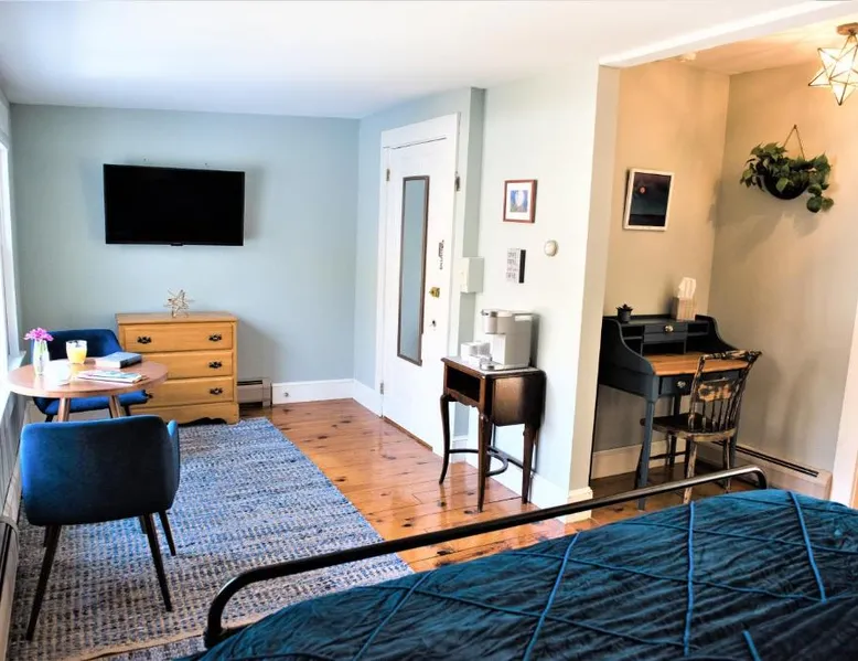 Historic Charm: Inn on Golden Pond in Holderness offers a historic building with a beautiful garden and terrace. Guests enjoy free WiFi throughout the property. Comfortable Accommodations: Rooms feature air-conditioning, private bathrooms, and garden views. Additional amenities include streaming services, parquet floors, and work desks. Delicious Breakfast: A variety of breakfast options are available, including American, vegetarian, vegan, and gluten-free. Local specialties, warm dishes, and fresh fruits enhance the morning experience. Explore the Area: Located 49 mi from Lebanon Municipal Airport and near Loon Mountain (27 mi) and Alpine Adventures (26 mi), the property offers activities such as fishing, skiing, and hiking. Highly rated for its breakfast and attentive host. This suite features a king bed, a separate living room and a TV.