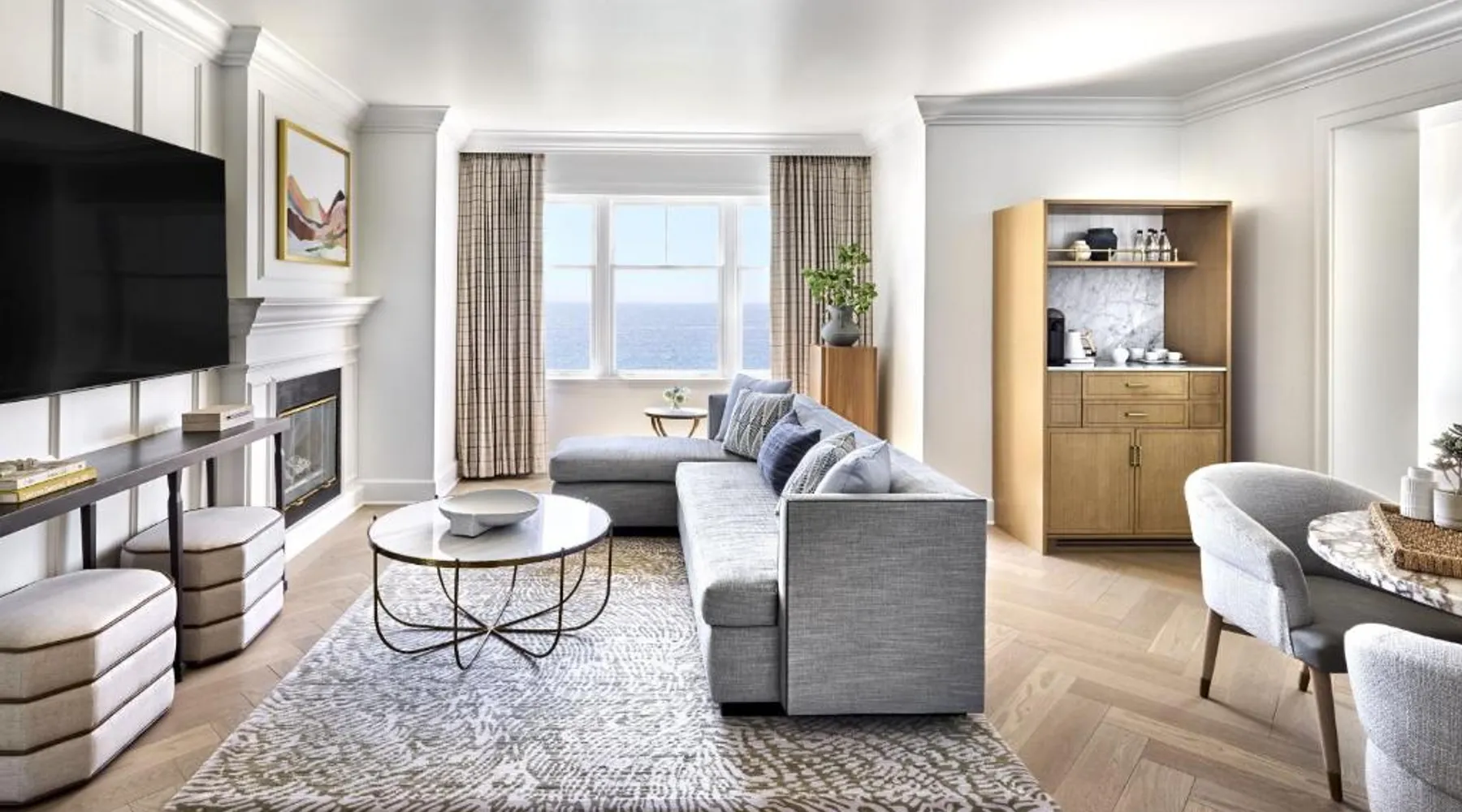 Prime Beachfront Location: The Ritz-Carlton, Half Moon Bay in Half Moon Bay offers direct beachfront access with stunning sea views. Guests can relax on the sun terrace or enjoy the outdoor fireplace. Exceptional Facilities: The hotel features a spa, sauna, fitness center, tennis court, and free bicycles. Additional amenities include a steam room, beauty services, and wellness packages. Free WiFi is available throughout the property. Comfortable Accommodations: Rooms offer air-conditioning, balconies, terraces, and private bathrooms. Guests can enjoy amenities such as bathrobes, mini-bars, and flat-screen TVs. Family rooms and interconnected rooms cater to all needs. Dining Experience: The modern, family-friendly restaurant serves American, seafood, local, and international cuisines. Breakfast includes an American buffet with vegetarian and gluten-free options. Additional dining options include a bar and outdoor seating area. Nearby Attractions: Cowell Ranch Beach is 1.2 mi away, while Shoreline Amphitheater and Lands End Lookout Visitor Center are 47 and 30 mi respectively. San Francisco International Airport is 19 mi from the hotel. Coastline and golf course views are seen from two Adirondack chairs that surround a fire pit in this room's private patio. Bathrobes are provided in this luxurious, air-conditioned room.