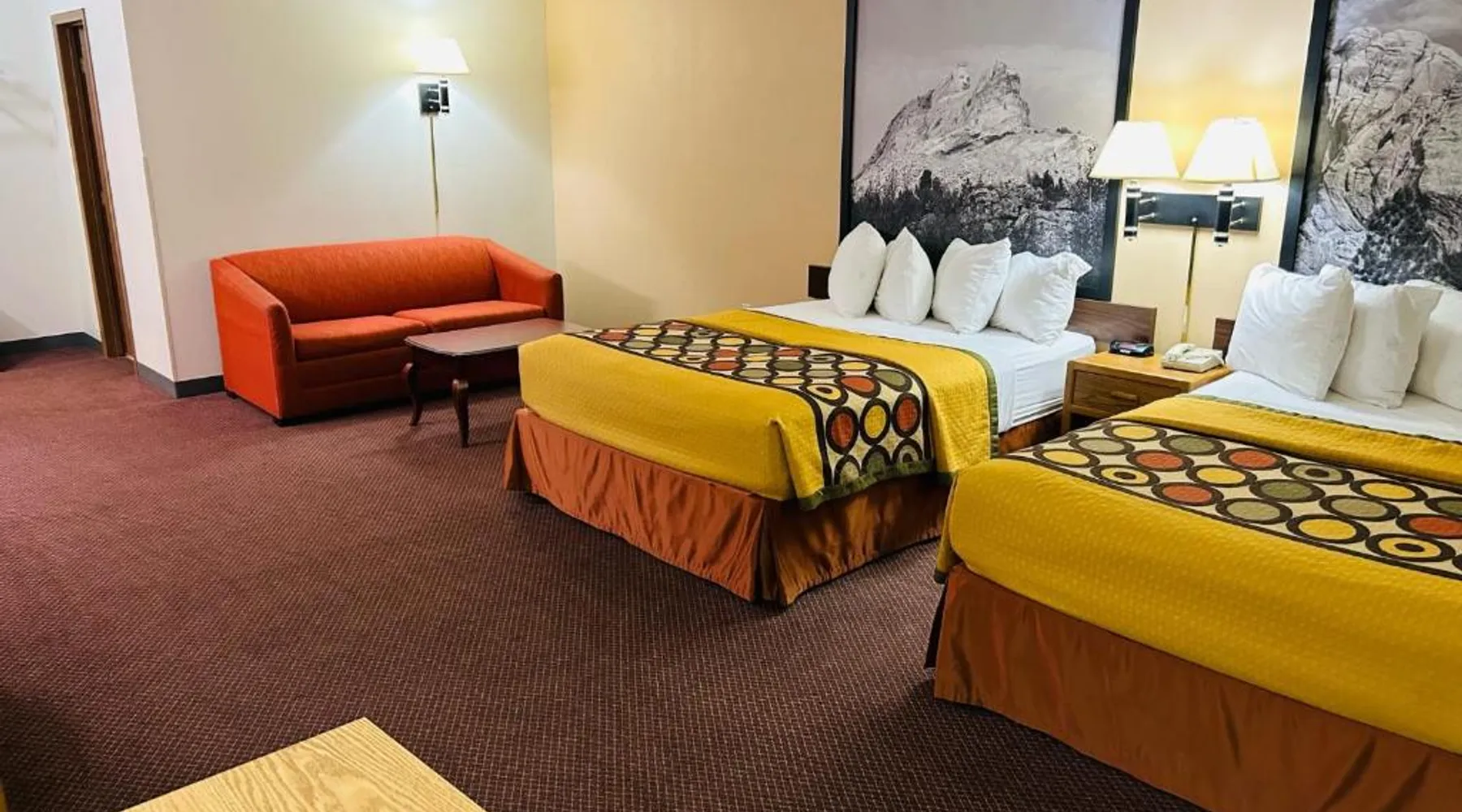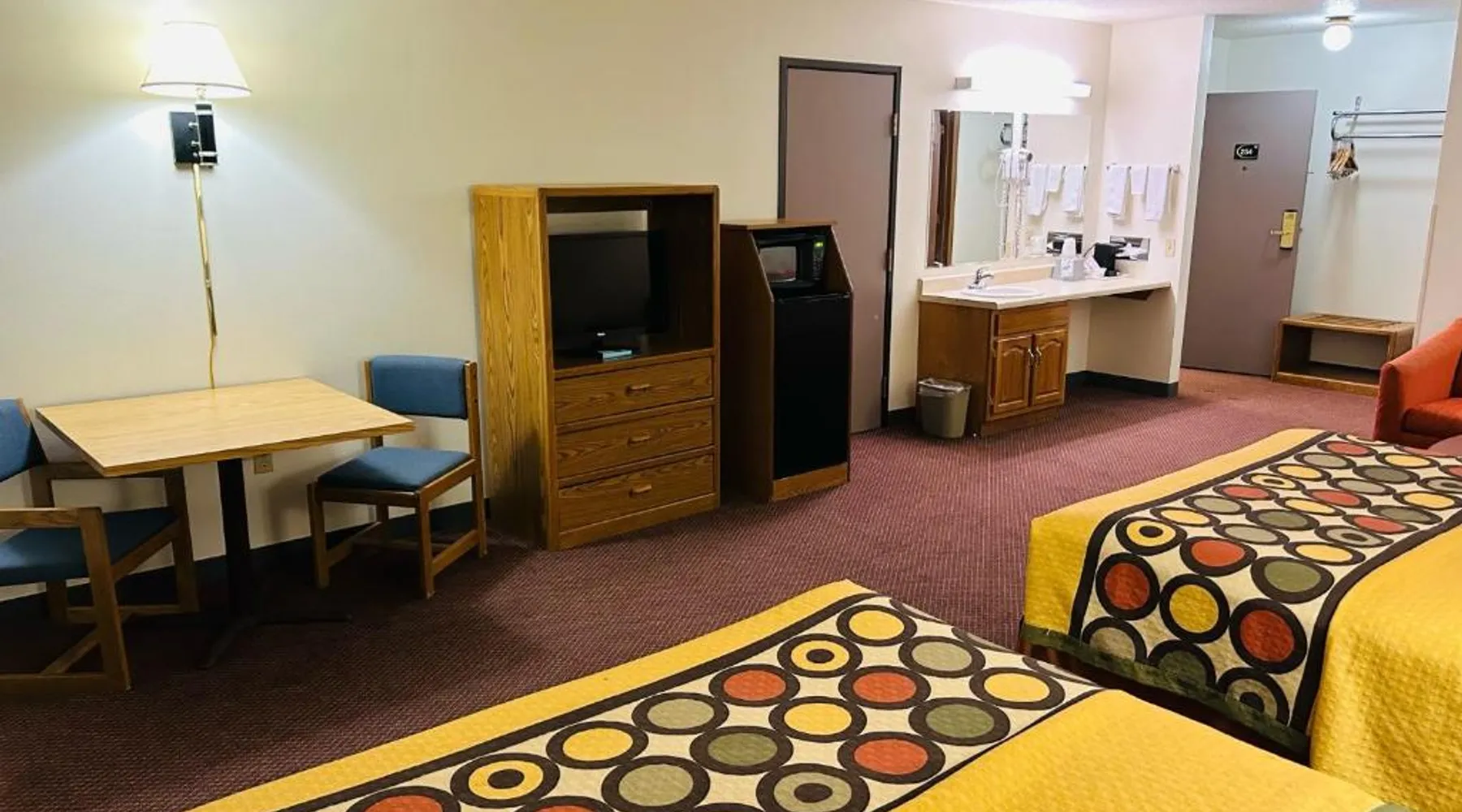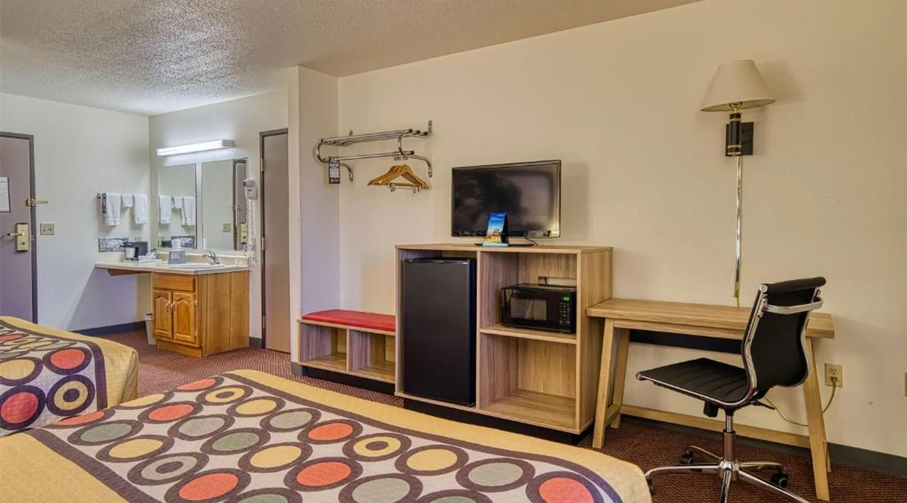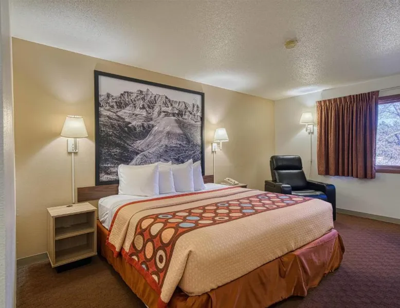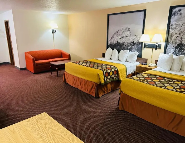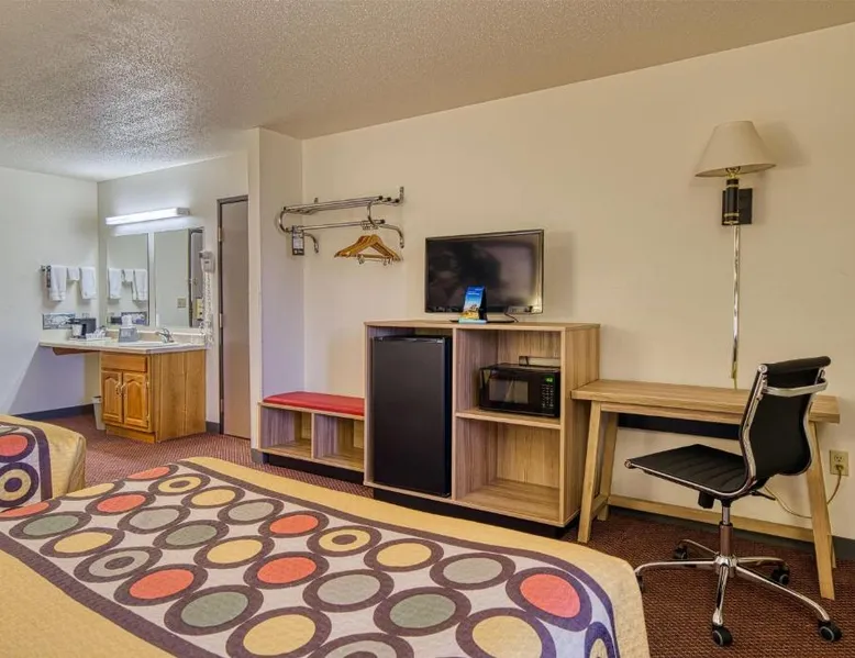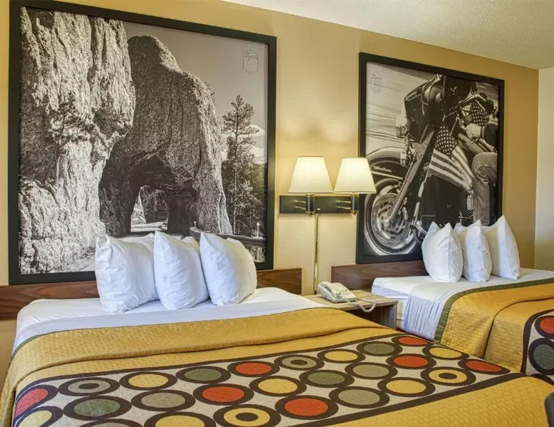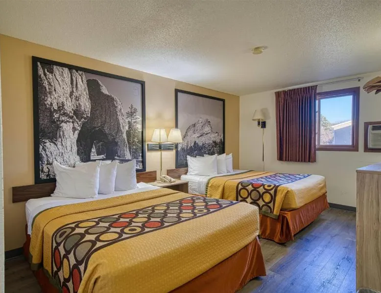 This Hot Springs hotel offers classically furnished rooms with free Wi-Fi and a cable TV. Evans Plunge Pool is less than 2 miles away. Wild Cave National Park is less than 20 minutes' drive from the hotel. Offering simply designed rooms, every accommodations at the Super 8 Hot Springs includes a large work desk. A refrigerator, microwave and tea and coffee-making facilities are featured in every room. This hotel serves a grab and go and the on-site business center offers a computer with free Wi-Fi. The hotel staff is available around the clock at the 24-hour front desk. The Hot Springs Super 8 is less than 50 miles away from Mount Rushmore. Wild Horse Sanctuary and Custer State Park are less than 25 miles from this hotel. The family room offers air conditioning, a coffee machine, as well as a private bathroom featuring a bath or a shower and a hairdryer. The family room features a seating area, a carpeted floor, heating, as well as a TV with cable channels. The unit offers 2 beds.