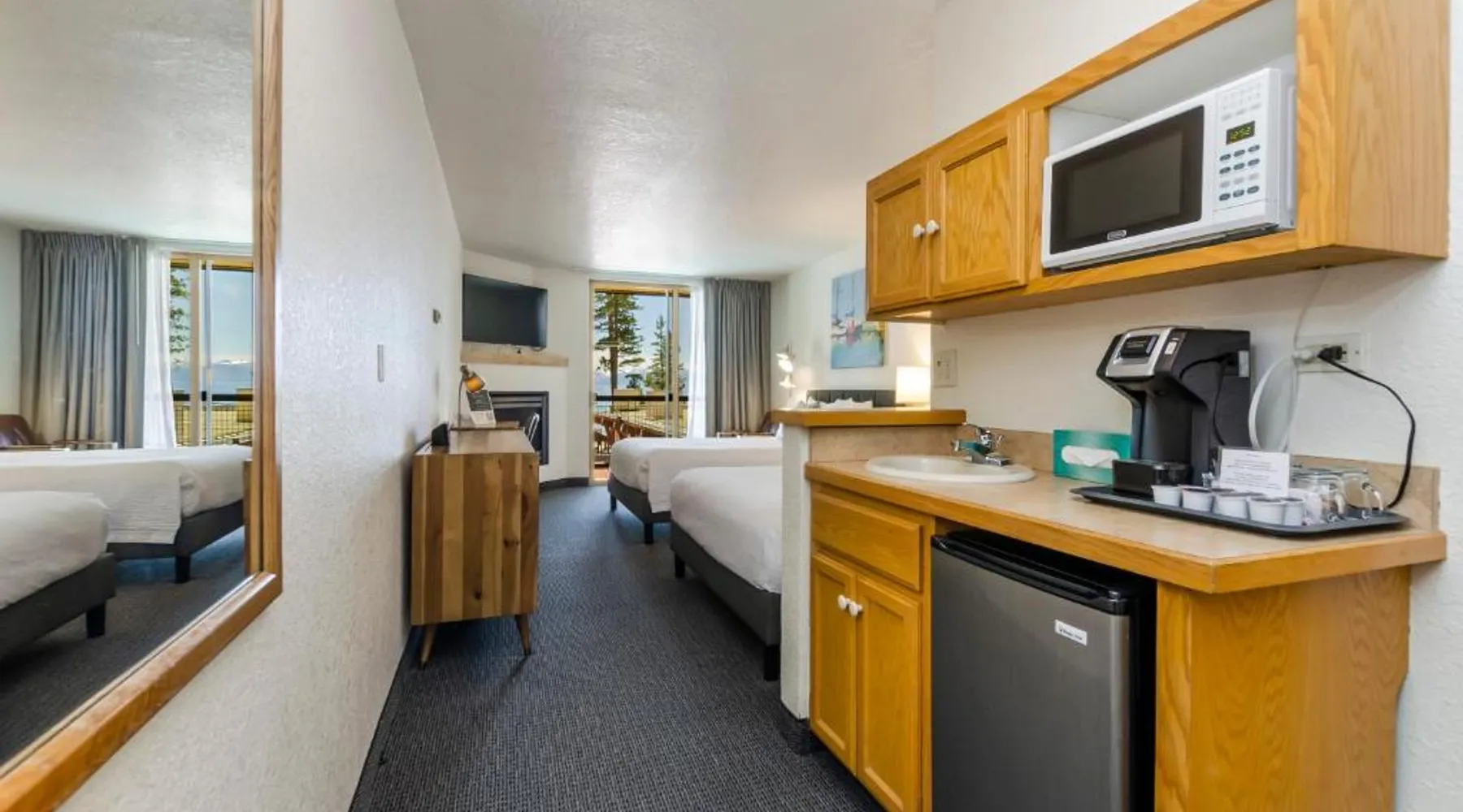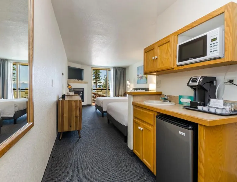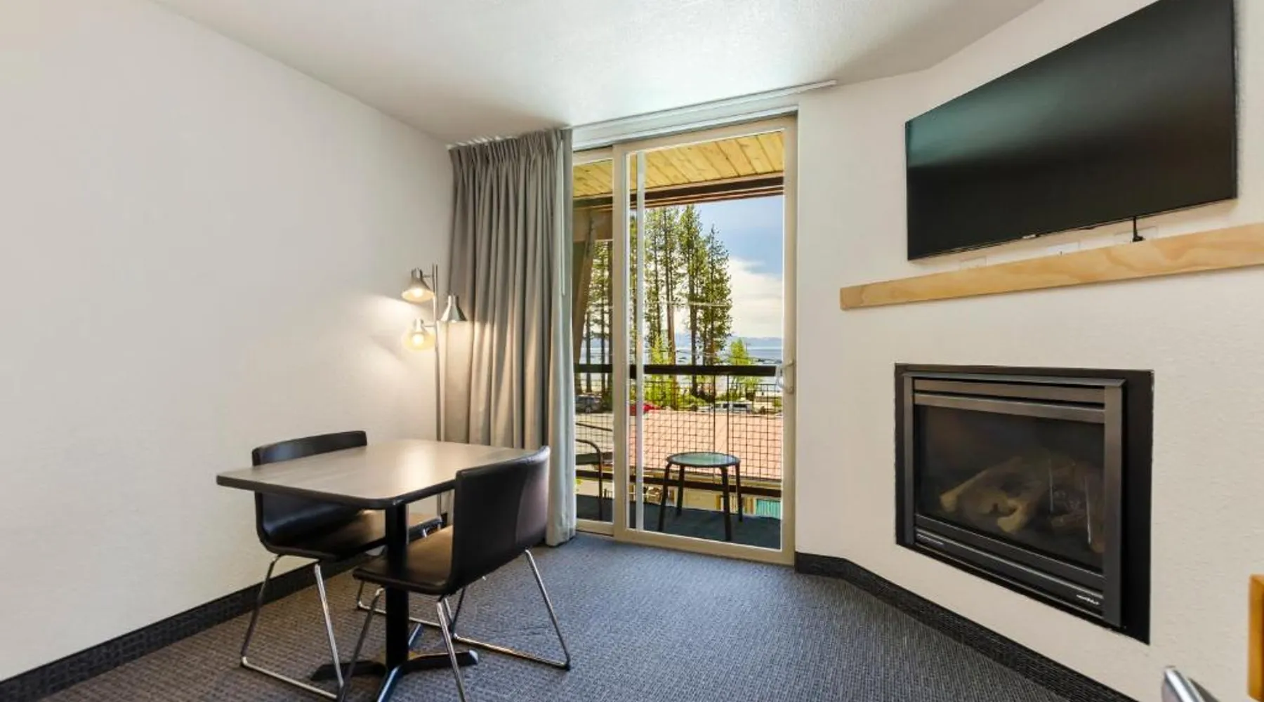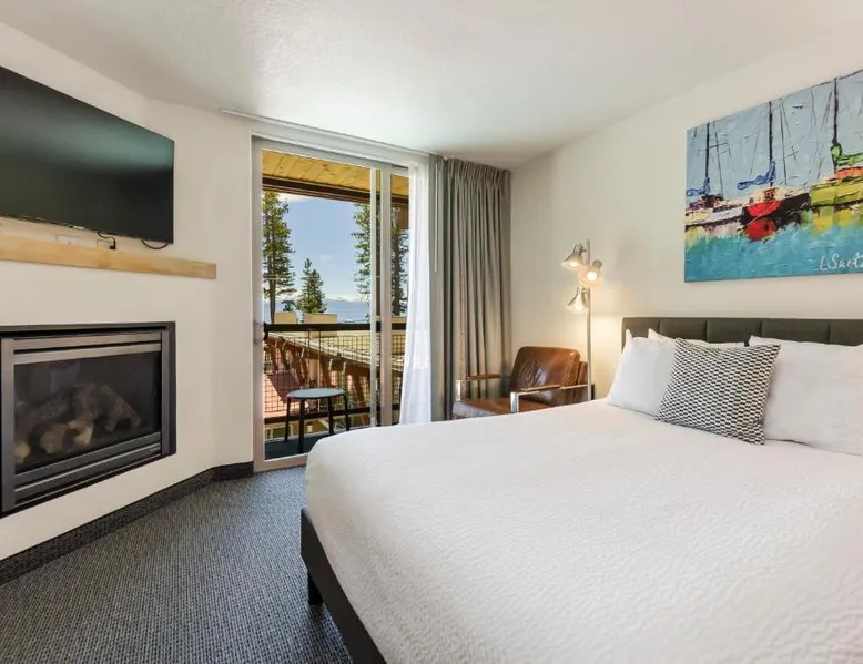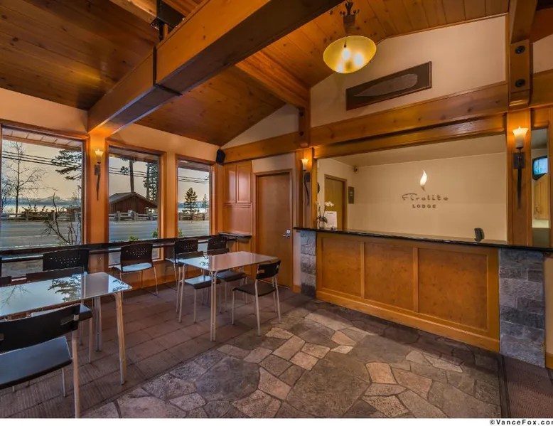 Located directly across from the sparkling waters of California's Lake Tahoe and offering access to beaches, boat ramps and marinas, this 100% smoke-free hotel features rooms with a gas fireplace. The Firelite Lodge conveniently places guests only moments away from many of the areas top attractions. A variety of water activities, ski trails, scenic hiking paths and more are nearby. Guests at the Firelite can relax after a long day in the hotel's outdoor hot tub, go for a refreshing swim in the swimming pool or check their email with complimentary wireless internet access. A variety of water activities including sailing school, kayak and standup paddle rental. Mountain biking and scenic hiking paths and more are nearby. A variety of restaurants and a 24/7 supermarket are located 0.6 mi away. This nonsmoking room is located on ground level or the second floor and features a gas fireplace and a 42-inch cable TV. A microwave, small fridge, coffee-making facilities and a hairdryer are included. One standard size parking spot per room included free of charge. There is an additional charge for a second parking spot or for oversize vehicles. The property's parking space is limited, please contact them prior to arrival to confirm availability. Please note: this property is NOT pet friendly. Thank you for understanding.