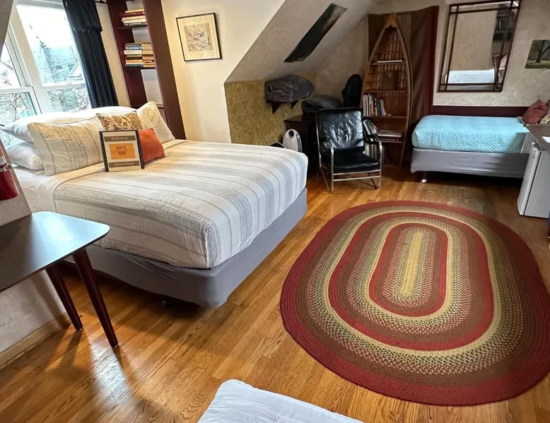 Comfortable Accommodations: Ray's Bucktown Bed and Breakfast in Chicago offers family rooms with private bathrooms, air-conditioning, and garden views. Each room includes a work desk, TV, and free WiFi. Relaxing Facilities: Guests can enjoy spa facilities, a sauna, sun terrace, and indoor play area. Additional amenities include a steam room, hot tub, and garden views. Delicious Breakfast: A variety of breakfast options are available, including continental, American, vegetarian, vegan, and gluten-free. Fresh pastries, pancakes, and warm dishes are served daily. Convenient Location: Located 11 mi from Midway International Airport, the property is near Lincoln Park Zoo and Wrigley Field, each 3.1 mi away. Other attractions include the Chicago Museum of Contemporary Art and Willis Tower, each 4.3 mi distant. This triple room with a spa bath includes a flat-screen TV with a DVR and a DVD player. It also includes luxury bedding. Also known as the East Room. Please note that this is a garden-level room.