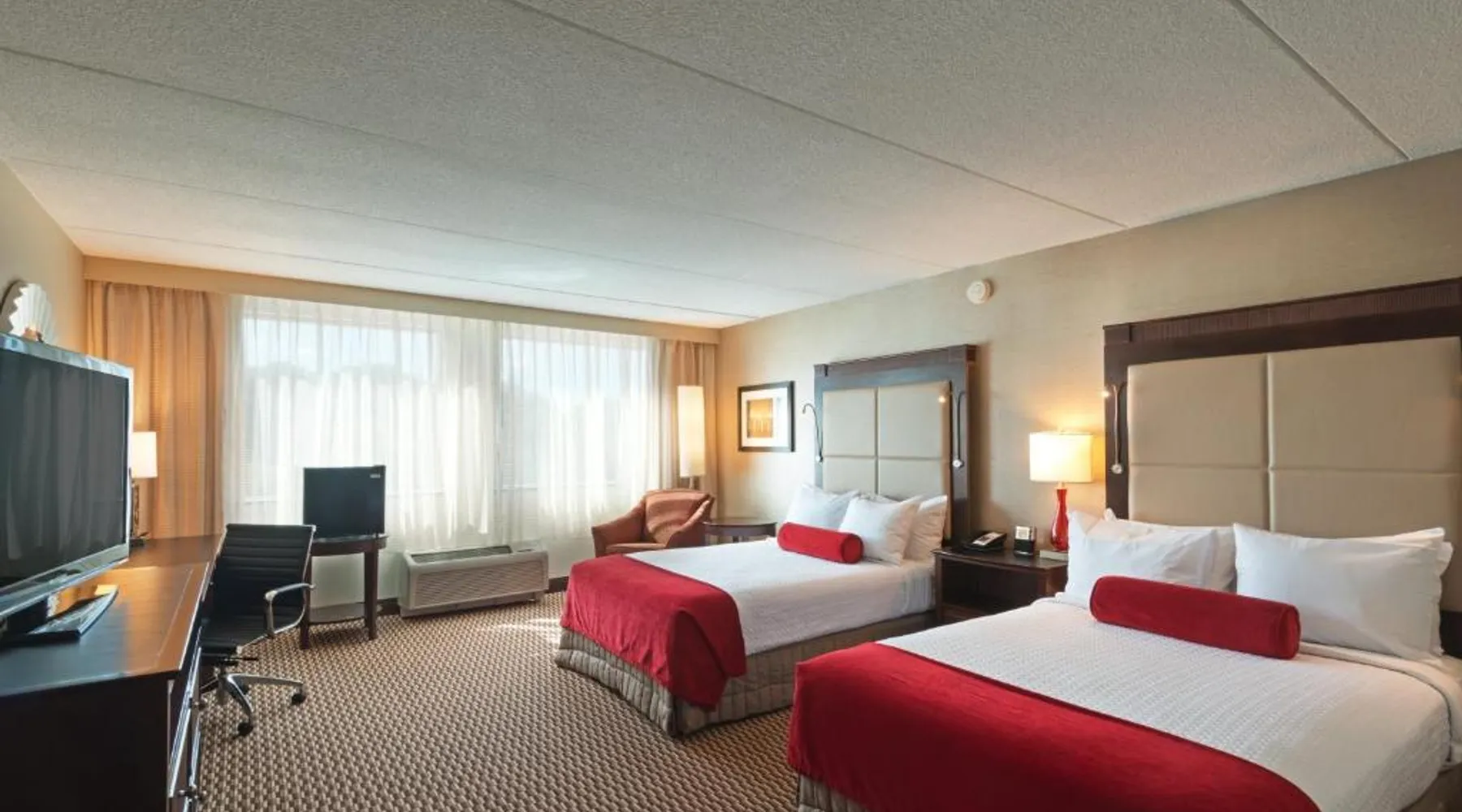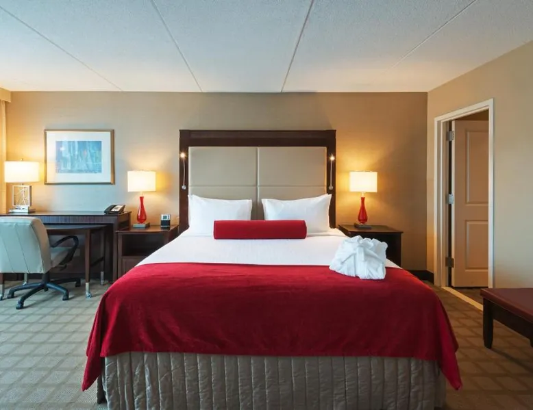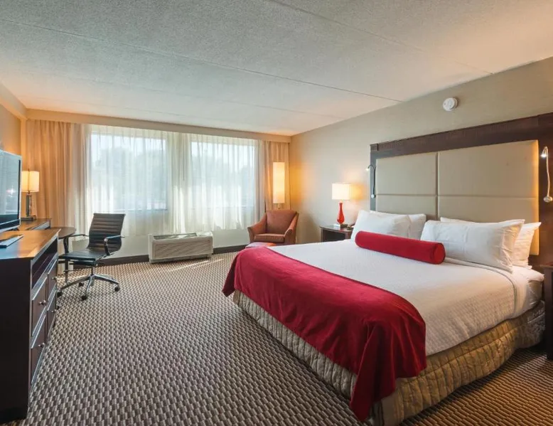 Featuring an on-site restaurant, indoor pool and free shuttles within a 5 mi radius, this Woburn, Massachusetts hotel is 6.2 mi from Stone Memorial Zoo. Its spacious rooms offer free Wi-Fi. Each room at Crowne Plaza Boston - Woburn provides a desk, comfortable seating area and cable TV. The contemporary rooms also have a coffee maker. Room service is available. Breakfast, lunch and dinner are served at Scoreboard Sports Bar and Grill, featuring steaks, fresh seafood and Italian cuisine. The hotel offers a convenience store and car rentals. Guests can also enjoy the convenience of the on-site gym and business center. Crowne Plaza Woburn is 14 mi from the University of Harvard. It is within 14 mi of Boston and 17 mi of General Edward Lawrence Logan International Airport. This room features cable TV, a seating area, and a work desk.