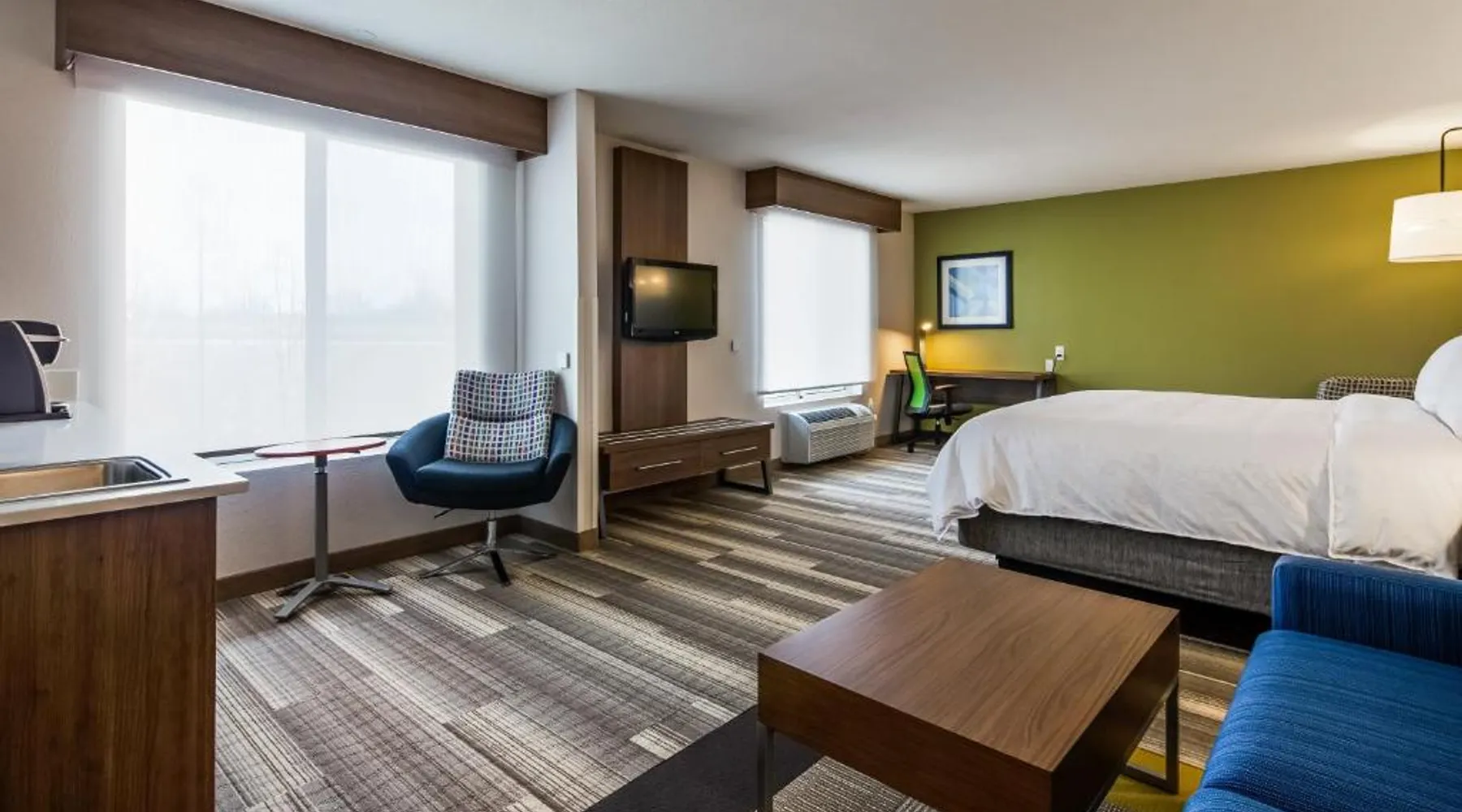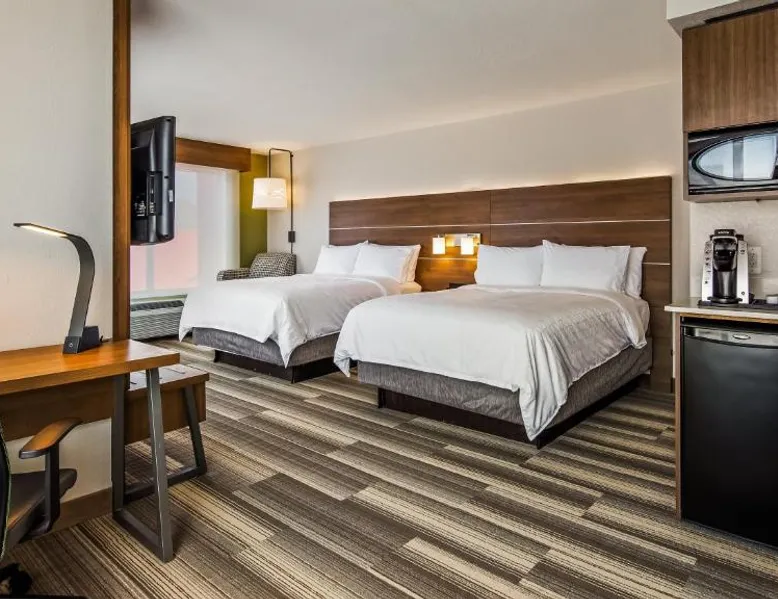 Comfortable Accommodations: Holiday Inn Express & Suites Detroit - Farmington Hills by IHG in Northville offers air-conditioned rooms with private bathrooms, tea and coffee makers, and free WiFi. Each room includes a work desk, TV, and wardrobe. Leisure Facilities: Guests can enjoy a saltwater swimming pool, indoor pool, and fitness center. Additional amenities include a lounge, fitness room, and free on-site parking. Convenient Location: Located 19 mi from Detroit Metro Airport, the hotel is near attractions such as Detroit Golf Club (17 mi) and TCF Center (27 mi). Guests appreciate the breakfast provided by the property and the value for money of the food. Featuring free toiletries, this suite includes a private bathroom with a bath, a shower and a hairdryer. The suite's kitchenette, which has a refrigerator and a microwave, is available for cooking and storing food. The air-conditioned suite features a flat-screen TV with cable channels, a tea and coffee maker, a seating area, a wardrobe as well as a quiet street view. The unit has 2 beds.