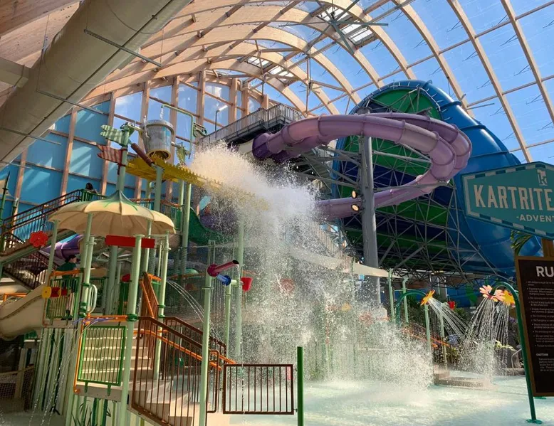 Located in the scenic Catskills Region, The Kartrite Resort and Indoor Waterpark features New York's largest indoor water park complete with rides, slides, swimming pools, and a surf simulator. All 324 guest suites are fitted with a microwave, fridge and coffee machine as well as a seating area and private bathroom. Select suites offer a terrace or balcony. The property has 6 on-site restaurants including Harvey’s Wallbanger serving pub fare and craft beers, Highline offering hot coffee and grab and go food, fine dining at Bixby’s Derby, Eat.Eat.Eat, which serves a buffet breakfast and signature dinners. Surfside Grill offers American cuisine in the waterpark along with Bar mez serving up pool side cocktails, while Pop's Sweet Shoppe is filled with candy, ice cream, fudge and so much more. The property offers a variety of activities including, an arcade with over 100 games, laser tag, a high ropes course, a mini bowling alley, a climbing wall, virtual reality experiences, hiking trails and more, All rooms come with 4 waterpark passes. Waterpark passes are required for all guests ages 3 and up. Additional passes are available for $75.00 per person/per day upon check-in. A fitness center, spa, 24-hour front desk and the Americana gift shop can all be found at Kartrite Resort and Indoor Waterpark. The casino at Resorts World is located 1.7 mi from the property. This apartment features a microwave and seating area, and includes 4 waterpark passes
