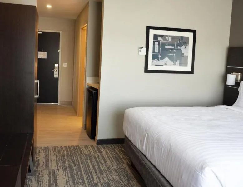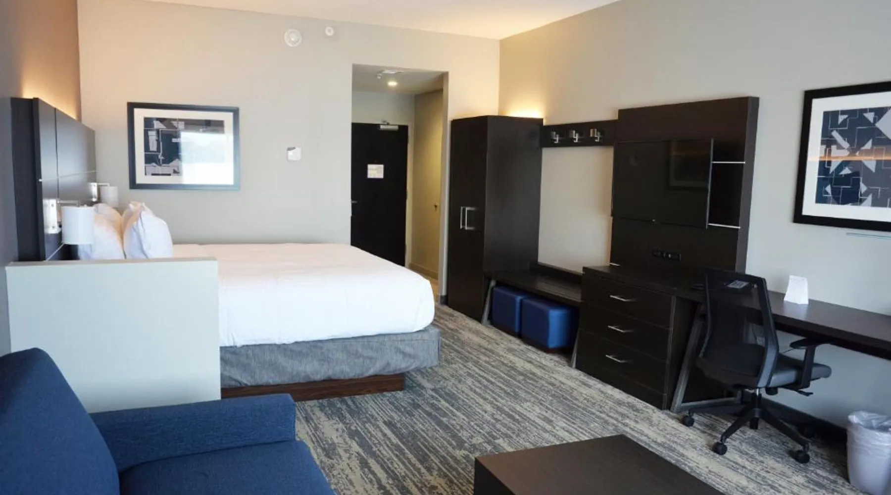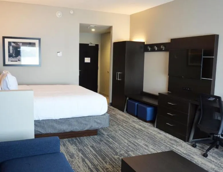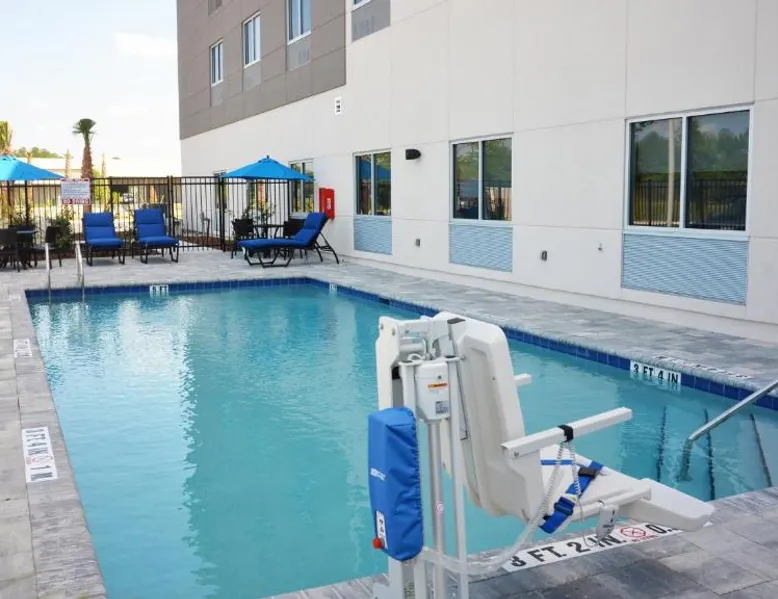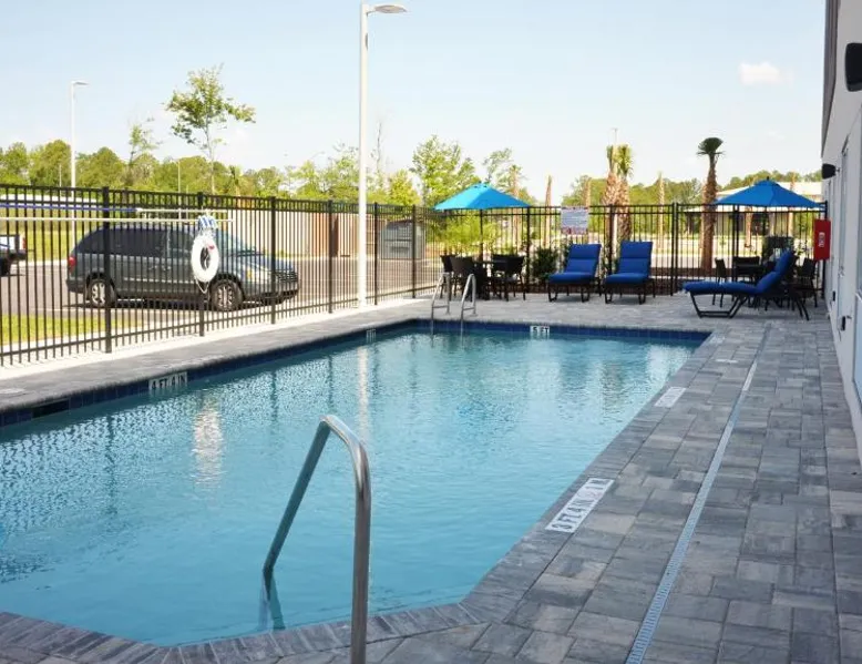 Comfortable Accommodations: Holiday Inn Express & Suites - Jacksonville W - I295 and I10 by IHG in Jacksonville offers rooms with air-conditioning, private bathrooms, and free WiFi. Each room includes a tea and coffee maker, hairdryer, and work desk. Leisure Facilities: Guests can enjoy a fitness center, sun terrace, and a year-round outdoor swimming pool. Additional amenities include a lounge, minimarket, and outdoor seating area. Convenient Location: Located 12 mi from Jacksonville International Airport, the hotel is near attractions such as Amtrak Station-Jax (5 mi) and Merrett Park (2.7 mi). Free on-site parking is available. Guest Satisfaction: Highly rated for room cleanliness, attentive staff, and comfortable beds. Offering free toiletries, this double room includes a private bathroom with a bath or a shower and a hairdryer. The spacious double room offers air conditioning, a tea and coffee maker, a wardrobe, a safe deposit box, as well as a flat-screen TV with cable channels.