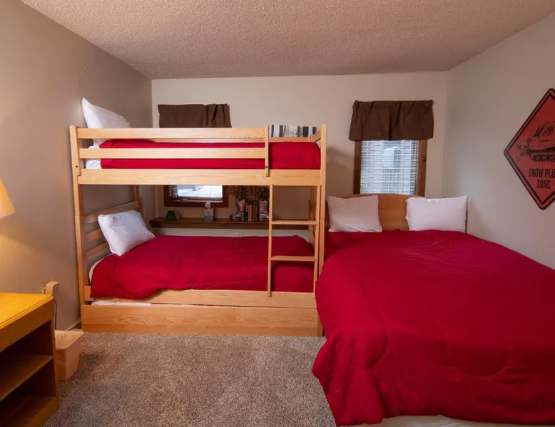 Accommodations Features: Okemo Mountain Lodging in Ludlow offers free WiFi, private bathrooms with free toiletries, and TVs. Each room includes a private bathroom and a comfortable space for relaxation. Amenities and Services: Guests enjoy free on-site private parking, ensuring convenience during their stay. The resort provides a welcoming environment with English-speaking reception staff available to assist with any needs. Activities and Attractions: Okemo Mountain Lodging is located 19 mi from Rutland State Airport. Nearby attractions include Dorsey Park at 1.1 mi and Gifford Woods State Park 23 mi away. Skiing enthusiasts can explore nearby ski resorts such as Killington Mountain (25 mi) and Stratton Mountain (27 mi). This apartment features a TV. The unit has 8 beds.