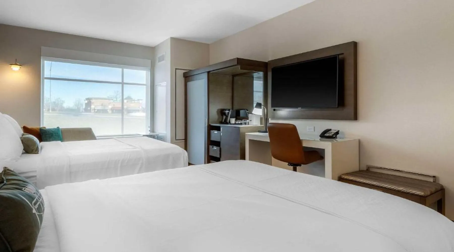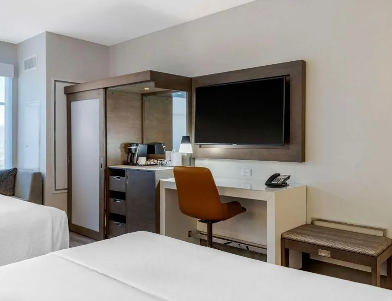 Comfortable Accommodations: Rooms feature private bathrooms, air-conditioning, and modern amenities including tea and coffee makers, hairdryers, and free WiFi. Guests appreciate the room cleanliness and comfortable seating areas. Exceptional Facilities: The hotel offers a fitness center, indoor swimming pool, and free airport shuttle service. Additional facilities include a restaurant serving American cuisine, bar, lounge, outdoor fireplace, and free on-site private parking. Prime Location: Located in Hanover, the hotel is 3.7 mi from Baltimore - Washington International Airport. Nearby attractions include Carroll Park and Sports Legends Museum At Camden Yards, each 12 mi away. Guests enjoy convenient access to Baltimore's Inner Harbor and Edgar Allen Pe Museum. Providing free toiletries, this family room includes a private bathroom with a bath, a shower and a hairdryer. This wheelchair accessible family room features air conditioning, a seating area with a flat-screen TV and a toilet with grab rails. The unit offers 2 beds.