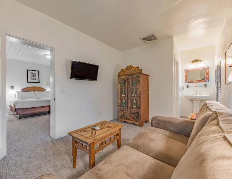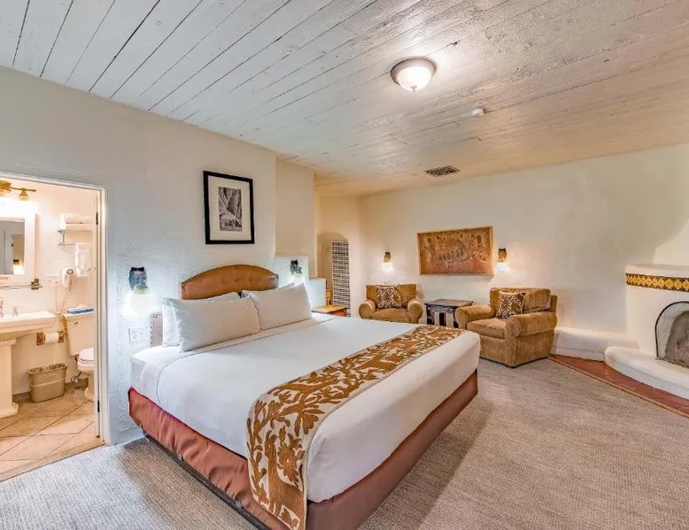 Nestled in Taos, New Mexico's historic district, this historic inn was built in the 1880s. The property offers unique guestrooms and suites with decorative kiva fireplacesa md guests can enjoy evening entertainment on site. Taos Pueblo is a 10-minute drive from Historic Taos Inn. Each accommodations at the property is individually decorated and some features include antique furnishings and viga ceilings. Each room also has a flat-screen TV and a private bathroom. The Adobe Bar at the Taos Historic Inn features live musical entertainment every evening. Guests can enjoy a margarita on the bar's front patio. Open for breakfast, lunch, dinner and weekend brunch, Doc Martin's Restaurant offers regional cuisine, along with over 400 wine selections. Angel Fire is 16 mi from The Historic Taos Inn, while Red River is 23 mi from the property. This air-conditioned double room is consisted of of a flat-screen TV with cable channels and a private bathroom. The unit has 2 beds.