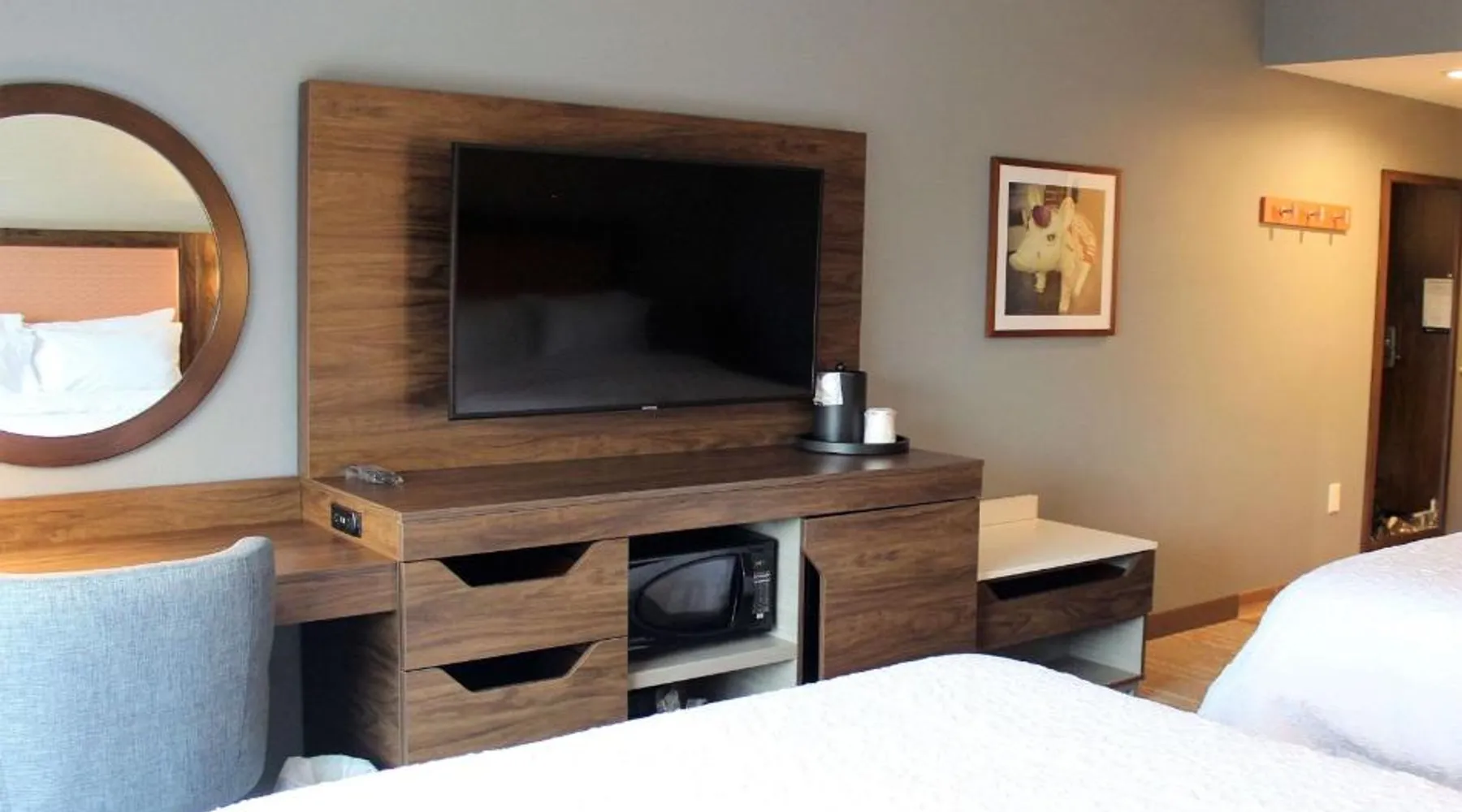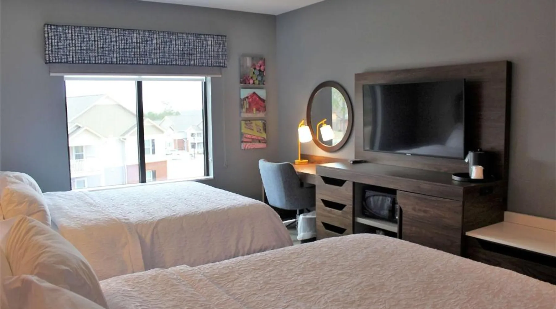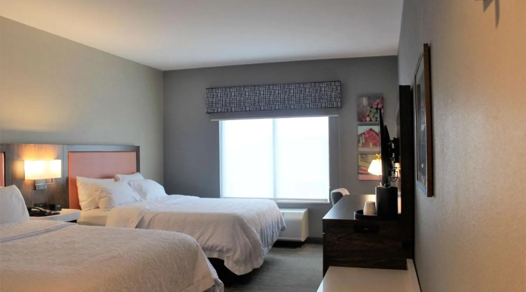 Comfortable Accommodations: Hampton Inn Lexington in Lexington offers family rooms with air-conditioning, tea and coffee makers, refrigerators, work desks, and microwaves. Free WiFi is available throughout the property. Leisure Facilities: Guests can enjoy a year-round outdoor swimming pool, fitness room, and a 24-hour front desk. Free on-site private parking is provided. Convenient Location: Located 39 mi from Piedmont Triad Airport, the hotel is near M C Benton Jr Convention Center (24 mi), LJVM Coliseum and Bb&T Field (27 mi each). Highly rated for staff, room cleanliness, and breakfast. The quadruple room offers air conditioning and a tea and coffee maker. The unit has 2 beds.