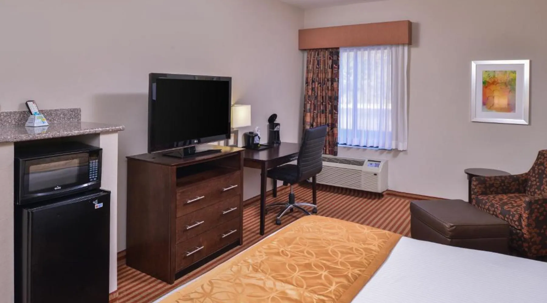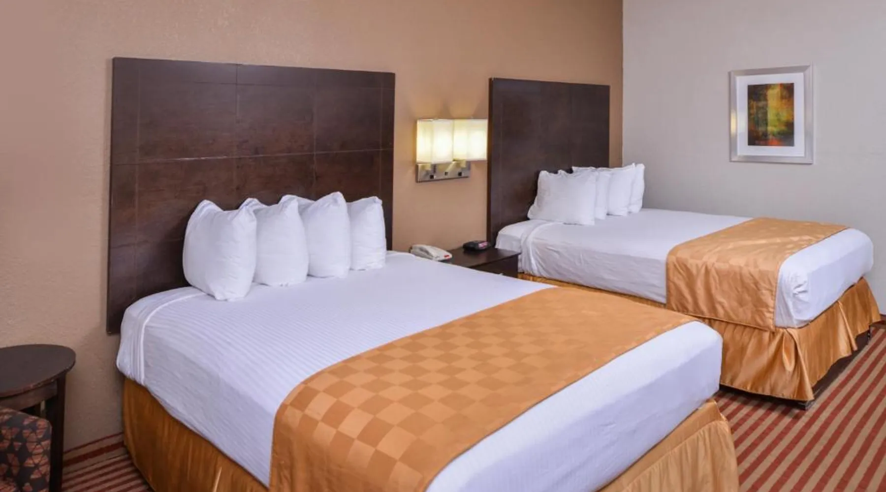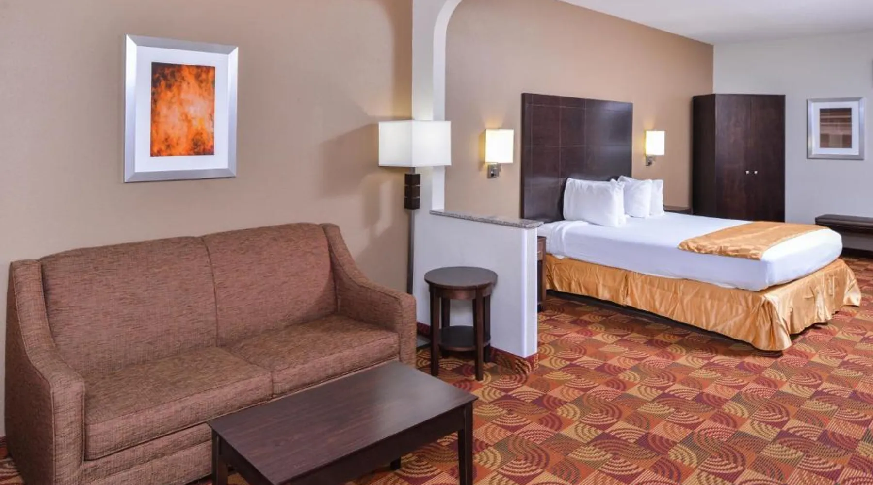 Comfortable Accommodations: Americas Best Value Inn & Suites Bastrop in Bastrop offers air-conditioned rooms with private bathrooms, free WiFi, and pool views. Each room includes a tea and coffee maker, hairdryer, and free toiletries. Exceptional Facilities: Guests can enjoy a saltwater swimming pool, lounge, and 24-hour front desk. Additional amenities include a business area, housekeeping service, and free on-site private parking. Convenient Location: Located 23 mi from Monroe Regional Airport and 25 mi from Malone Stadium, the hotel provides easy access to local attractions. Guests appreciate the attentive staff and the convenient location. The unit offers 2 beds.