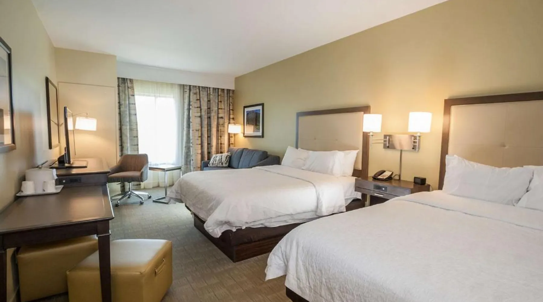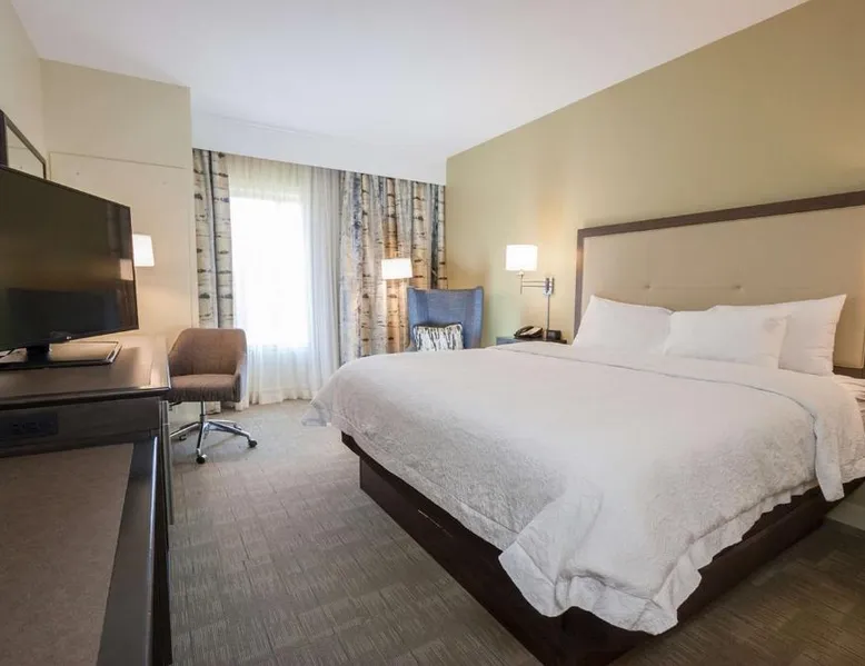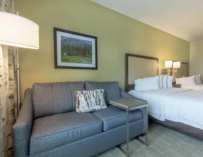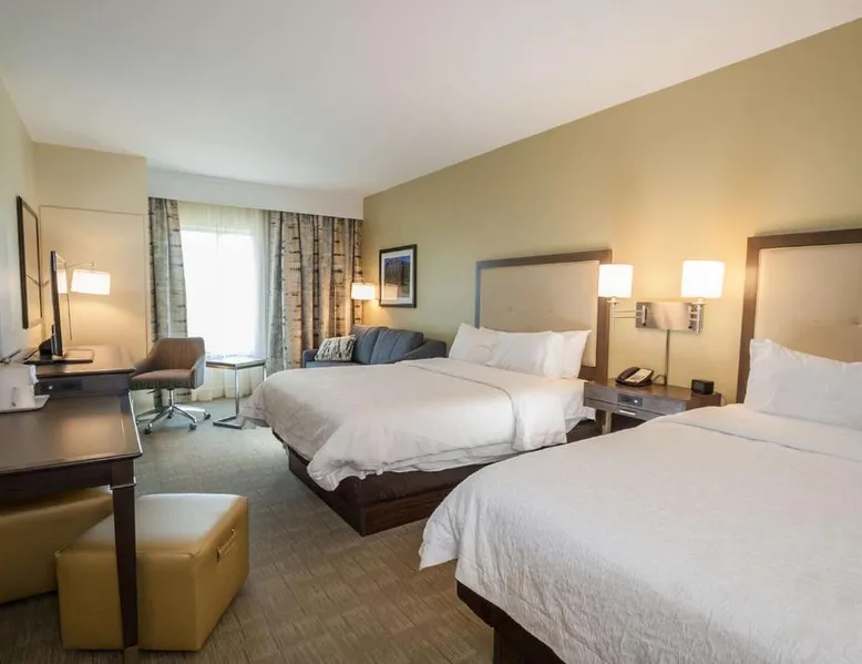 Comfortable Accommodations: Hampton Inn - Great Falls in Great Falls offers clean rooms with free WiFi, air-conditioning, and modern amenities. Guests enjoy a fitness room, hot tub, and indoor swimming pool. Convenient Facilities: The hotel provides a free airport shuttle service, 24-hour front desk, electric vehicle charging station, and car hire. Free on-site parking is available, along with a elevator and tea and coffee makers in each room. Prime Location: Located 3.1 mi from Great Falls International Airport, the hotel is near attractions such as the Lewis and Clark Interpretive Center and Giant Springs State Park. Highly rated for room cleanliness and excellent service. The unit has 2 beds.