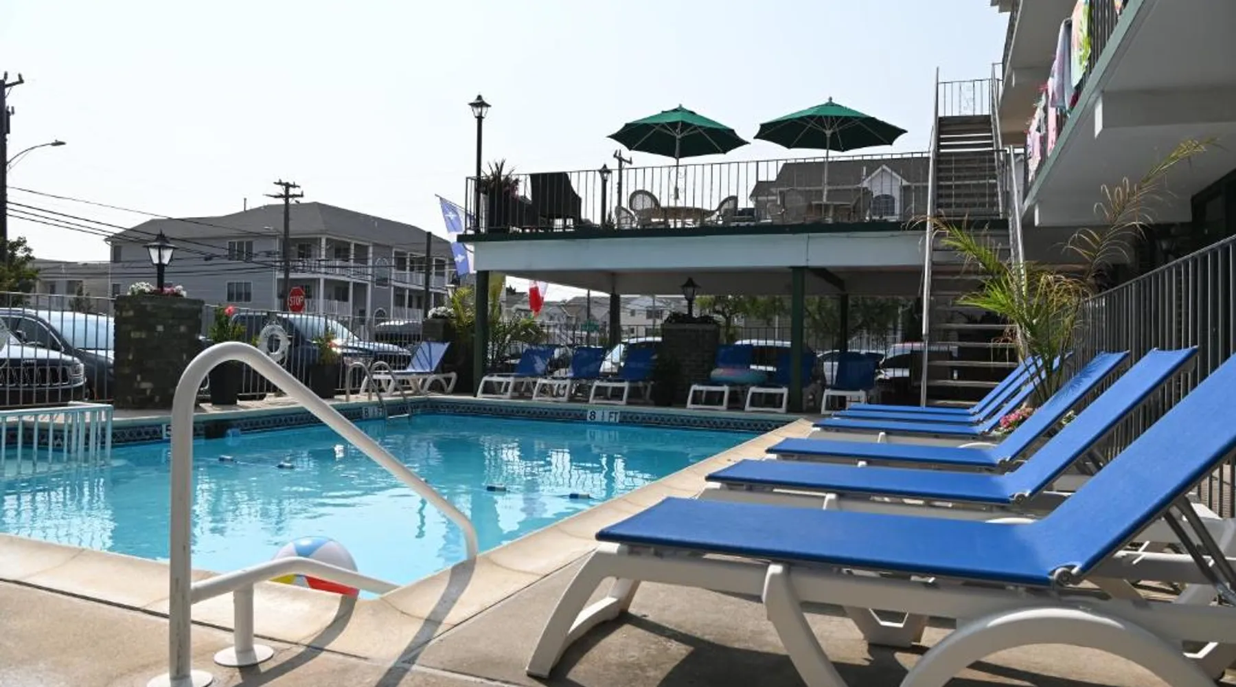 Comfortable Accommodations: Grecian Garden Motel in North Wildwood offers air-conditioned rooms with private bathrooms, balconies, and free WiFi. Each room includes a sofa bed, refrigerator, and TV, ensuring a pleasant stay. Leisure Facilities: Guests can relax on the sun terrace or take a dip in the seasonal outdoor swimming pool. The property features an outdoor seating area, barbecue facilities, and free on-site private parking. Convenient Location: Located 39 mi from Atlantic City International Airport, the motel is a short walk from North Wildwood Beach (2953 feet) and close to attractions such as Splash Zone Water Park (1 mi) and Morey'S Piers (1.2 mi). Highly rated for its attentive staff, clean rooms, and swimming pool. The private pool is a top feature of this double room. The spacious double room features air conditioning, soundproof walls, as well as a private bathroom boasting a bath and a shower. This double room offers a sofa, a flat-screen TV with cable channels and a terrace. The unit has 3 beds.