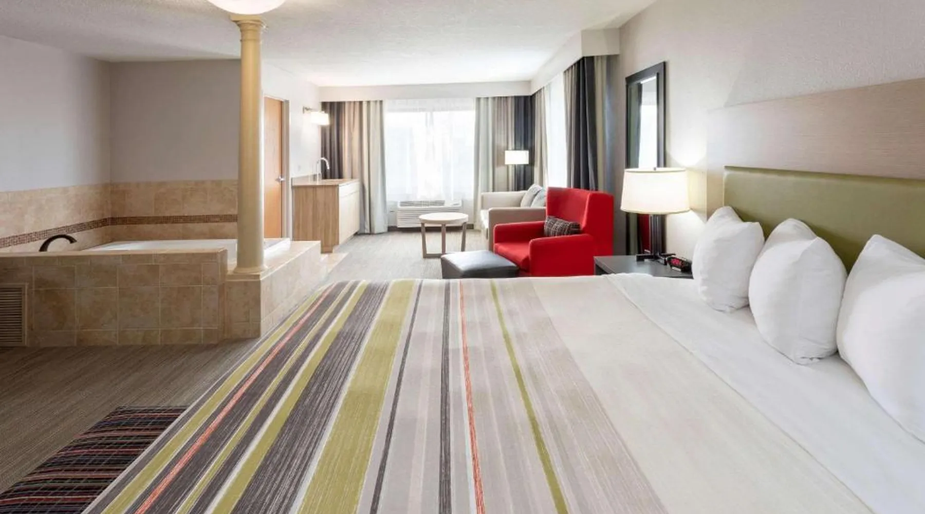 Comfortable Accommodations: Country Inn & Suites by Radisson in Fargo offers family rooms with air-conditioning, private bathrooms, and free WiFi. Each room includes a work desk, TV, and complimentary toiletries. Exceptional Facilities: Guests can enjoy a fitness center, indoor swimming pool, terrace, and outdoor seating area. Additional amenities include a lounge, business area, and free on-site parking. Delicious Breakfast: A continental buffet breakfast is served daily, featuring juice, pancakes, and fruits. The property staff provide excellent service and maintain high standards of room cleanliness. Convenient Location: Located 4.3 mi from Hector International Airport, the hotel is near attractions such as Red River Zoo (2.5 mi) and Fargo Civic Center (3.7 mi). Free on-site parking and bicycle parking enhance the stay. This room includes free Wi-Fi and a spacious work desk. A fridge and microwave are also included.