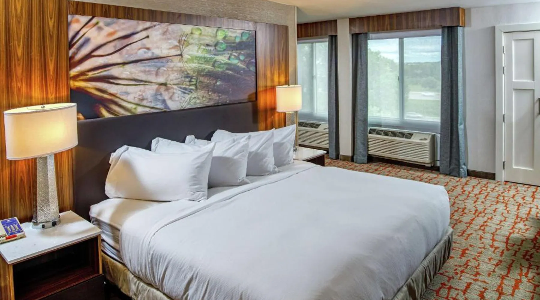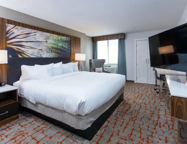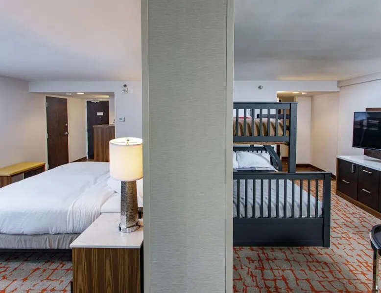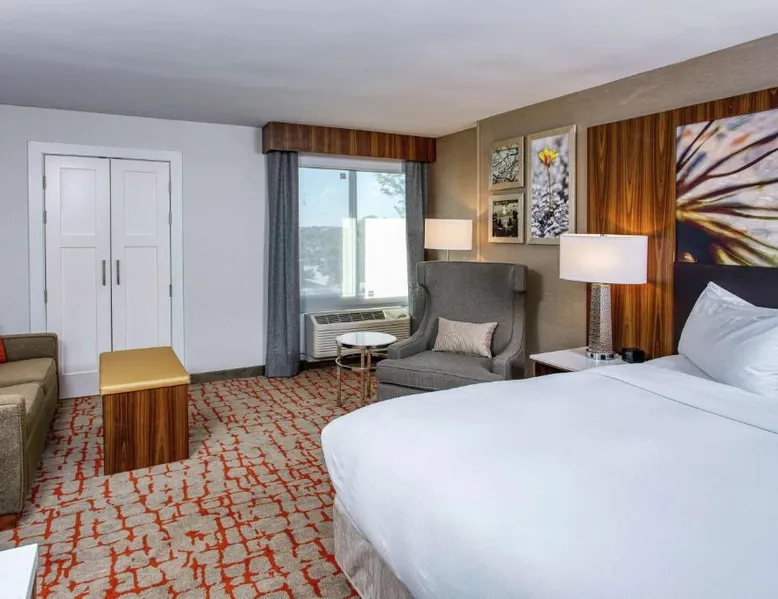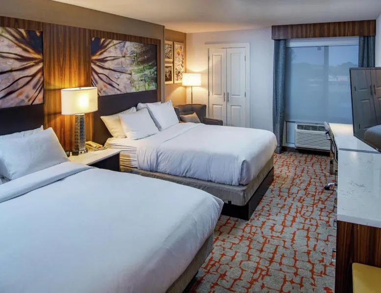 Comfortable Accommodations: DoubleTree by Hilton Appleton in Appleton offers family rooms with air-conditioning, free WiFi, and modern amenities. Each room includes a work desk, refrigerator, and TV. Dining and Leisure: Guests can enjoy an indoor swimming pool, fitness center, and a restaurant serving American cuisine. The on-site bar provides a relaxing atmosphere. Convenient Location: Located 3.1 mi from Outagamie County Regional Airport, the hotel is near attractions such as Fox Cities Stadium (2.3 mi) and The History Museum at the Castle (3.7 mi). Free on-site private parking is available. Guest Services: The hotel offers a 24-hour front desk, concierge service, and room service. Additional facilities include a lounge, fitness room, and business area. The double room features air conditioning, a tea and coffee maker, a safe deposit box, heating, as well as a flat-screen TV with cable channels. The unit has 1 bed.