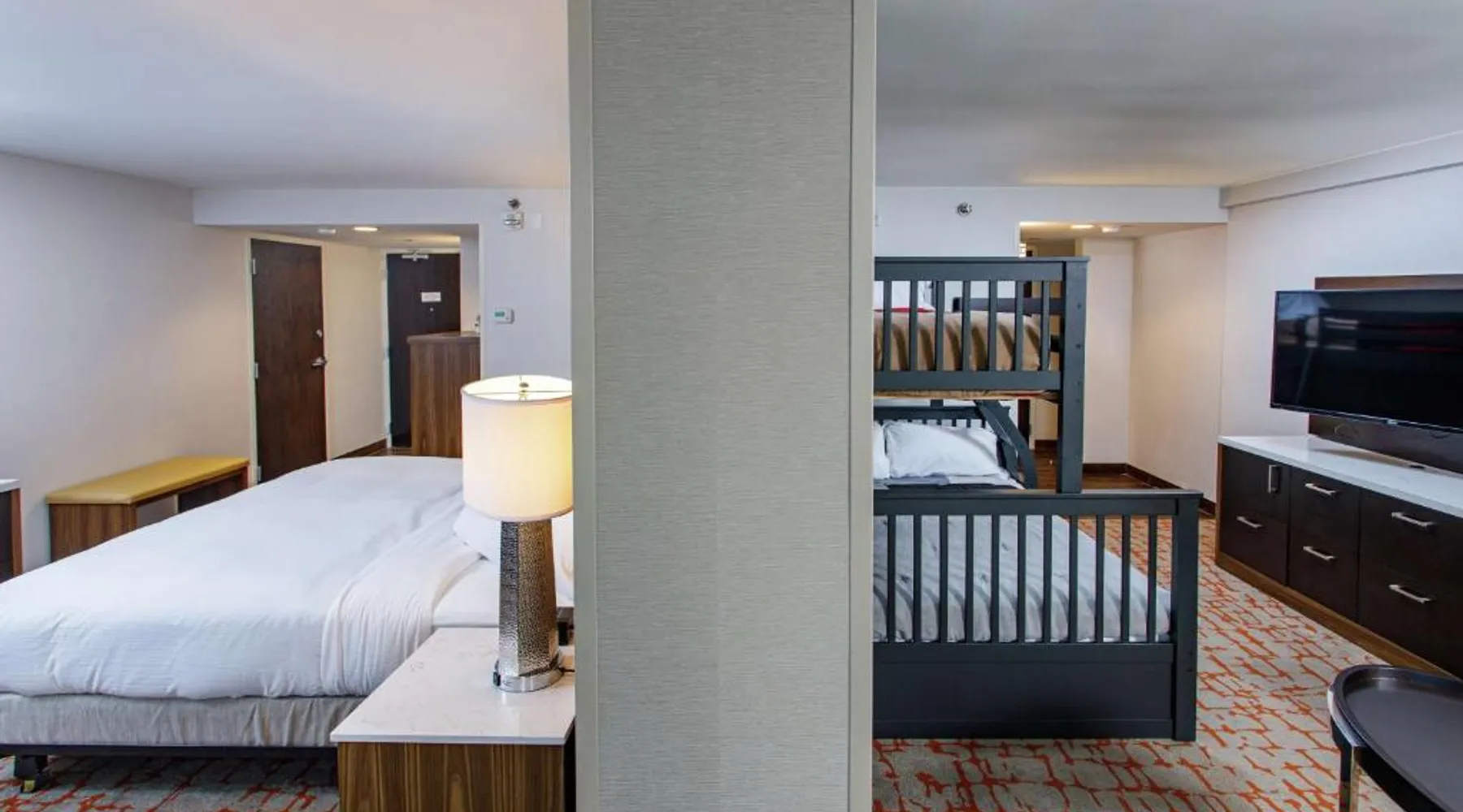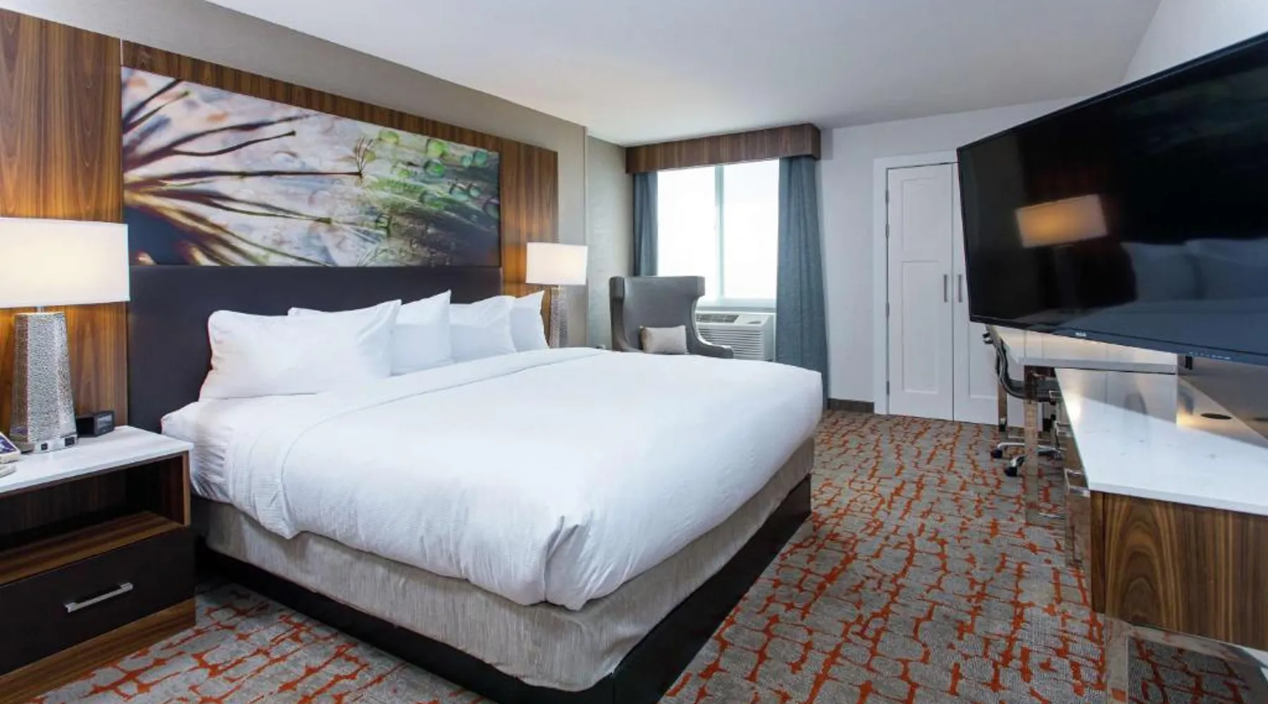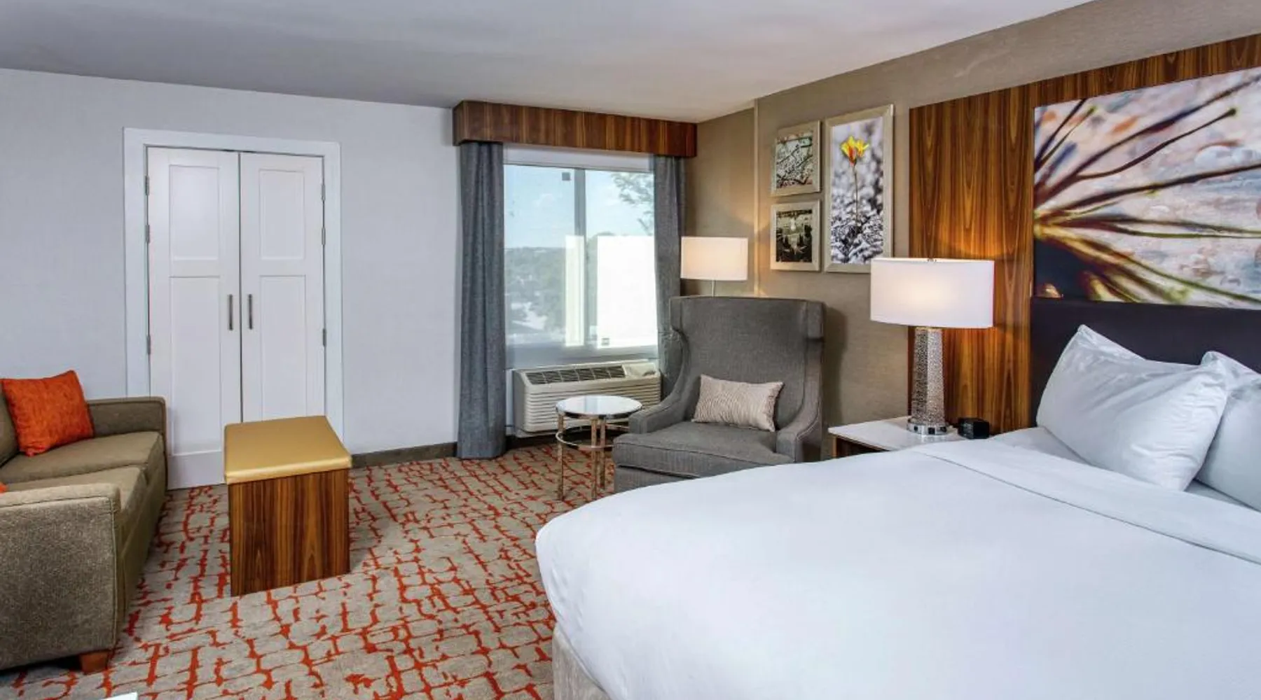 Comfortable Accommodations: DoubleTree by Hilton Appleton in Appleton offers family rooms with air-conditioning, free WiFi, and modern amenities. Each room includes a work desk, refrigerator, and TV. Dining and Leisure: Guests can enjoy an indoor swimming pool, fitness center, and a restaurant serving American cuisine. The on-site bar provides a relaxing atmosphere. Convenient Location: Located 3.1 mi from Outagamie County Regional Airport, the hotel is near attractions such as Fox Cities Stadium (2.3 mi) and The History Museum at the Castle (3.7 mi). Free on-site private parking is available. Guest Services: The hotel offers a 24-hour front desk, concierge service, and room service. Additional facilities include a lounge, fitness room, and business area. The double room features air conditioning, a tea and coffee maker, a safe deposit box, heating, as well as a flat-screen TV with cable channels. The unit has 1 bed.