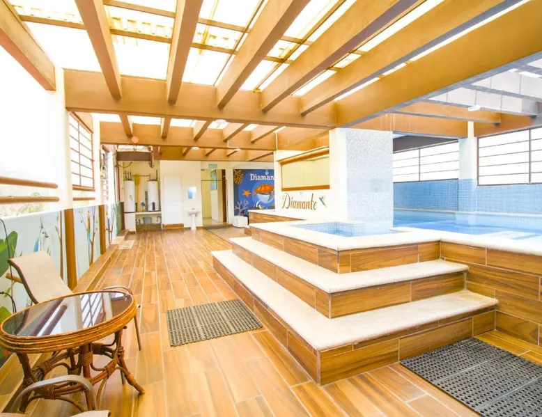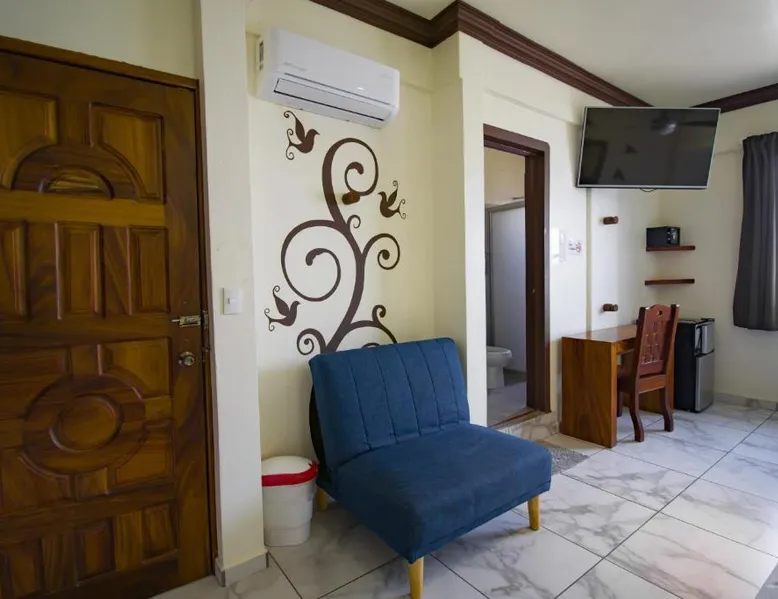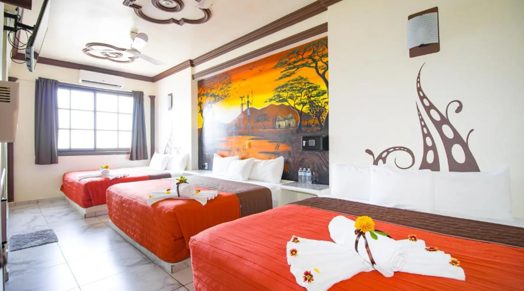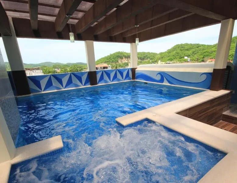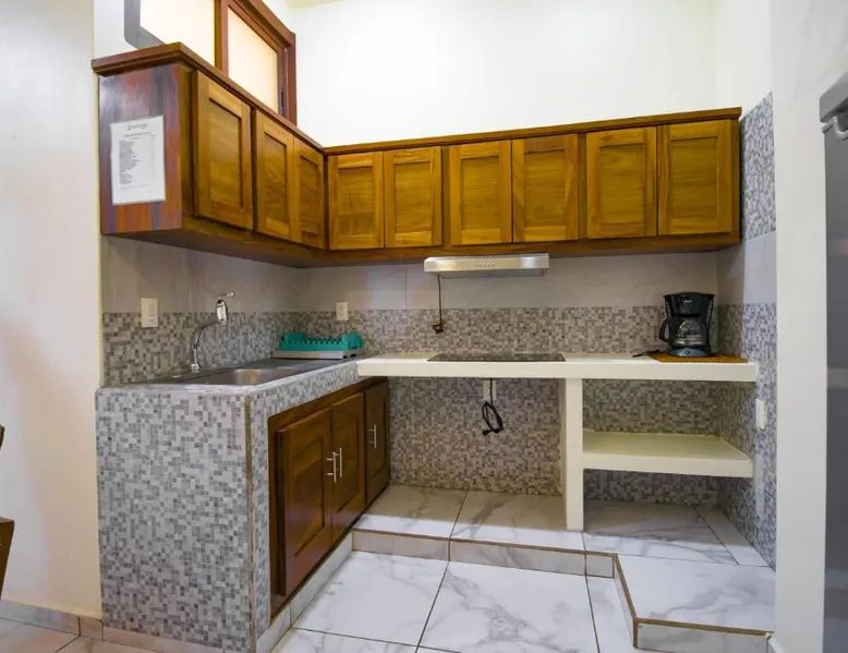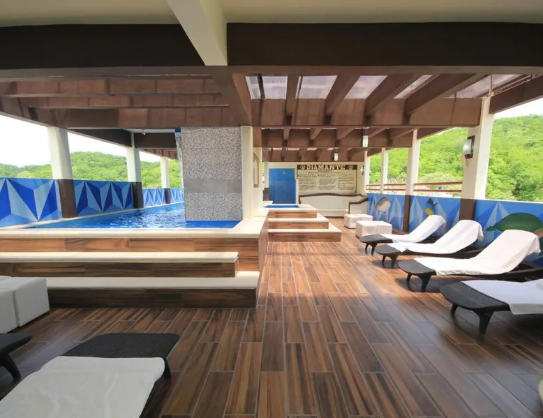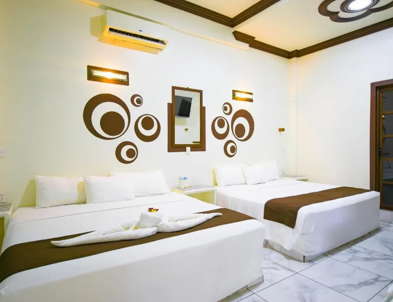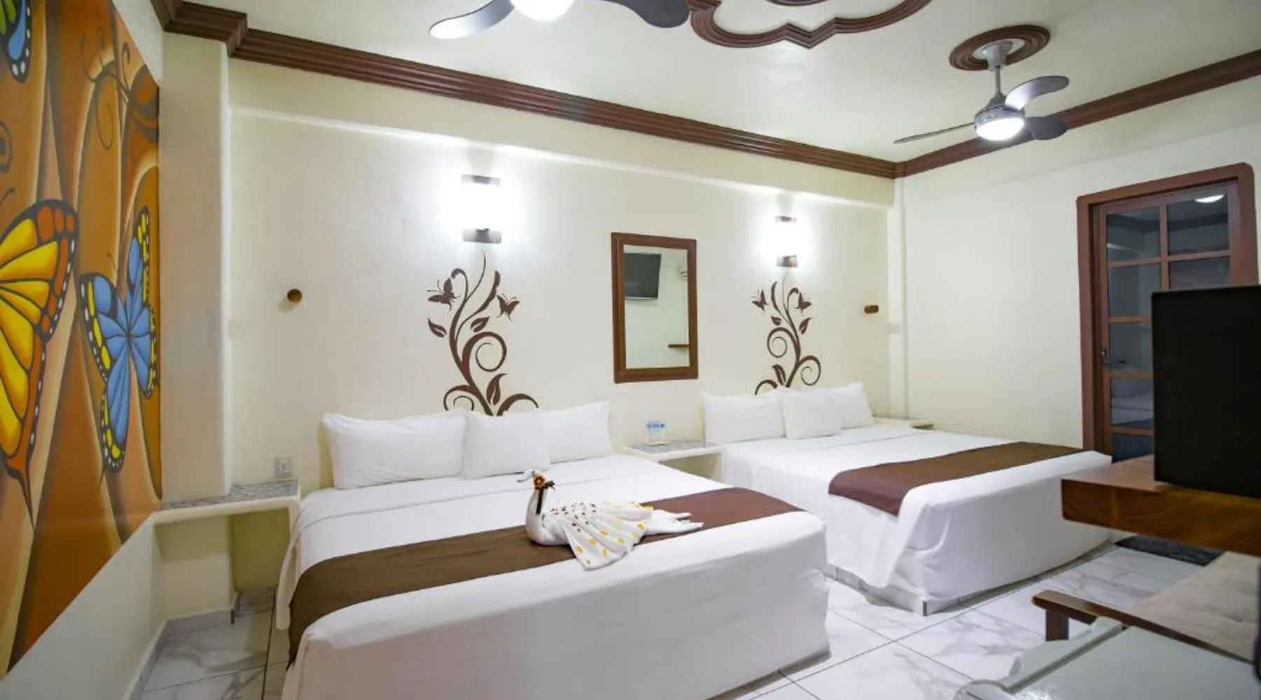 Comfortable Accommodations: Hotel Diamante in Bahías de Huatulco offers family rooms with air-conditioning, private bathrooms, and free WiFi. Each room includes a refrigerator, TV, and free toiletries. Exceptional Facilities: Guests can enjoy a rooftop swimming pool, hot tub, and public bath. Additional amenities include a 24-hour front desk, housekeeping service, room service, bike hire, tour desk, and luggage storage. Prime Location: Located 8.1 mi from Huatulco International Airport, the hotel is near Santa Cruz Beach (1.2 mi), Downtown Huatulco/Crucecita (2-minute walk), and Huatulco National Park (4.3 mi). Free on-site private parking is available. Guest Satisfaction: Highly rated for room cleanliness, Hotel Diamante ensures a pleasant stay for all visitors. Boasting 2 bedrooms and 1 bathroom, this spacious suite has a well-fitted kitchen and a dining area. The suite's kitchen, which has a refrigerator and kitchenware, is available for cooking and storing food. The suite offers air conditioning, a tea and coffee maker, a safe deposit box, a sofa and a flat-screen TV with cable channels. The unit offers 6 beds.