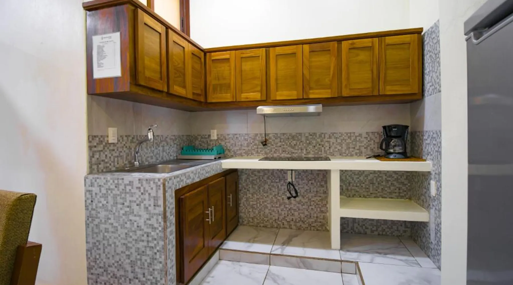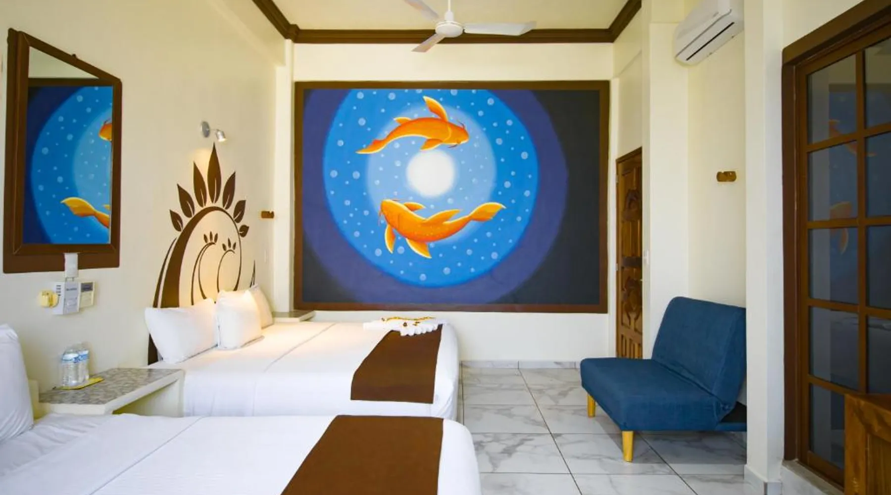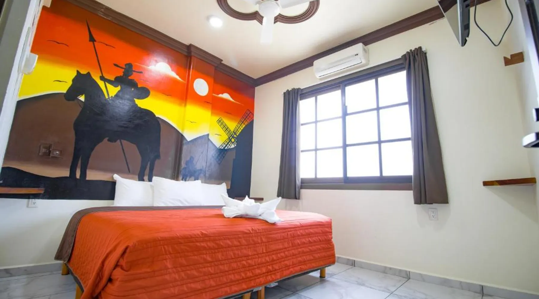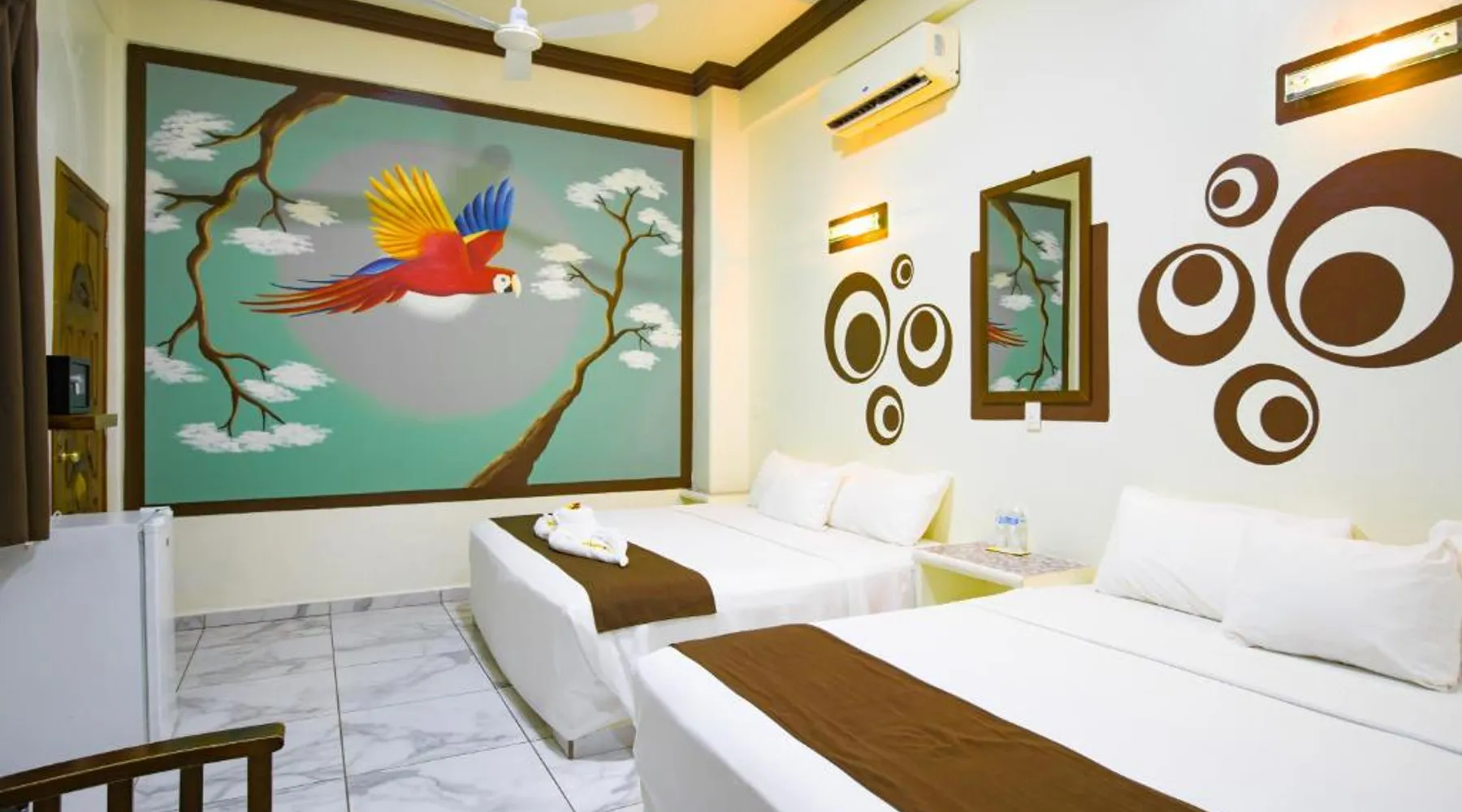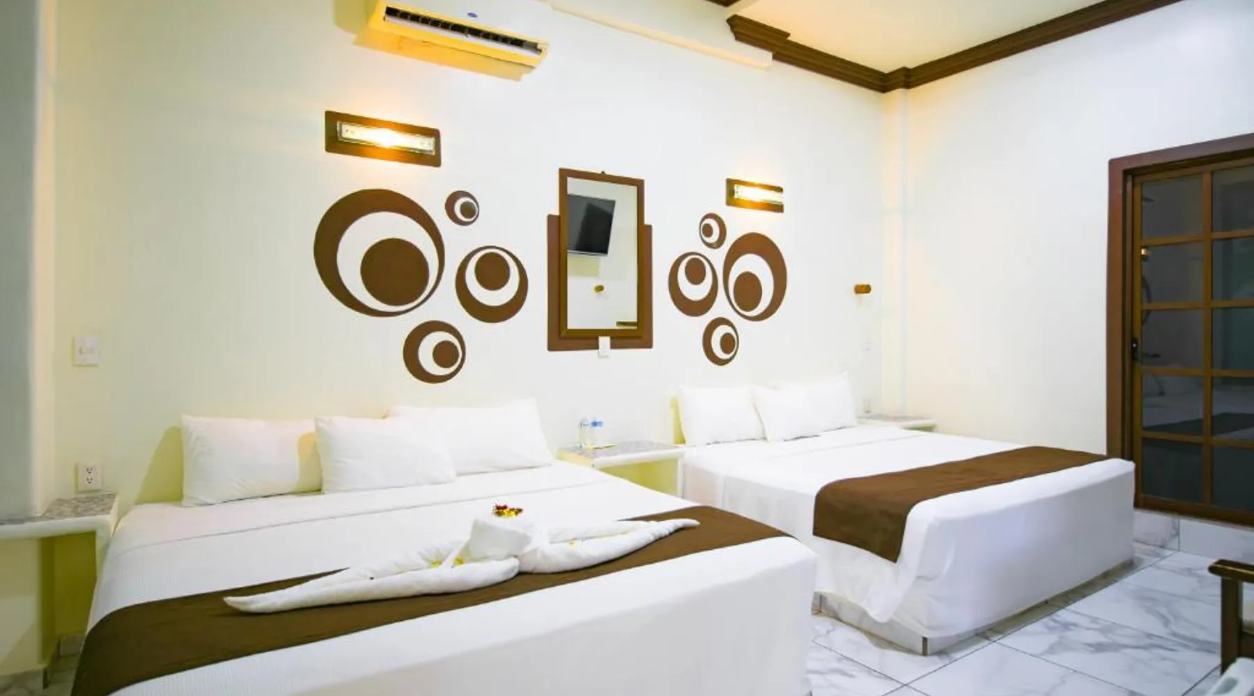 Comfortable Accommodations: Hotel Diamante in Bahías de Huatulco offers family rooms with air-conditioning, private bathrooms, and free WiFi. Each room includes a refrigerator, TV, and free toiletries. Exceptional Facilities: Guests can enjoy a rooftop swimming pool, hot tub, and public bath. Additional amenities include a 24-hour front desk, housekeeping service, room service, bike hire, tour desk, and luggage storage. Prime Location: Located 8.1 mi from Huatulco International Airport, the hotel is near Santa Cruz Beach (1.2 mi), Downtown Huatulco/Crucecita (2-minute walk), and Huatulco National Park (4.3 mi). Free on-site private parking is available. Guest Satisfaction: Highly rated for room cleanliness, Hotel Diamante ensures a pleasant stay for all visitors. Boasting 2 bedrooms and 1 bathroom, this spacious suite has a well-fitted kitchen and a dining area. The suite's kitchen, which has a refrigerator and kitchenware, is available for cooking and storing food. The suite offers air conditioning, a tea and coffee maker, a safe deposit box, a sofa and a flat-screen TV with cable channels. The unit offers 6 beds.