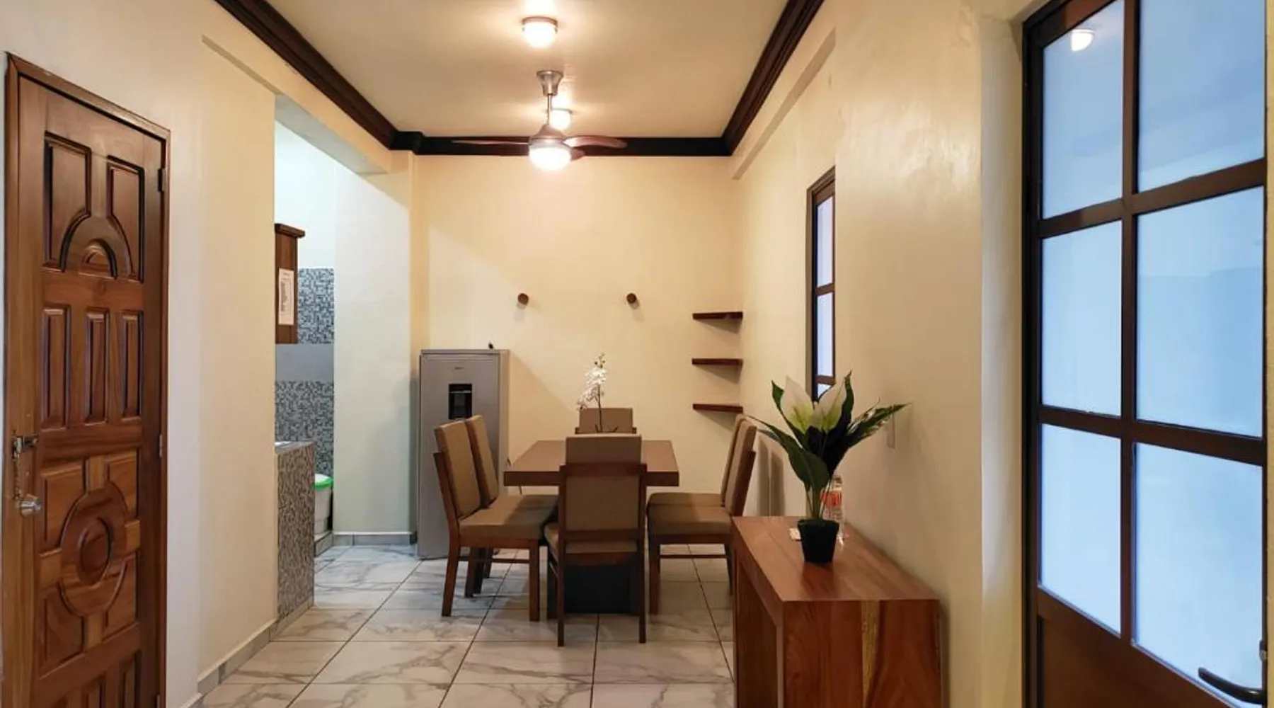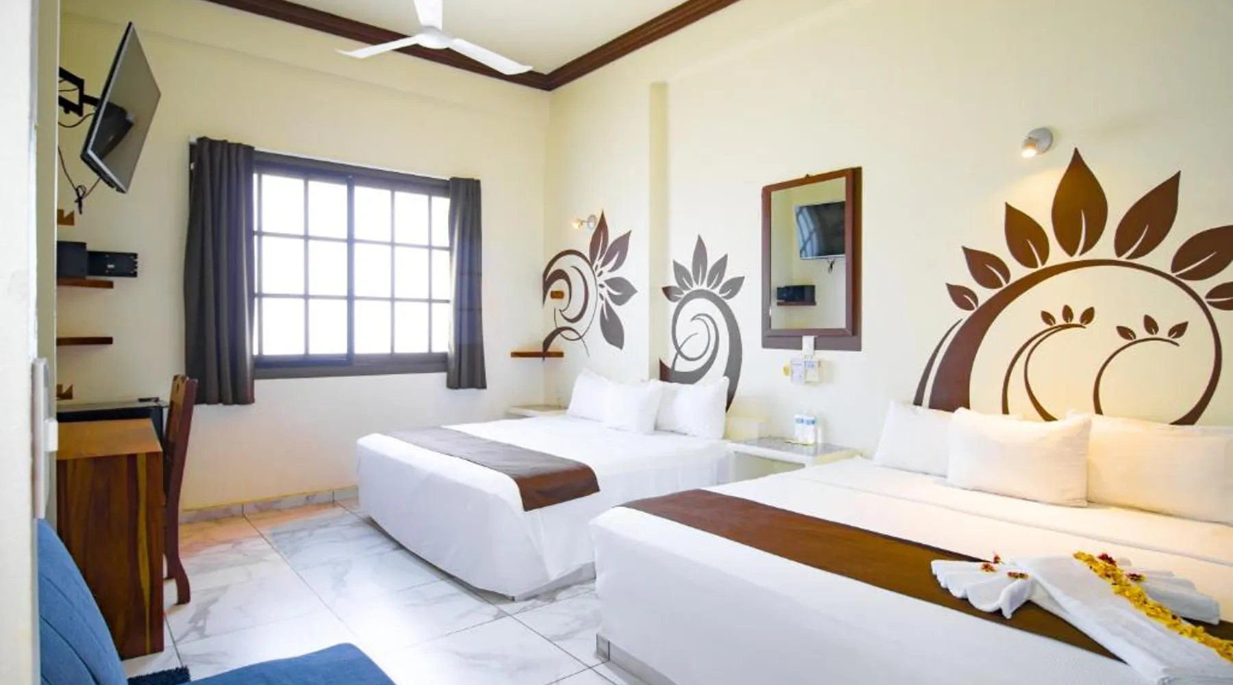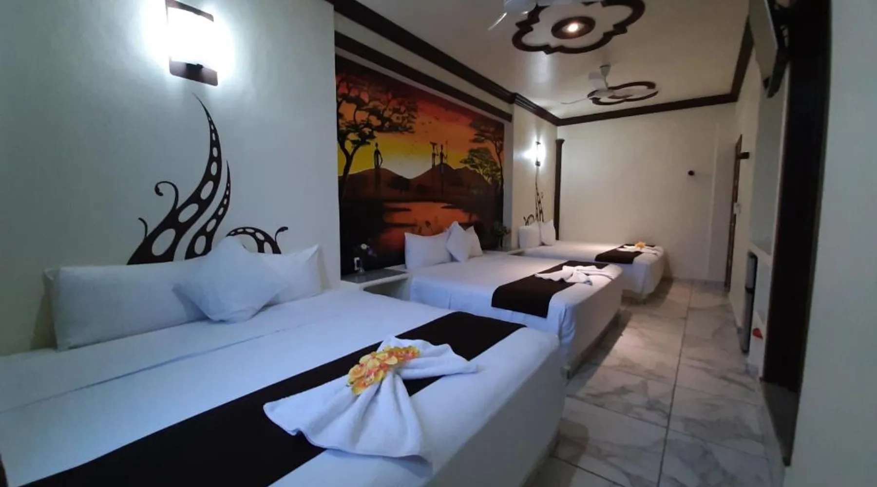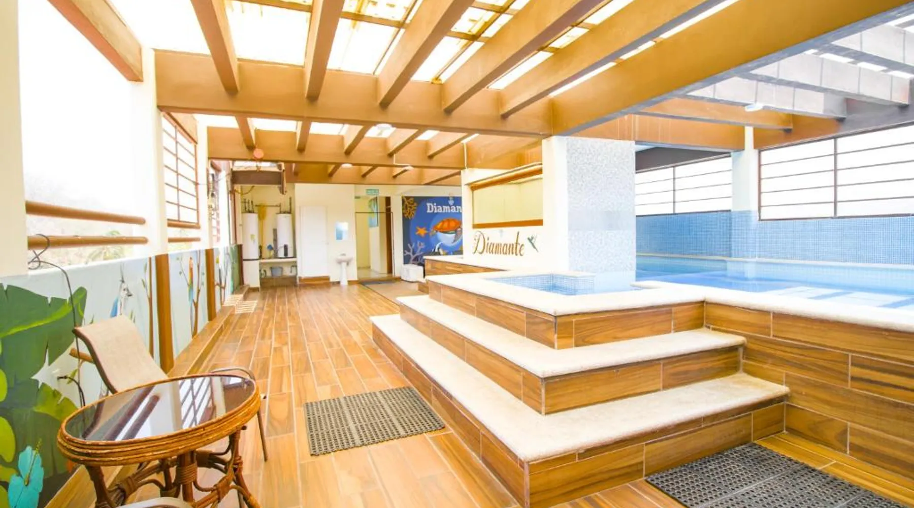 Comfortable Accommodations: Hotel Diamante in Bahías de Huatulco offers family rooms with air-conditioning, private bathrooms, and free WiFi. Each room includes a refrigerator, TV, and free toiletries. Exceptional Facilities: Guests can enjoy a rooftop swimming pool, hot tub, and public bath. Additional amenities include a 24-hour front desk, housekeeping service, room service, bike hire, tour desk, and luggage storage. Prime Location: Located 8.1 mi from Huatulco International Airport, the hotel is near Santa Cruz Beach (1.2 mi), Downtown Huatulco/Crucecita (2-minute walk), and Huatulco National Park (4.3 mi). Free on-site private parking is available. Guest Satisfaction: Highly rated for room cleanliness, Hotel Diamante ensures a pleasant stay for all visitors. Boasting 2 bedrooms and 1 bathroom, this spacious suite has a well-fitted kitchen and a dining area. The suite's kitchen, which has a refrigerator and kitchenware, is available for cooking and storing food. The suite offers air conditioning, a tea and coffee maker, a safe deposit box, a sofa and a flat-screen TV with cable channels. The unit offers 6 beds.