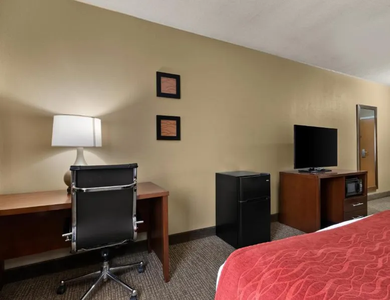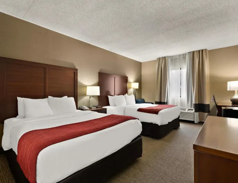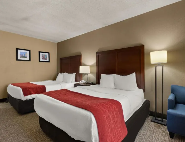 Comfortable Accommodations: Comfort Inn Bordentown near NJ Turnpike in Bordentown offers air-conditioned rooms with free WiFi, refrigerators, and microwaves. Each room includes a spa bath and a hairdryer. Leisure Facilities: Guests can enjoy a fitness center, seasonal outdoor swimming pool, and a lounge. The property also features a coffee shop and a 24-hour front desk. Convenient Location: Located 12 mi from Trenton-Mercer Airport, the inn is 15 mi from Sesame Place, 17 mi from Princeton University, and 20 mi from Six Flags Great Adventure & Wild Safari. The double room provides air conditioning and a safe deposit box. The unit offers 1 bed.