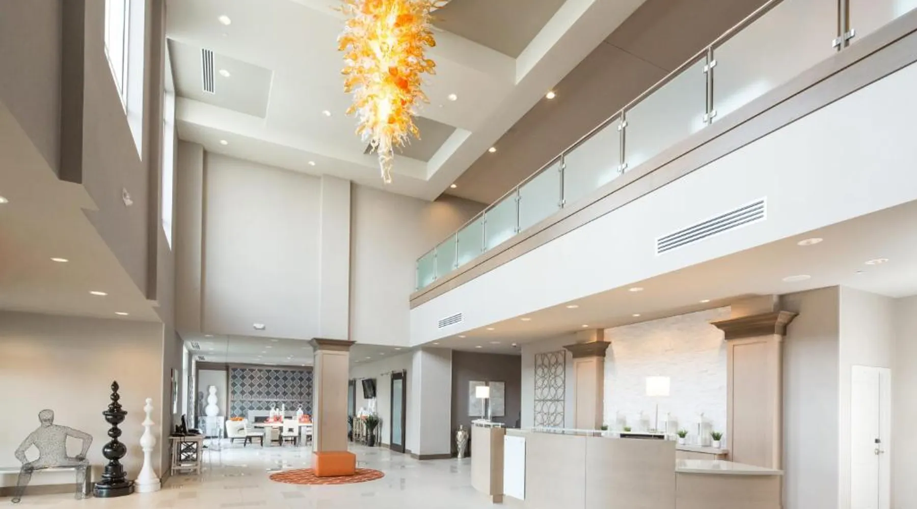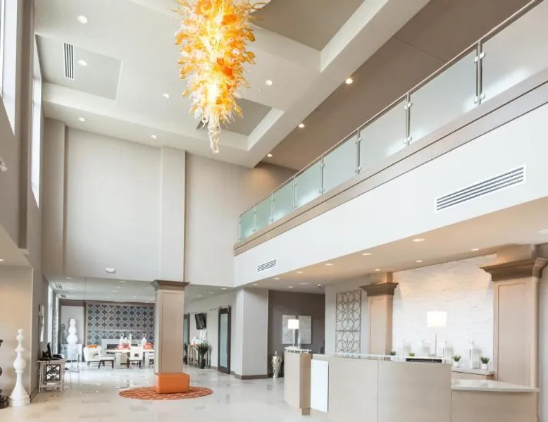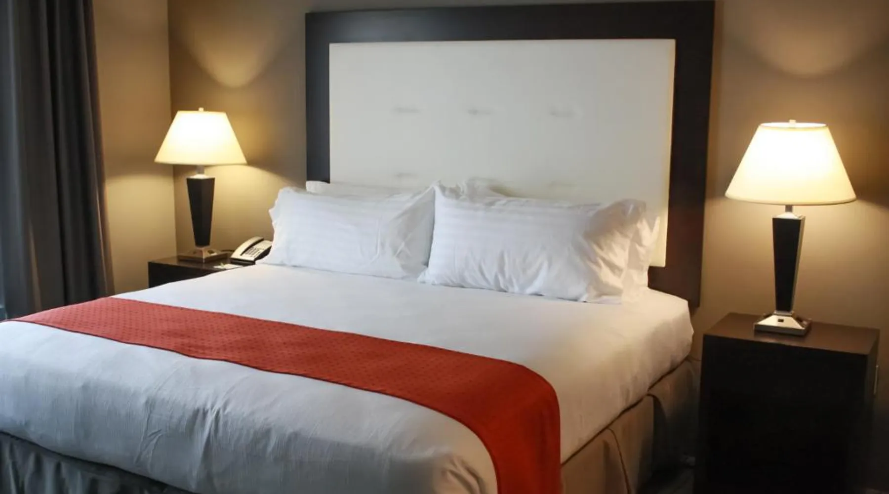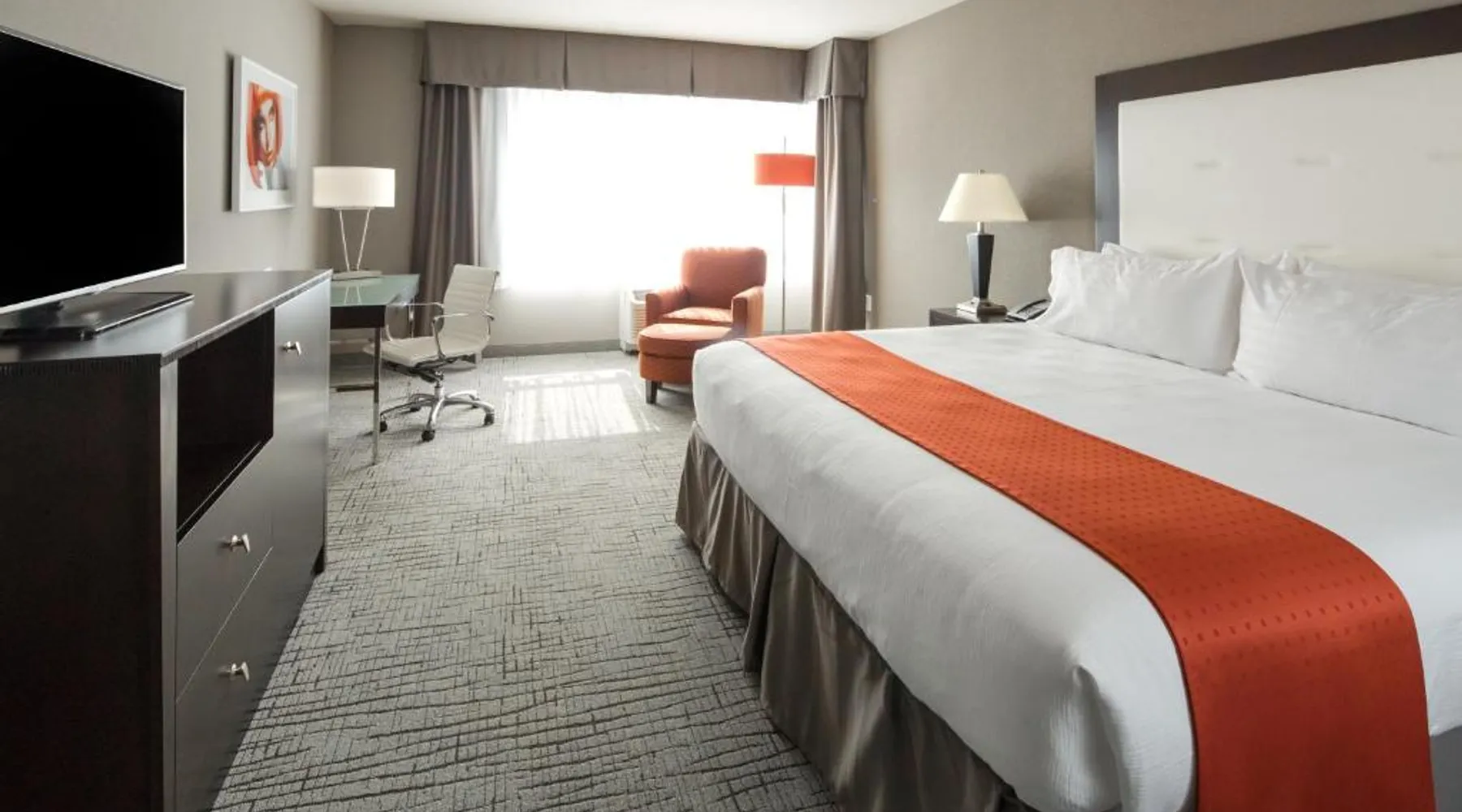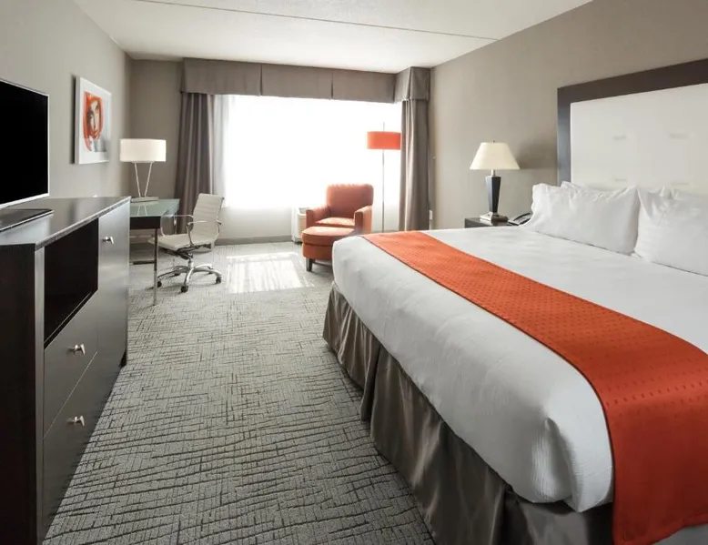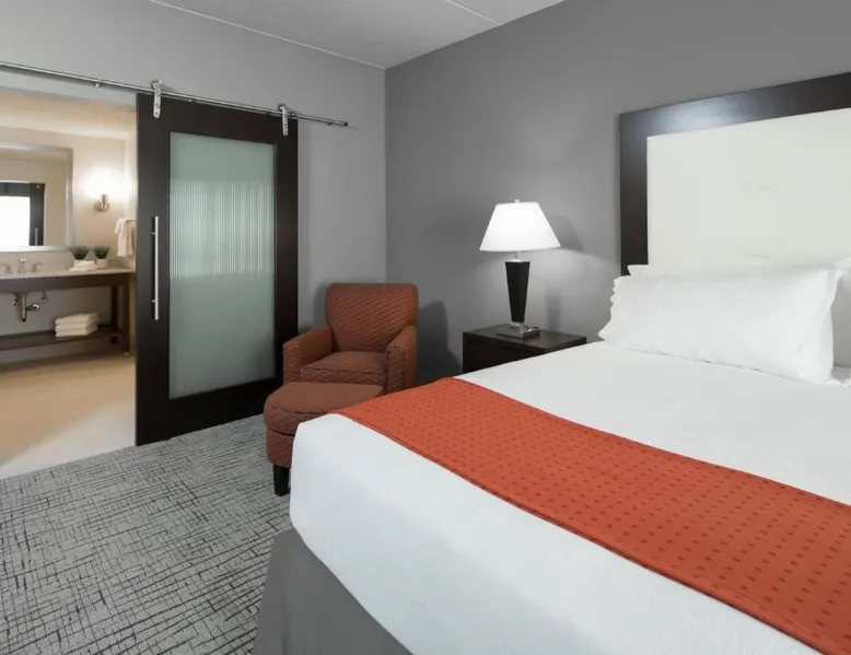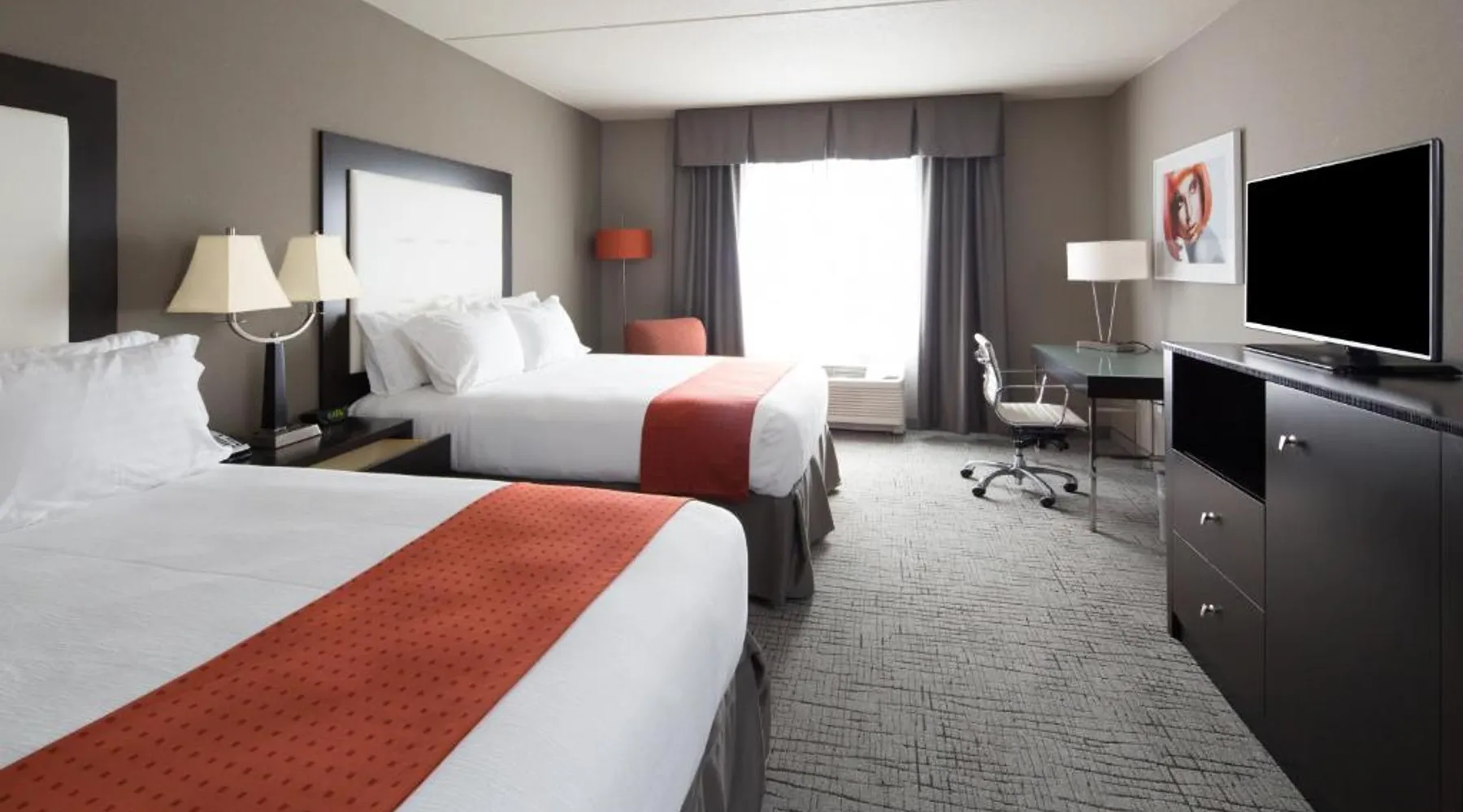 Comfortable Accommodations: Holiday Inn Hotel & Suites Davenport by IHG in Davenport offers family rooms with air-conditioning, free WiFi, and amenities such as a coffee machine, refrigerator, work desk, and TV. Exceptional Facilities: Guests enjoy an indoor swimming pool, fitness center, terrace, restaurant, bar, and hot tub. Additional services include a 24-hour front desk, daily housekeeping, business area, and free on-site parking. Dining Experience The family-friendly restaurant serves American cuisine in a traditional, modern, and romantic ambiance. Room service and a bar enhance the dining options. Prime Location Located 9.3 mi from Quad City International Airport, the hotel is near attractions like Quad Cities Waterfront Convention Center (3.1 mi) and TaxSlayer Center (5 mi). Guests appreciate the attentive staff and room cleanliness. A cable TV, refrigerator, and coffee machine are included in this double room. There is a work desk with a lamp as well. Bed type preference cannot be guaranteed as it will be allocated upon arrival based on availability.