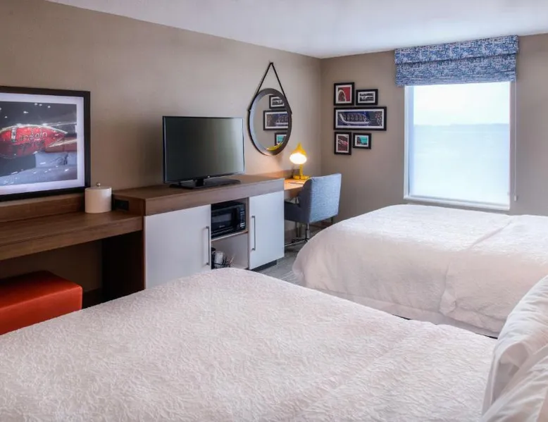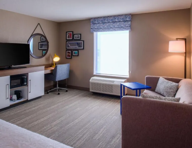 Comfortable Accommodations: Rooms feature refrigerators, microwaves, kitchenware, toasters, tea and coffee makers, hairdryers, sofa beds, seating areas, showers, and TVs. Guests appreciate the room cleanliness and excellent service. Facilities and Services: The hotel offers a fitness center, indoor swimming pool, and free WiFi in public areas. Additional amenities include a elevator, 24-hour front desk, and free on-site private parking. Breakfast Options: A continental buffet breakfast with fresh pastries and cheese is available, including gluten-free options. Location and Attractions: Located in Wixom, the hotel is 27 mi from Detroit Metro Airport. Nearby attractions include Royal Oak Music Theater (22 mi), Eastern Michigan University (24 mi), and Ann Arbor Hands-On Museum (30 mi). This quadruple room provides a tea and coffee maker and a TV. The unit offers 2 beds.