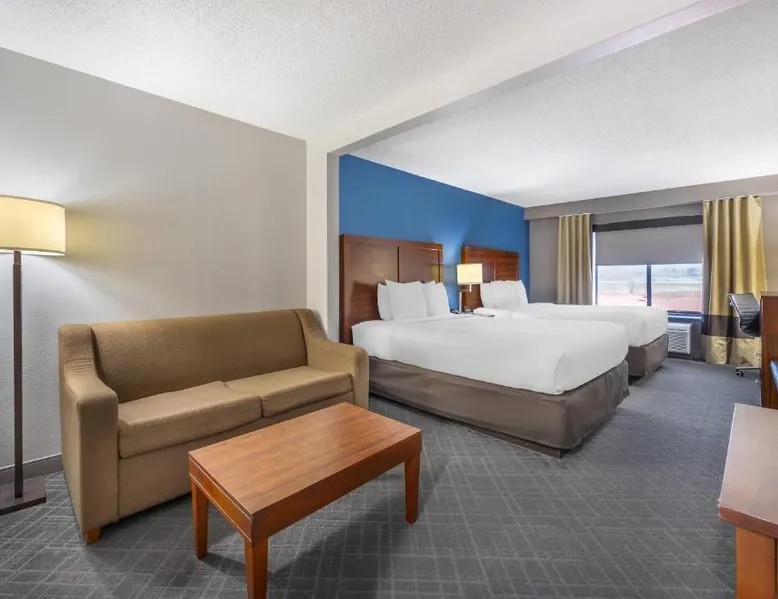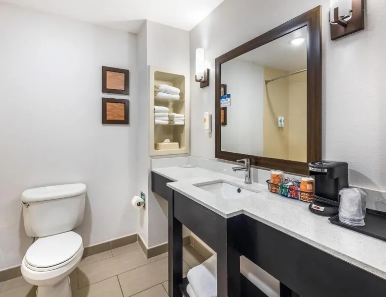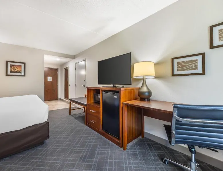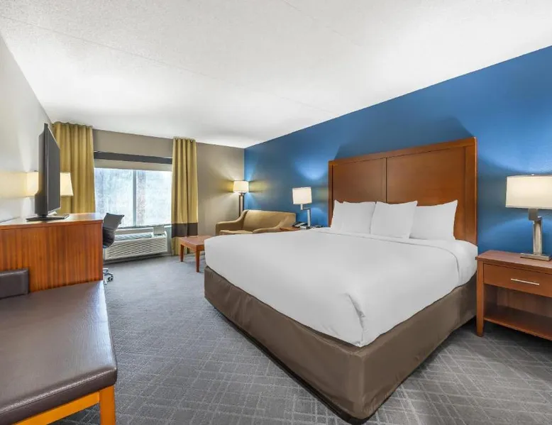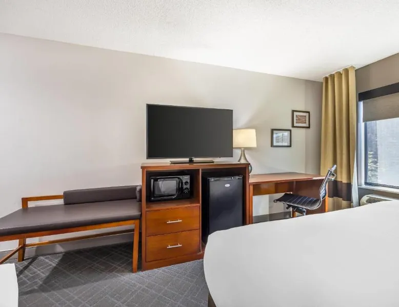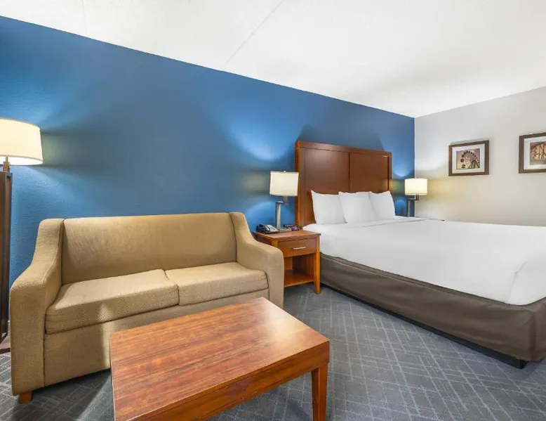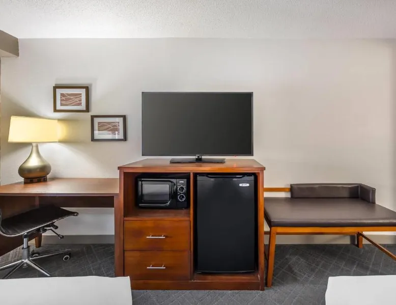 Comfortable Accommodations: Comfort Inn & Suites Chattanooga West - Lookout Mountain in Chattanooga offers rooms with refrigerators, microwaves, tea and coffee makers, hairdryers, work desks, and seating areas. Guests appreciate the room cleanliness and excellent service. Facilities and Amenities: The hotel features an indoor swimming pool and a fitness center. Free on-site parking is available. A 24-hour front desk provides assistance in English. Local Attractions: Located 3 mi from Lookout Mountain, 5.6 mi from Tennessee Aquarium, and 12 mi from Chattanooga Metropolitan Airport. Nearby attractions include Ruby Falls, Tennessee Riverpark, and the Hunter Museum of American Art. The suite is furnished with a desk and a seating area and features a tea and coffee maker and heating.
