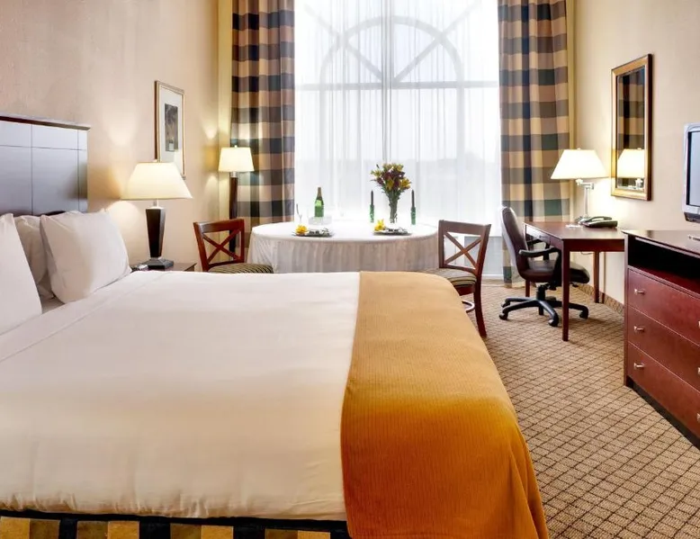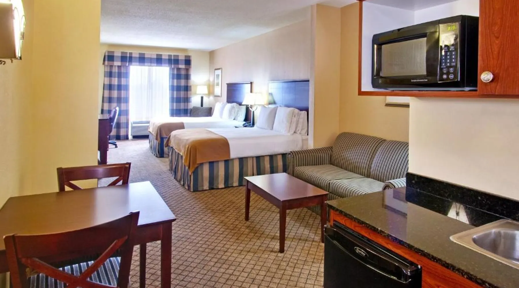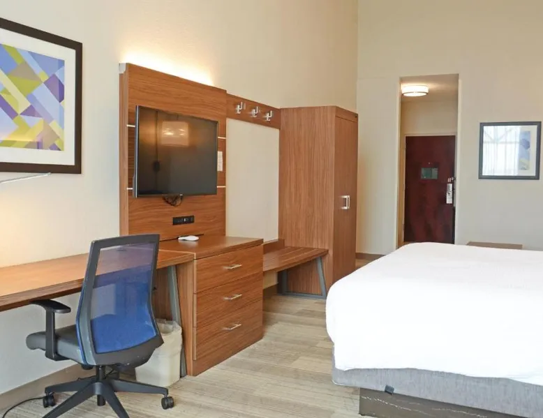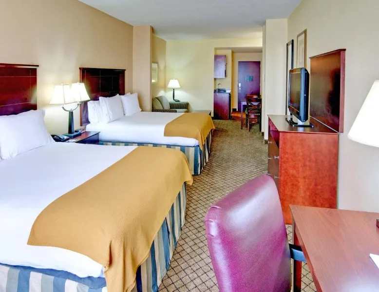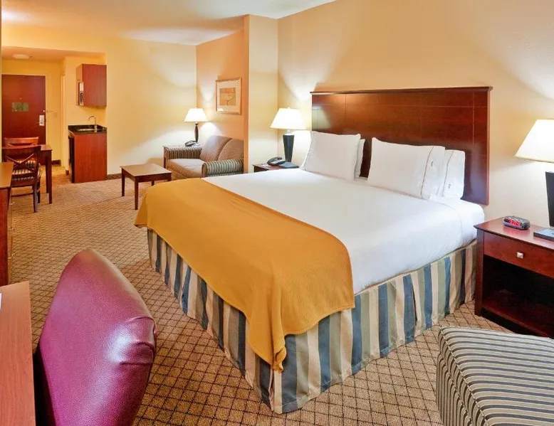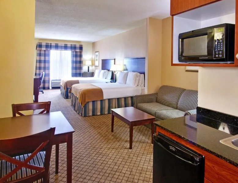 Comfortable Accommodations: Holiday Inn Express Hotel & Suites Millington-Memphis Area by IHG in Millington offers air-conditioned rooms with private bathrooms, baths, hairdryers, refrigerators, work desks, and microwaves. Each room includes a tea and coffee maker, seating area, TV, and sofa. Leisure Facilities: Guests can enjoy a saltwater swimming pool, indoor swimming pool, and fitness center. Free WiFi is available throughout the property. Additional amenities include a lounge, fitness room, elevator, 24-hour front desk, daily housekeeping service, business area, and outdoor seating area. Convenient Location: Located 24 mi from Memphis International Airport, the hotel is near Naval Support Activity Mid-South (3.1 mi), Fire Museum of Memphis (18 mi), and Graceland (25 mi). Free on-site parking is provided. Guests appreciate the convenient location, breakfast provided by the property, and attentive staff. Suite has a wet bar, seating area with sofa bed, flat-screen TV, and DVD player.