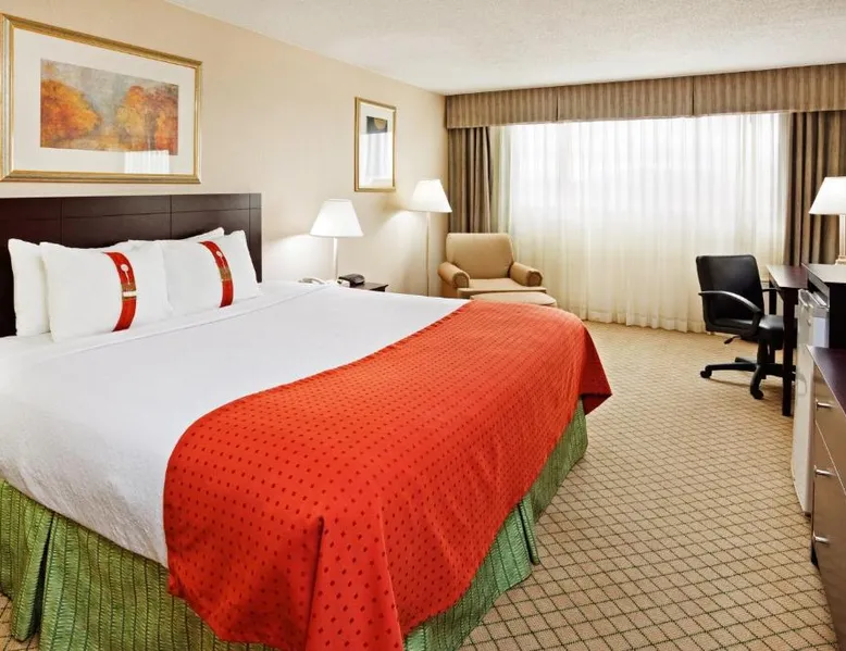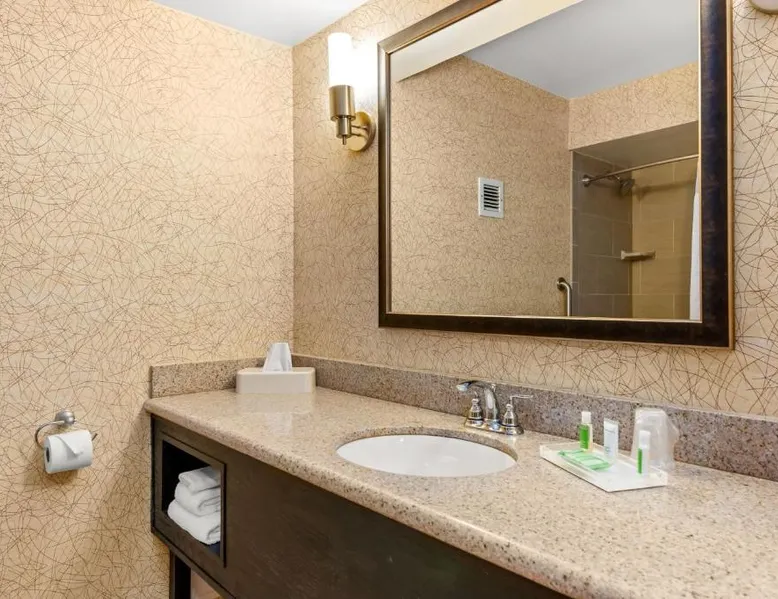 Comfortable Accommodations: Holiday Inn Johnson City by IHG in Johnson City offers air-conditioned rooms with private bathrooms, refrigerators, free toiletries, and free WiFi. Each room includes a TV, work desk, and wardrobe, ensuring a pleasant stay. Dining and Leisure: Guests can enjoy an outdoor swimming pool, sun terrace, and restaurant serving American cuisine. The on-site bar provides a relaxing atmosphere, while the fitness room and outdoor seating area offer additional leisure options. Convenient Location: Located 13 mi from Tri-Cities Regional Airport, the hotel is near attractions such as Tweetsie Trail (4.3 mi) and Winged Deer Park (3.1 mi). Free on-site parking is available, and the property staff provide excellent service support. This room features a small refrigerator, cable TV, and dining area. Coffee-making facilities are also included.