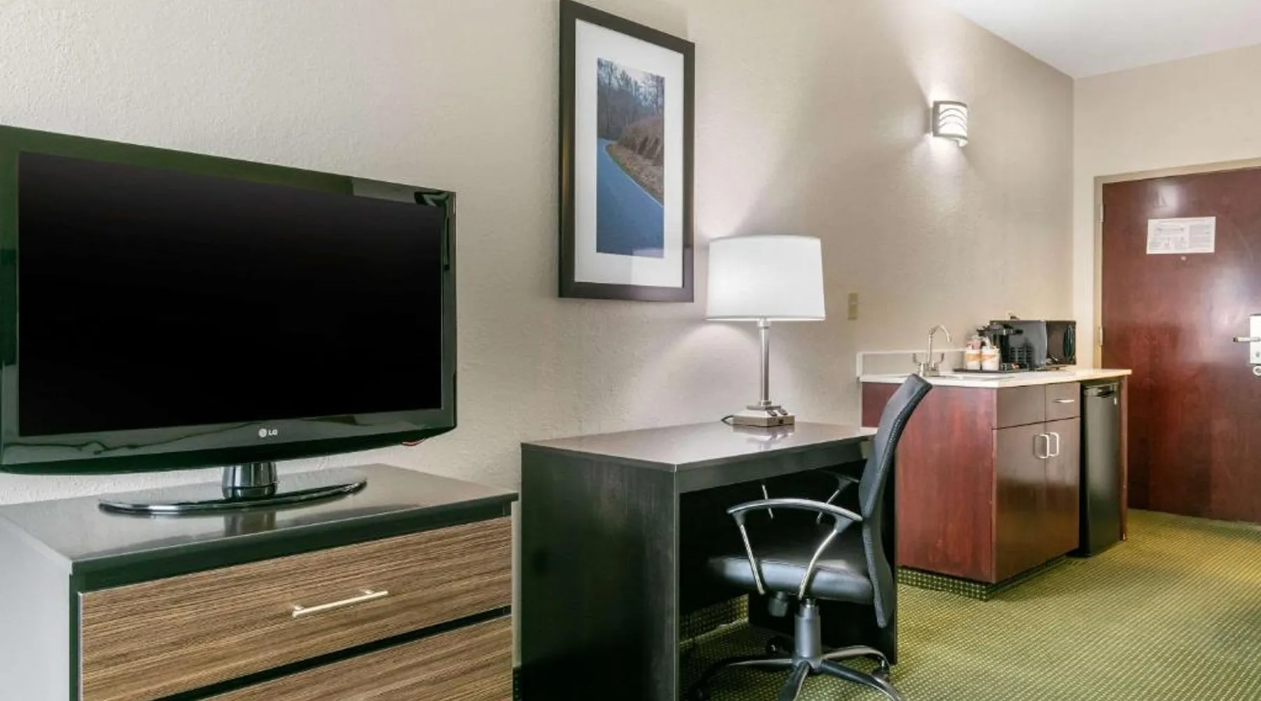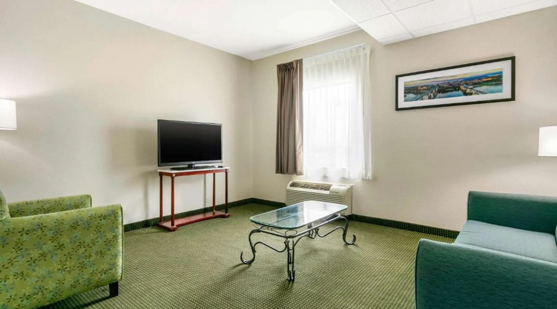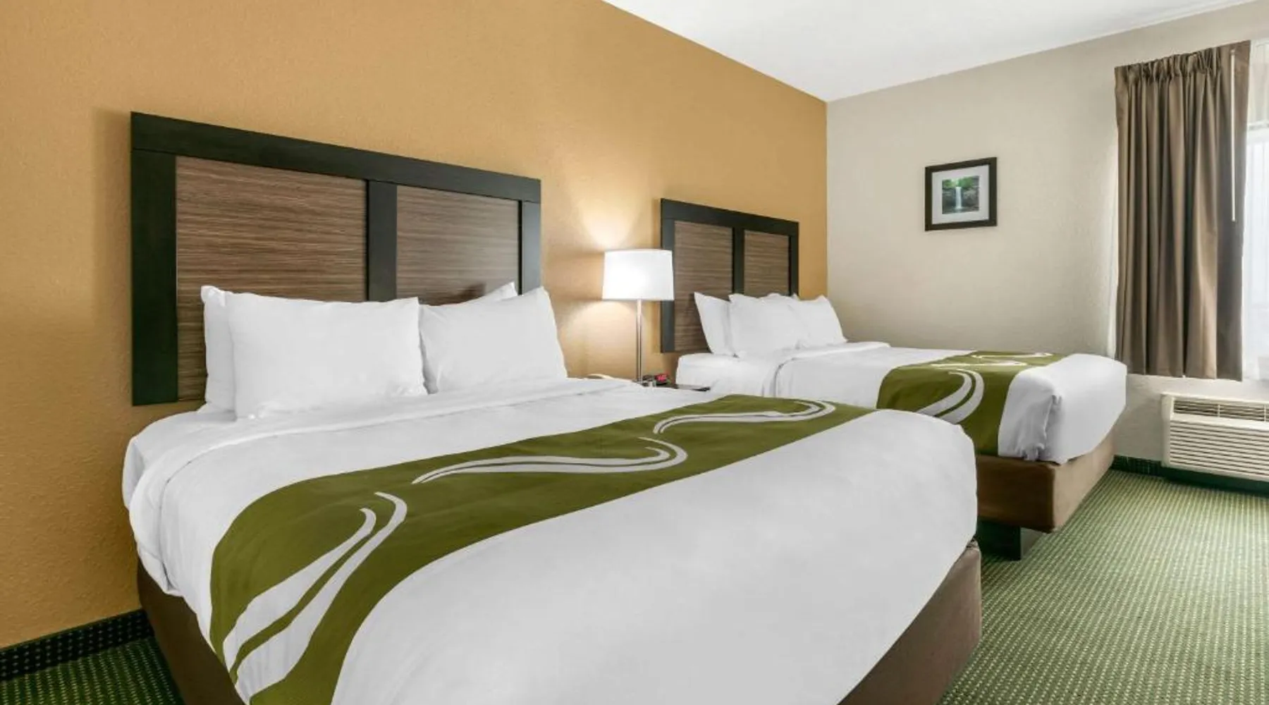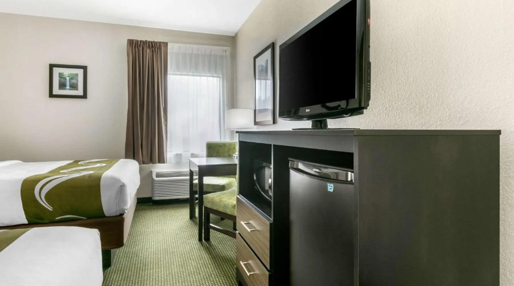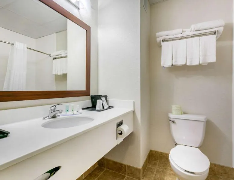 Comfortable Accommodations: Quality Inn Monteagle in Monteagle offers family rooms with air-conditioning, refrigerators, and work desks. Each room includes a tea and coffee maker, hairdryer, seating area, and TV. Exceptional Facilities: Guests enjoy a saltwater swimming pool, sun terrace, and free WiFi. Additional amenities include a lounge, outdoor seating area, picnic area, and free on-site private parking. Delicious Breakfast: A continental buffet breakfast is served daily, featuring warm dishes, fresh pastries, pancakes, cheese, fruits, and juice. Convenient Location: Located 53 mi from Chattanooga Metropolitan Airport and 22 mi from Great Stage Park, the inn provides easy access to local attractions. This quadruple room features a tea and coffee maker, a seating area and a TV with cable channels. The unit offers 2 beds.