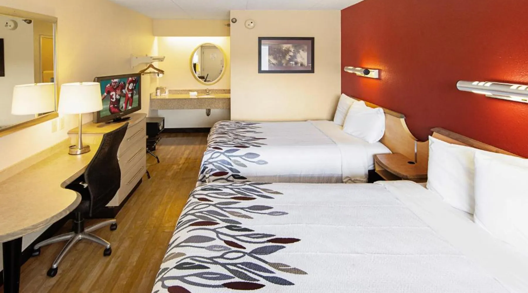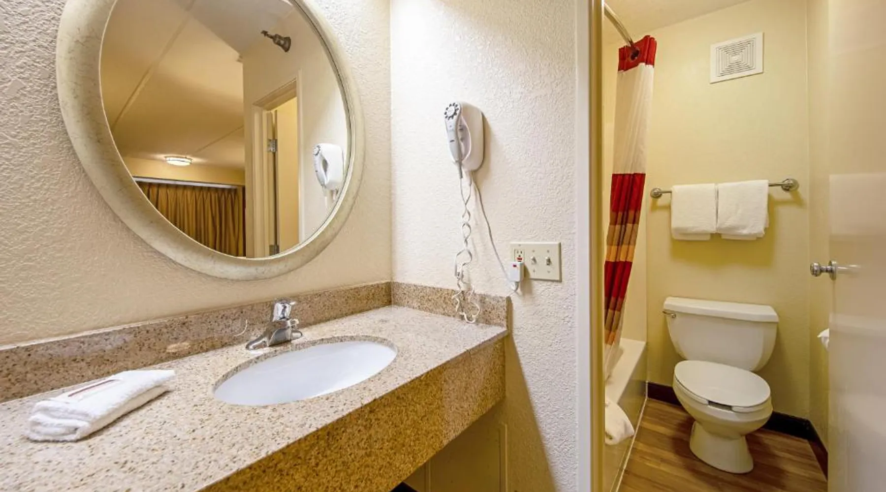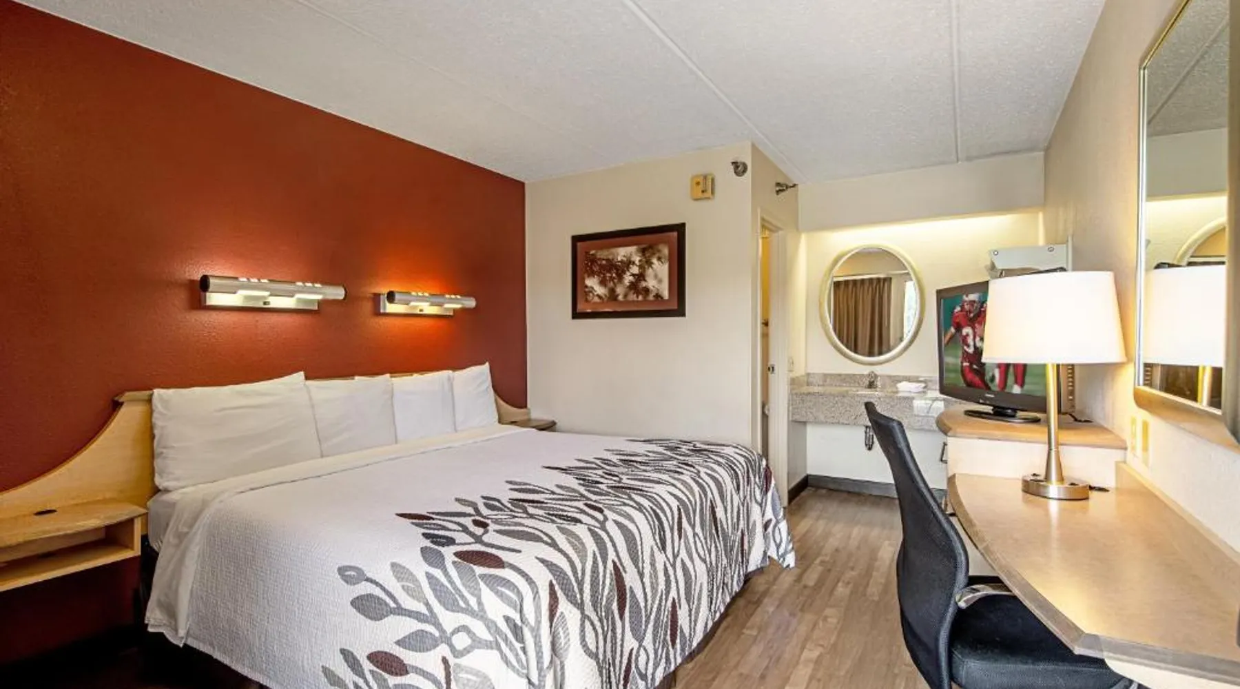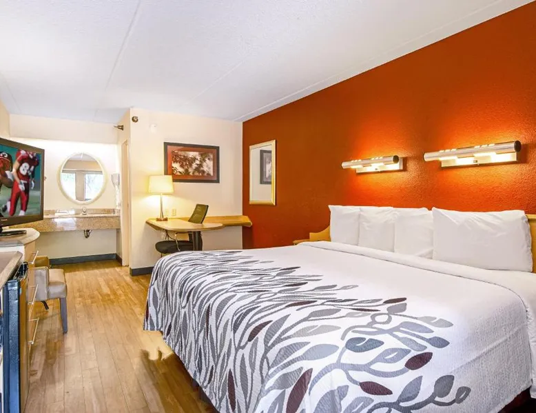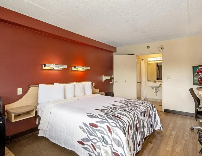 This Johnson City motel is located off Interstate 26 Exit 20 and features free Wi-Fi. Rooms have a flat-screen cable television. East Tennessee University is 3 mi away. A hardwood floor is featured in every air-conditioned room at this Johnson City Red Roof Inn. A small refrigerator and a microwave are included in select rooms. The 24-hour reception offers a safety deposit box for a fee at this nonsmoking Red Roof Inn Johnson City. Free parking is provided on site. The motel 16 minutes’ drive from Roan Mountain State Park. The East Tennessee State University Natural History Museum is 9.9 mi away. This property provides daily housekeeping for stays of 1 – 6 nights. Housekeeping is provided once a week for 7-night minimum stays. A flat-screen cable TV, alarm clock, and hardwood floor are featured in this room.