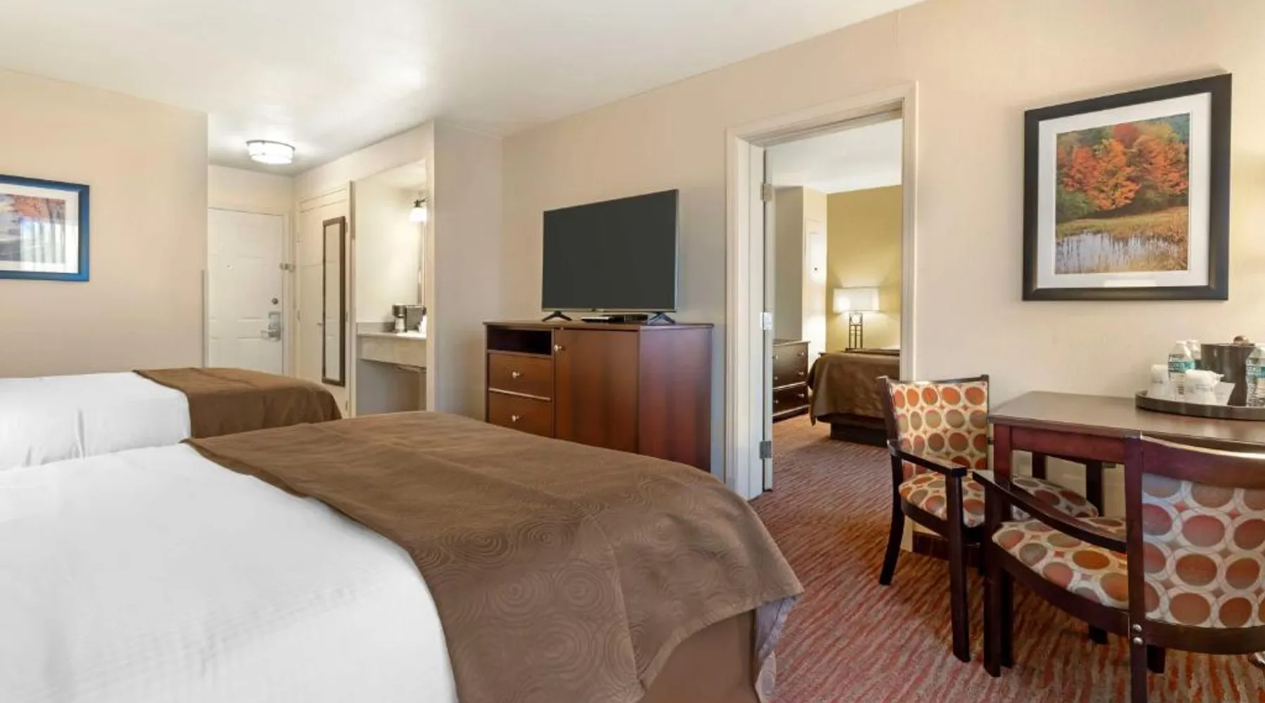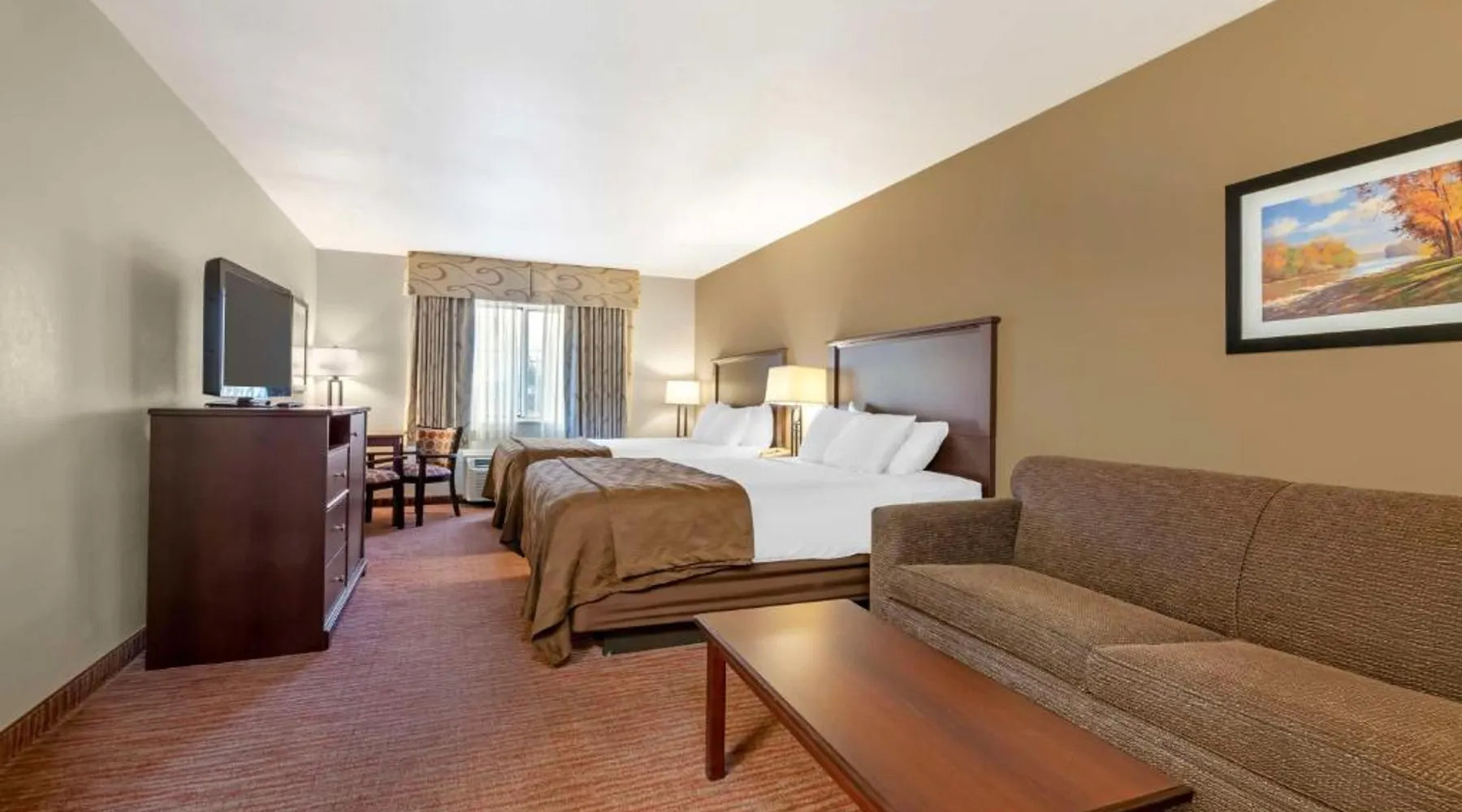 Comfortable Accommodations: Best Western Plus Concord Inn in Minocqua offers family rooms with private bathrooms, lake or city views, and amenities such as tea and coffee makers, refrigerators, and free toiletries. Exceptional Facilities: Guests can enjoy a bar, indoor swimming pool, hot tub, and free WiFi. Additional facilities include a lounge, elevator, 24-hour front desk, electric vehicle charging station, and bicycle parking. Delicious Breakfast: A continental breakfast with warm dishes is served daily, providing a great start to the day. Convenient Location: Located 28 mi from Rhinelander-Oneida County Airport, the hotel is near attractions like fishing, skiing, and cycling. Guests appreciate the convenient location and value for money. This room includes a sofa bed.