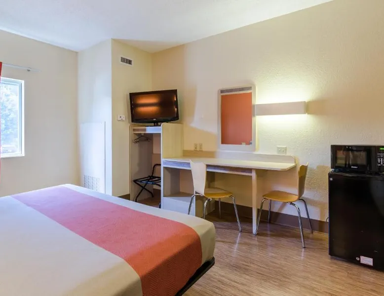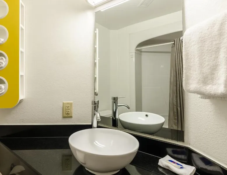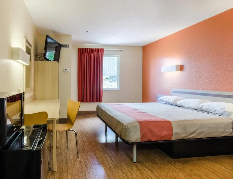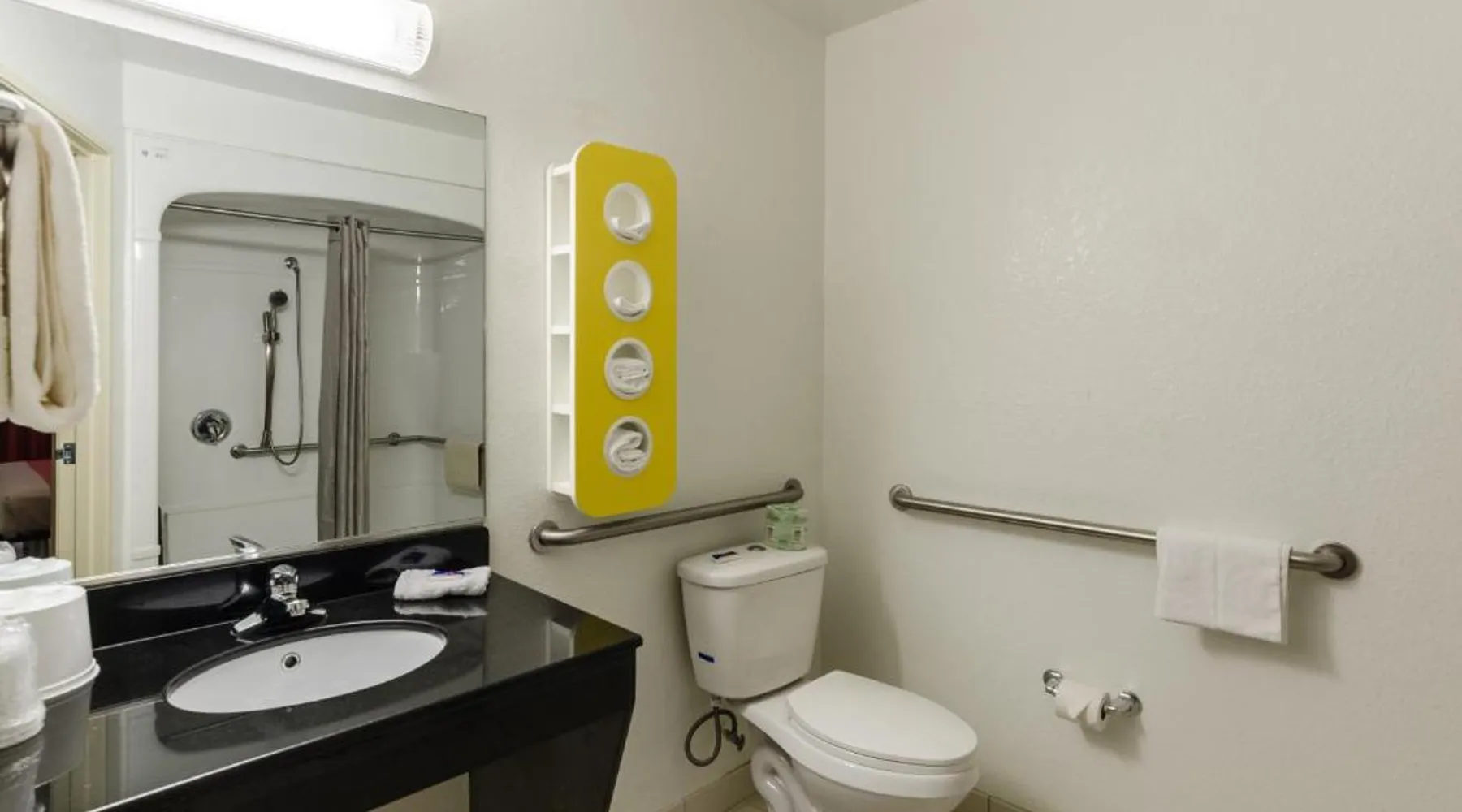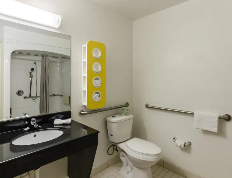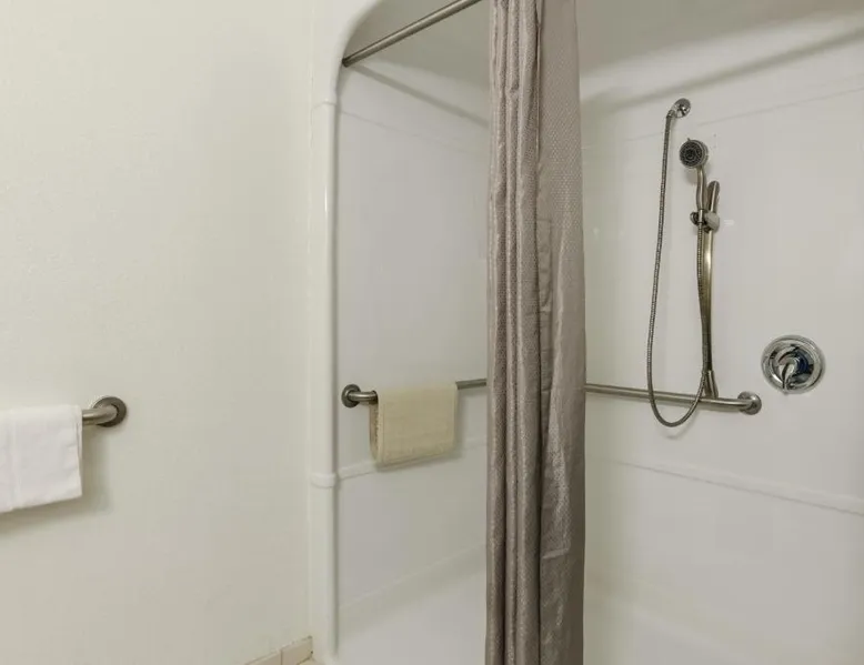 Comfortable Accommodations: Motel 6-Bristol in Bristol offers four-star comfort with free WiFi, air-conditioning, private bathrooms, stovetops, and TVs. Each room includes a bath with a walk-in shower and a shower. Convenient Facilities: Guests benefit from a elevator and a 24-hour front desk. The property is pet-friendly, welcoming travelers with their furry companions. Prime Location: Located 22 mi from Tri-Cities Regional Airport and 14 mi from Bristol Motor Speedway, the hotel provides easy access to local attractions. Guest Satisfaction: Highly rated for room cleanliness, value for money, and excellent staff and service support. This room includes a roll-in shower and additional handicap accessible features.