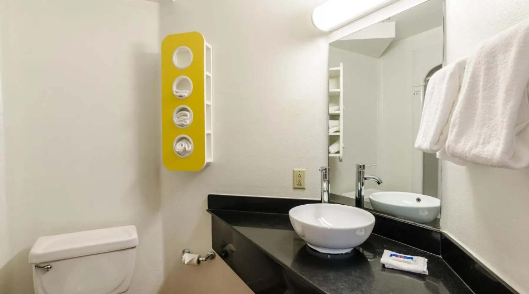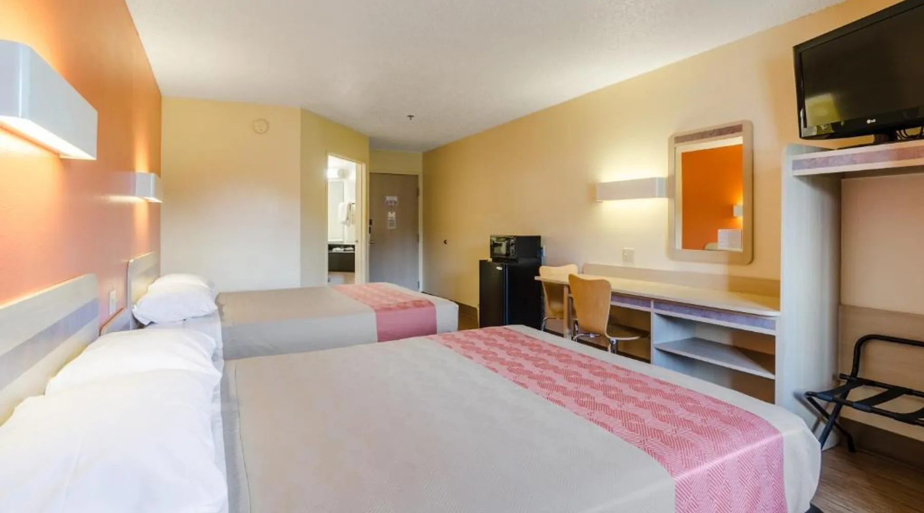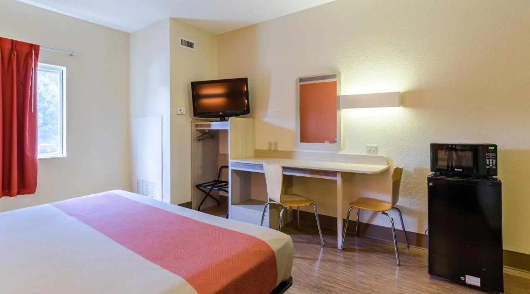 Comfortable Accommodations: Motel 6-Bristol in Bristol offers four-star comfort with free WiFi, air-conditioning, private bathrooms, stovetops, and TVs. Each room includes a bath with a walk-in shower and a shower. Convenient Facilities: Guests benefit from a elevator and a 24-hour front desk. The property is pet-friendly, welcoming travelers with their furry companions. Prime Location: Located 22 mi from Tri-Cities Regional Airport and 14 mi from Bristol Motor Speedway, the hotel provides easy access to local attractions. Guest Satisfaction: Highly rated for room cleanliness, value for money, and excellent staff and service support. This room includes a roll-in shower and additional handicap accessible features.