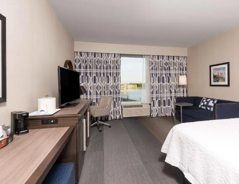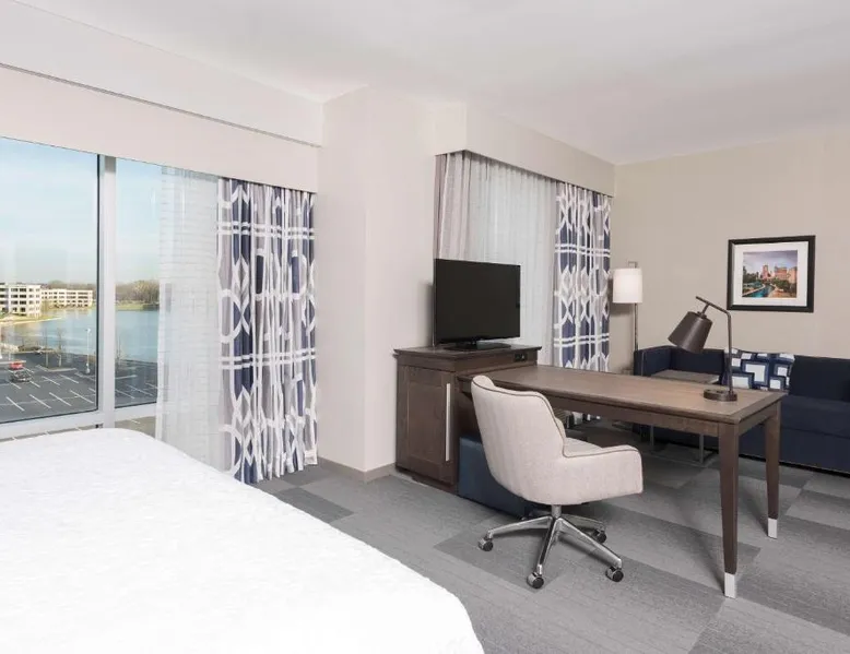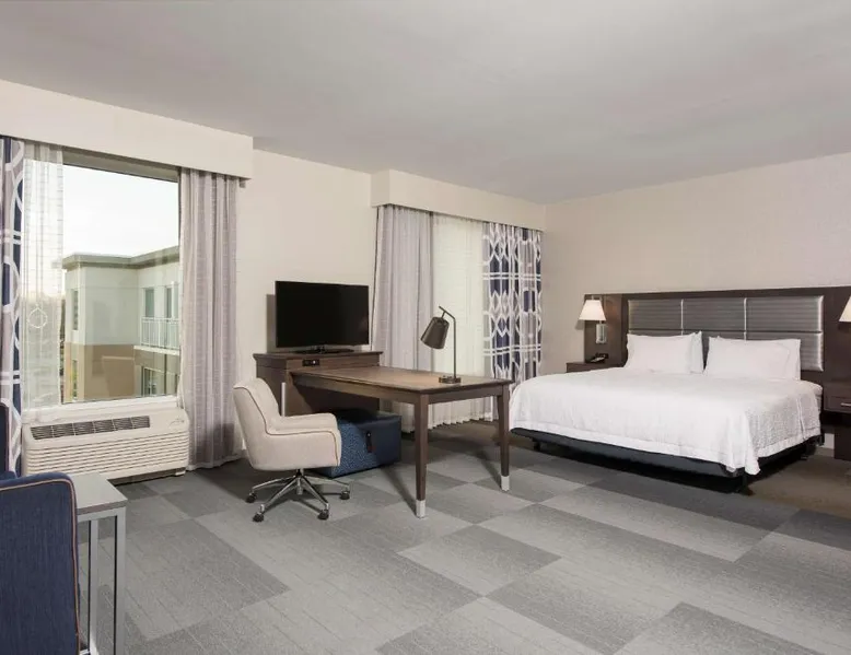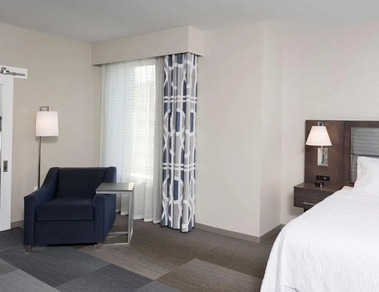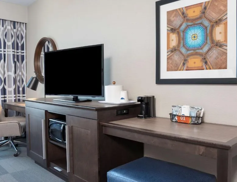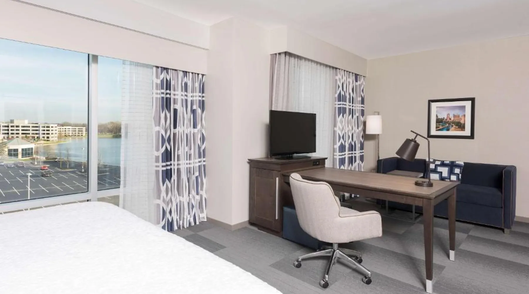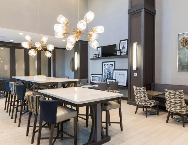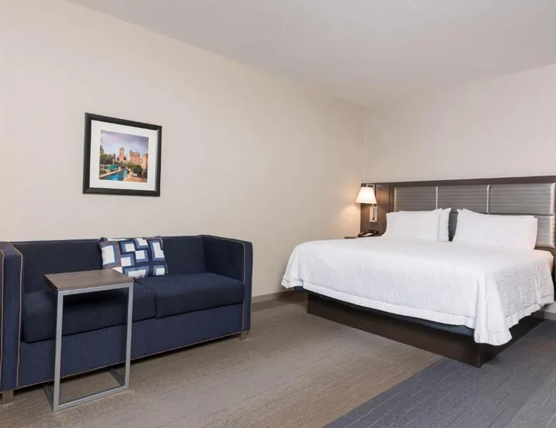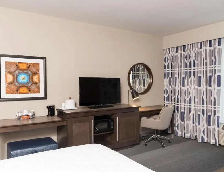 Comfortable Accommodations: Hampton Inn & Suites Indianapolis-Keystone in Indianapolis offers comfortable rooms with balconies, sofa beds, and seating areas. Each room includes a tea and coffee maker, hairdryer, refrigerator, microwave, and TV. Exceptional Facilities: Guests enjoy an indoor swimming pool, free WiFi, and an outdoor fireplace. Additional amenities include a fitness room, elevator, 24-hour front desk, minimarket, electric vehicle charging station, outdoor seating area, and express check-in and check-out services. Delicious Breakfast: A complimentary American buffet breakfast is served daily, featuring juice, fresh pastries, and fruits. Prime Location: Located 6.2 mi from Holliday Park and near attractions such as Cw Mundy Fine Art (1.8 mi) and Amc Theaters (3 mi). Free on-site private parking is available. Highly rated for its swimming pool, nearby shops, and attentive staff. This room offers hearing-accessible amenities, including a visual alarm system and notification devices for the doorbell, door knock and incoming telephone calls.