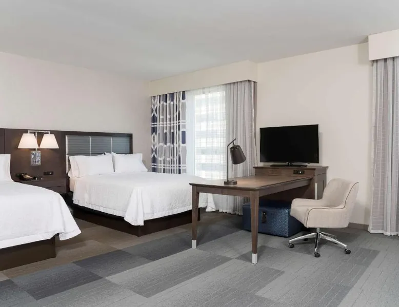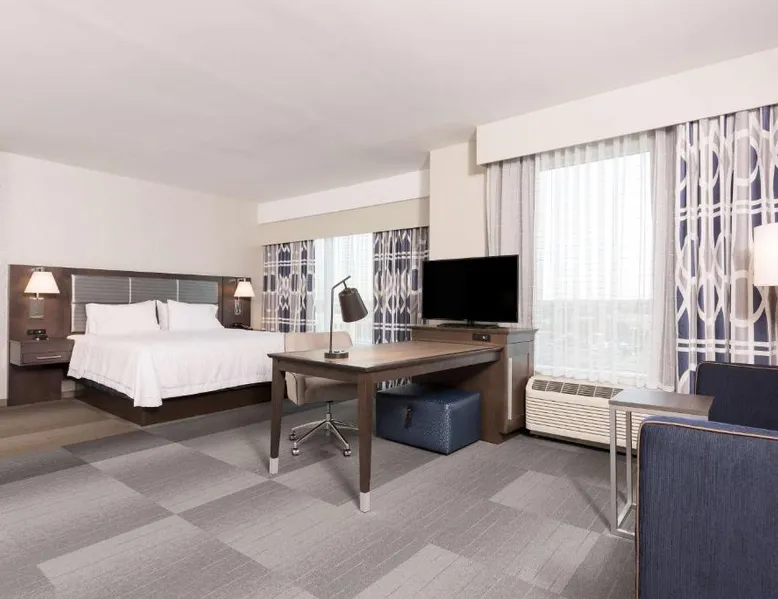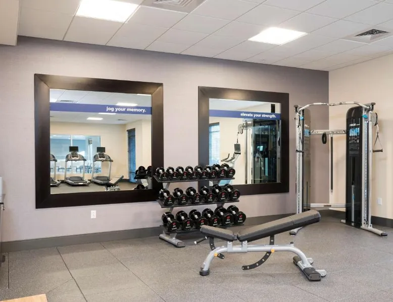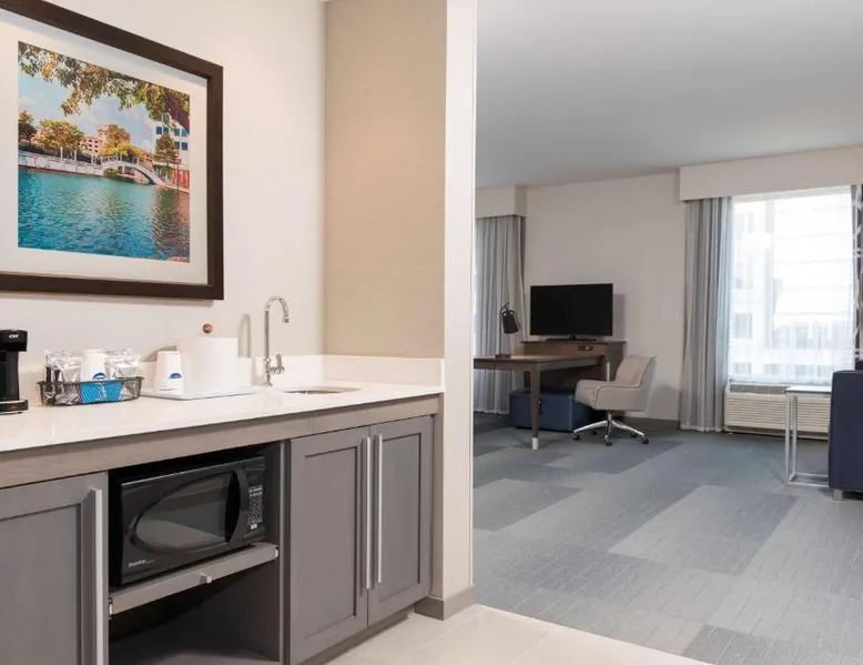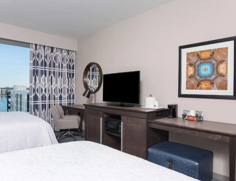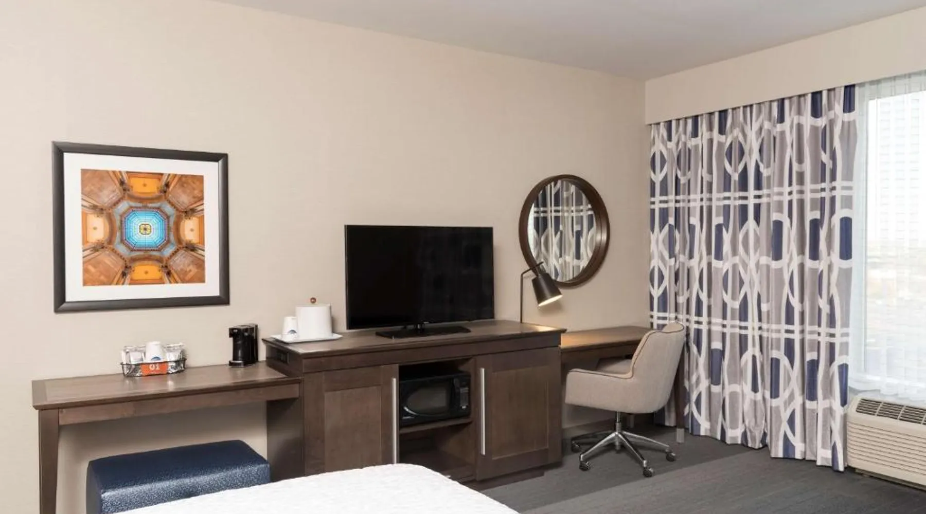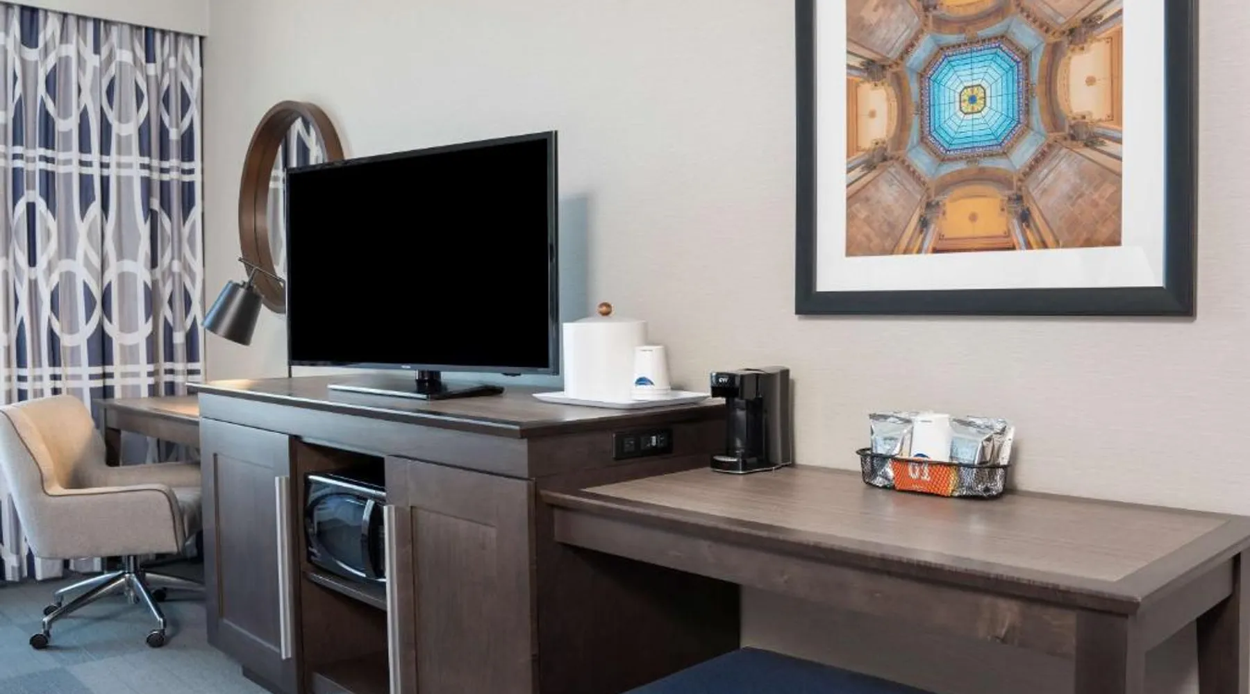 Comfortable Accommodations: Hampton Inn & Suites Indianapolis-Keystone in Indianapolis offers comfortable rooms with balconies, sofa beds, and seating areas. Each room includes a tea and coffee maker, hairdryer, refrigerator, microwave, and TV. Exceptional Facilities: Guests enjoy an indoor swimming pool, free WiFi, and an outdoor fireplace. Additional amenities include a fitness room, elevator, 24-hour front desk, minimarket, electric vehicle charging station, outdoor seating area, and express check-in and check-out services. Delicious Breakfast: A complimentary American buffet breakfast is served daily, featuring juice, fresh pastries, and fruits. Prime Location: Located 6.2 mi from Holliday Park and near attractions such as Cw Mundy Fine Art (1.8 mi) and Amc Theaters (3 mi). Free on-site private parking is available. Highly rated for its swimming pool, nearby shops, and attentive staff. This room offers hearing-accessible amenities, including a visual alarm system and notification devices for the doorbell, door knock and incoming telephone calls.
