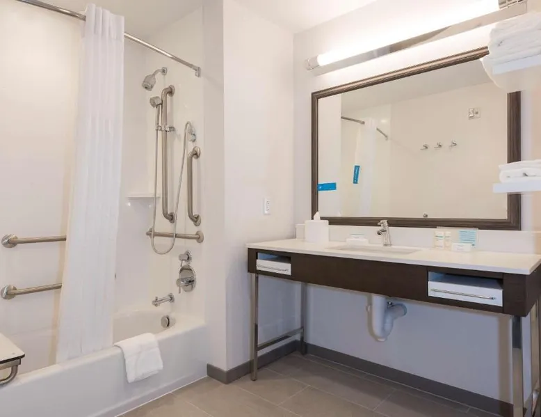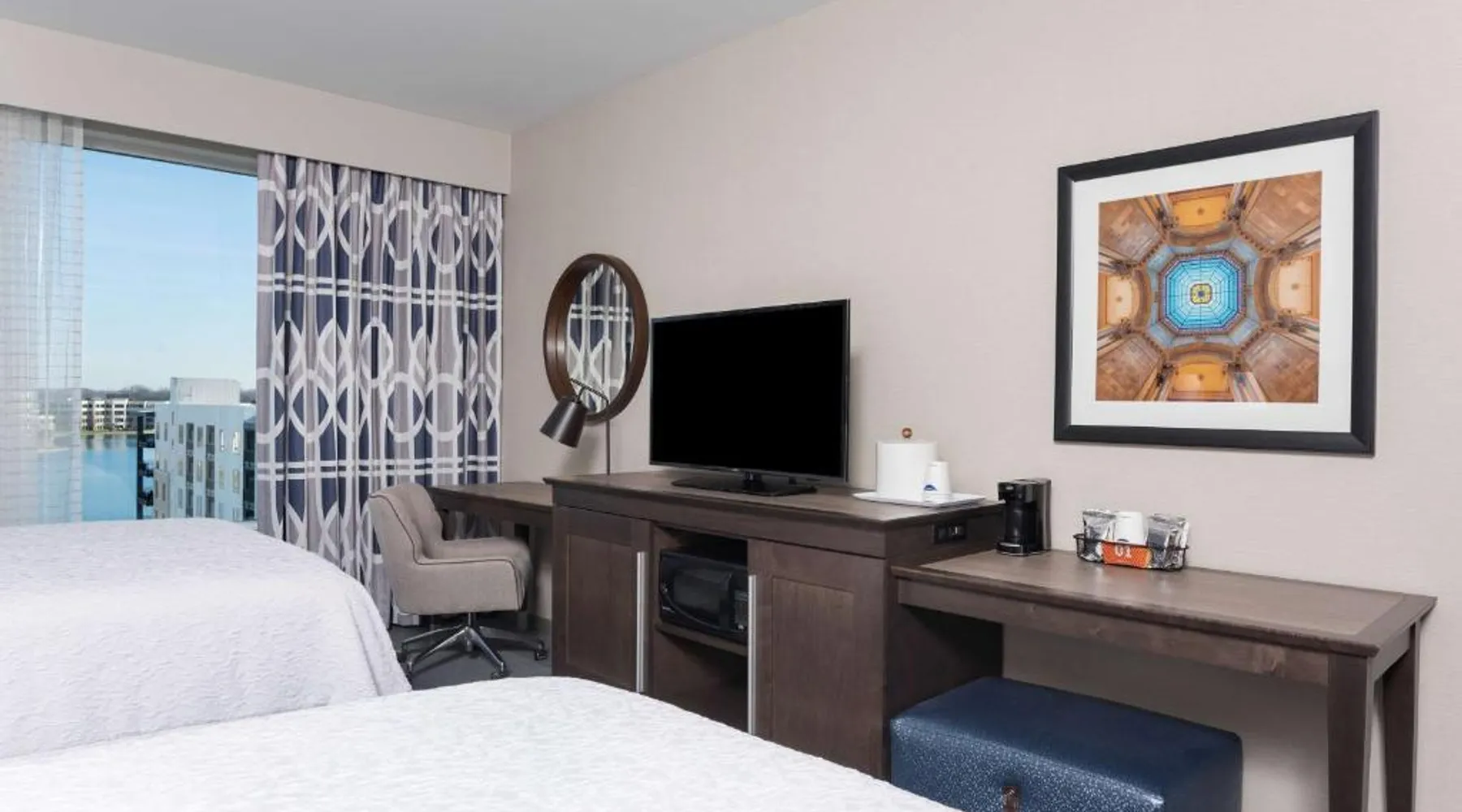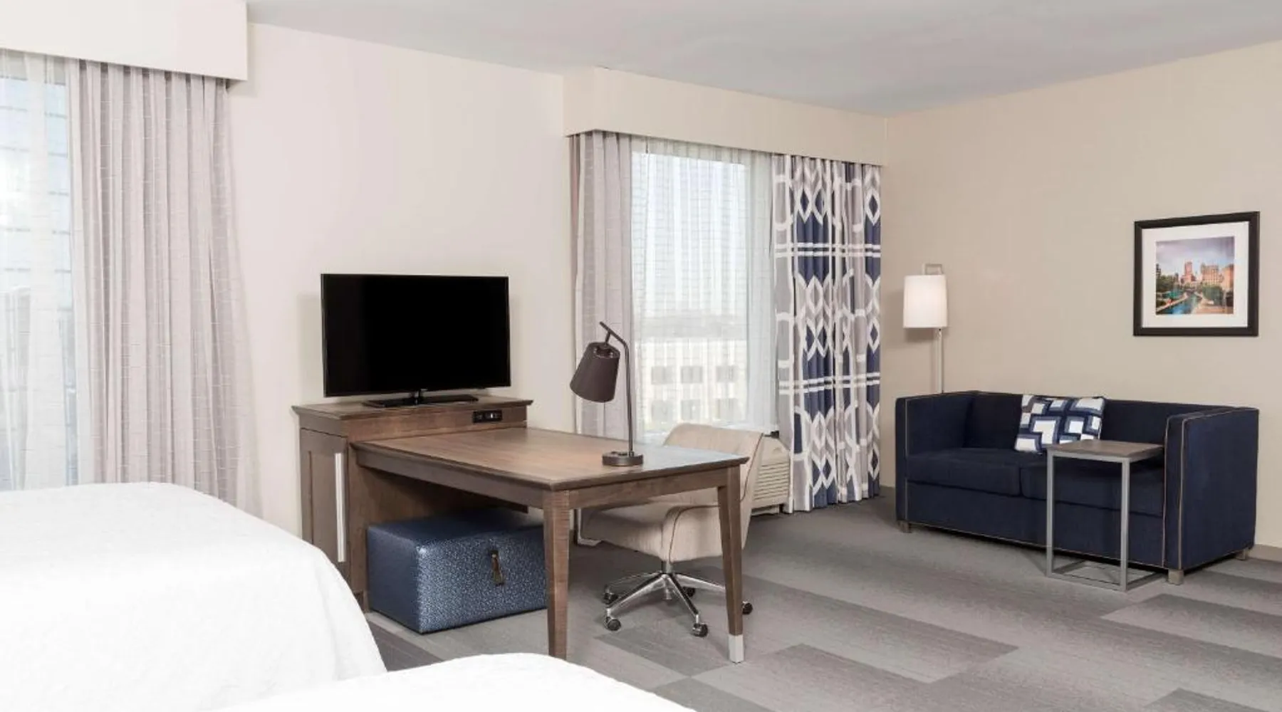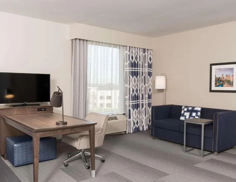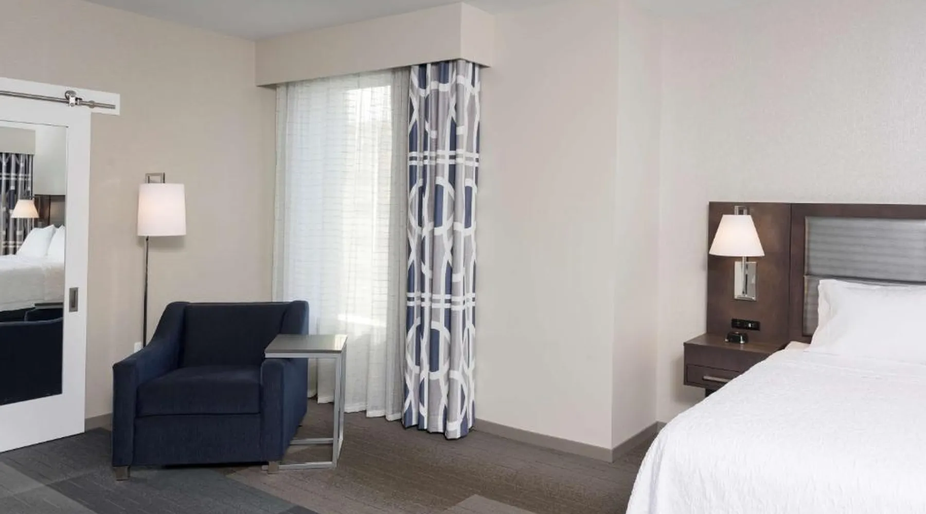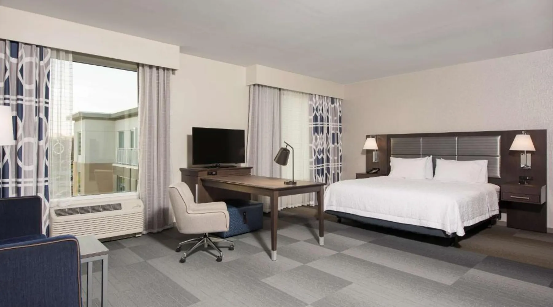 Comfortable Accommodations: Hampton Inn & Suites Indianapolis-Keystone in Indianapolis offers comfortable rooms with balconies, sofa beds, and seating areas. Each room includes a tea and coffee maker, hairdryer, refrigerator, microwave, and TV. Exceptional Facilities: Guests enjoy an indoor swimming pool, free WiFi, and an outdoor fireplace. Additional amenities include a fitness room, elevator, 24-hour front desk, minimarket, electric vehicle charging station, outdoor seating area, and express check-in and check-out services. Delicious Breakfast: A complimentary American buffet breakfast is served daily, featuring juice, fresh pastries, and fruits. Prime Location: Located 6.2 mi from Holliday Park and near attractions such as Cw Mundy Fine Art (1.8 mi) and Amc Theaters (3 mi). Free on-site private parking is available. Highly rated for its swimming pool, nearby shops, and attentive staff. This room offers hearing-accessible amenities, including a visual alarm system and notification devices for the doorbell, door knock and incoming telephone calls.