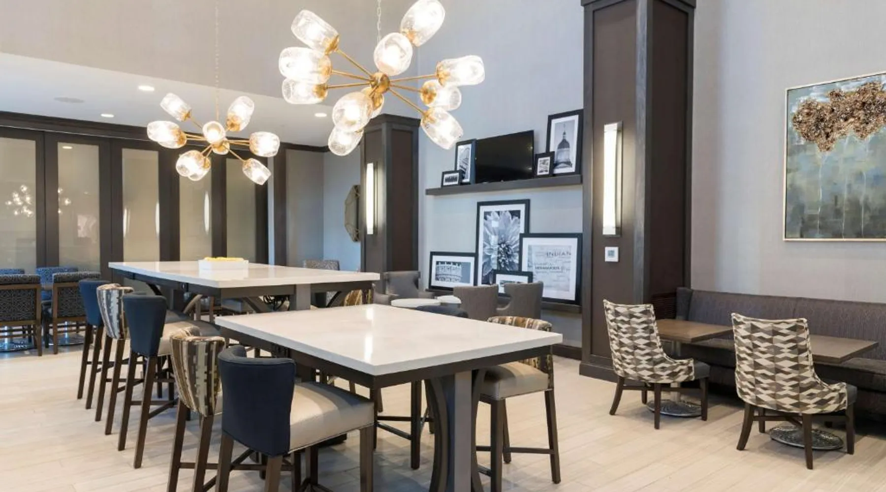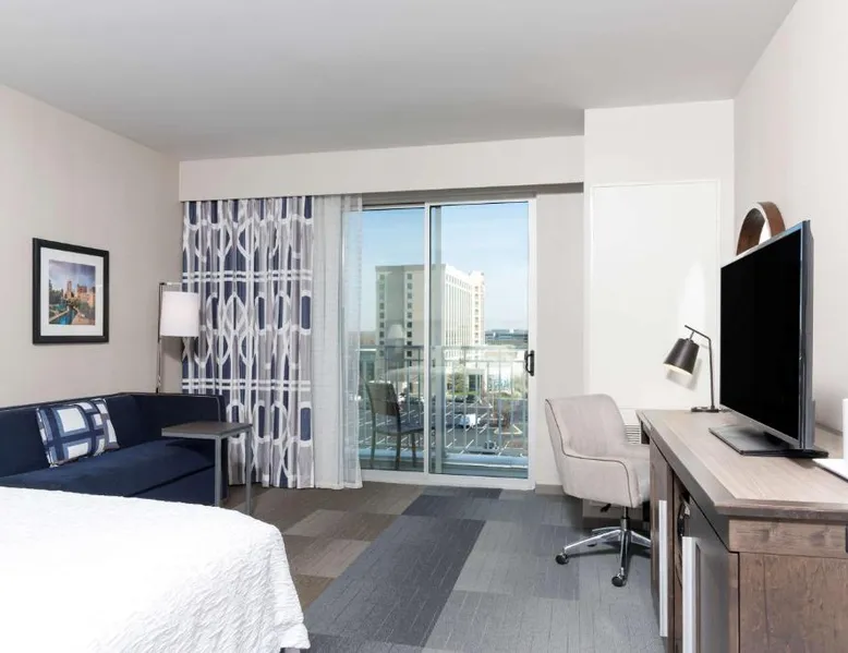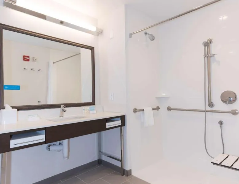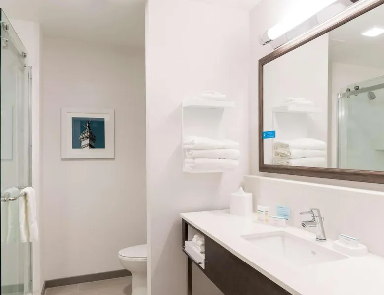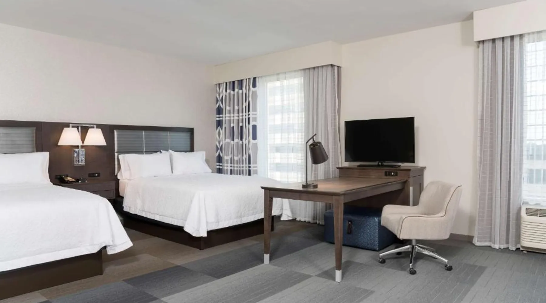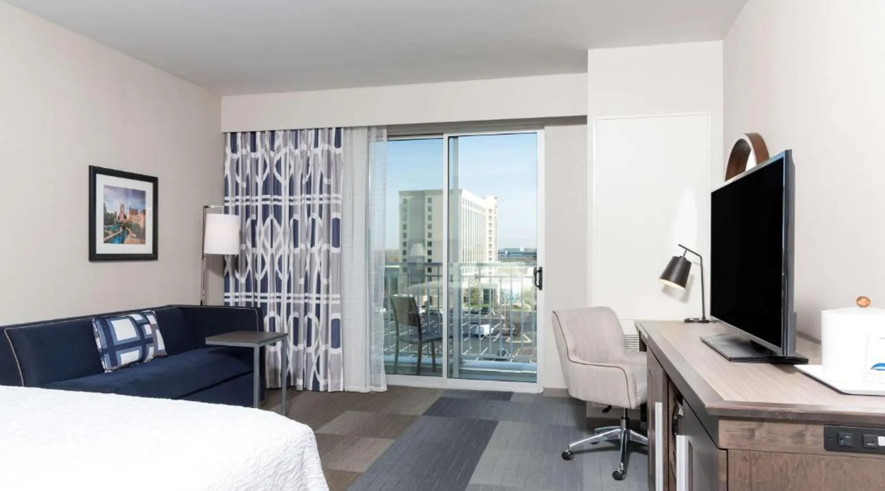 Comfortable Accommodations: Hampton Inn & Suites Indianapolis-Keystone in Indianapolis offers comfortable rooms with balconies, sofa beds, and seating areas. Each room includes a tea and coffee maker, hairdryer, refrigerator, microwave, and TV. Exceptional Facilities: Guests enjoy an indoor swimming pool, free WiFi, and an outdoor fireplace. Additional amenities include a fitness room, elevator, 24-hour front desk, minimarket, electric vehicle charging station, outdoor seating area, and express check-in and check-out services. Delicious Breakfast: A complimentary American buffet breakfast is served daily, featuring juice, fresh pastries, and fruits. Prime Location: Located 6.2 mi from Holliday Park and near attractions such as Cw Mundy Fine Art (1.8 mi) and Amc Theaters (3 mi). Free on-site private parking is available. Highly rated for its swimming pool, nearby shops, and attentive staff. This room offers hearing-accessible amenities, including a visual alarm system and notification devices for the doorbell, door knock and incoming telephone calls.